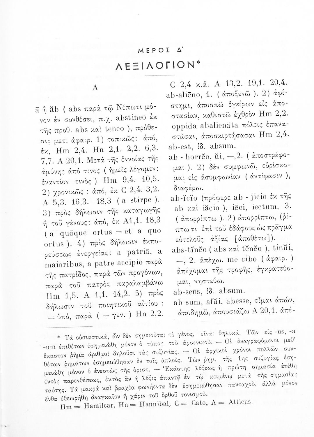 Σχολικό εγχειρίδιο Λατινικών που περιέχει σύντομο βιογραφικό σημείωμα του Νέπωτα, αποσπάσματα από τα έργα Αμίλκας, Αννίβας, Κάτων και Αττικός, ιστορικό και γεωγραφικό πίνακα και λεξιλόγιο. Ο συγγραφέας ήταν καθηγητής της Λατινικής Φιλολογίας στο Πανεπιστήμιο Αθηνών.