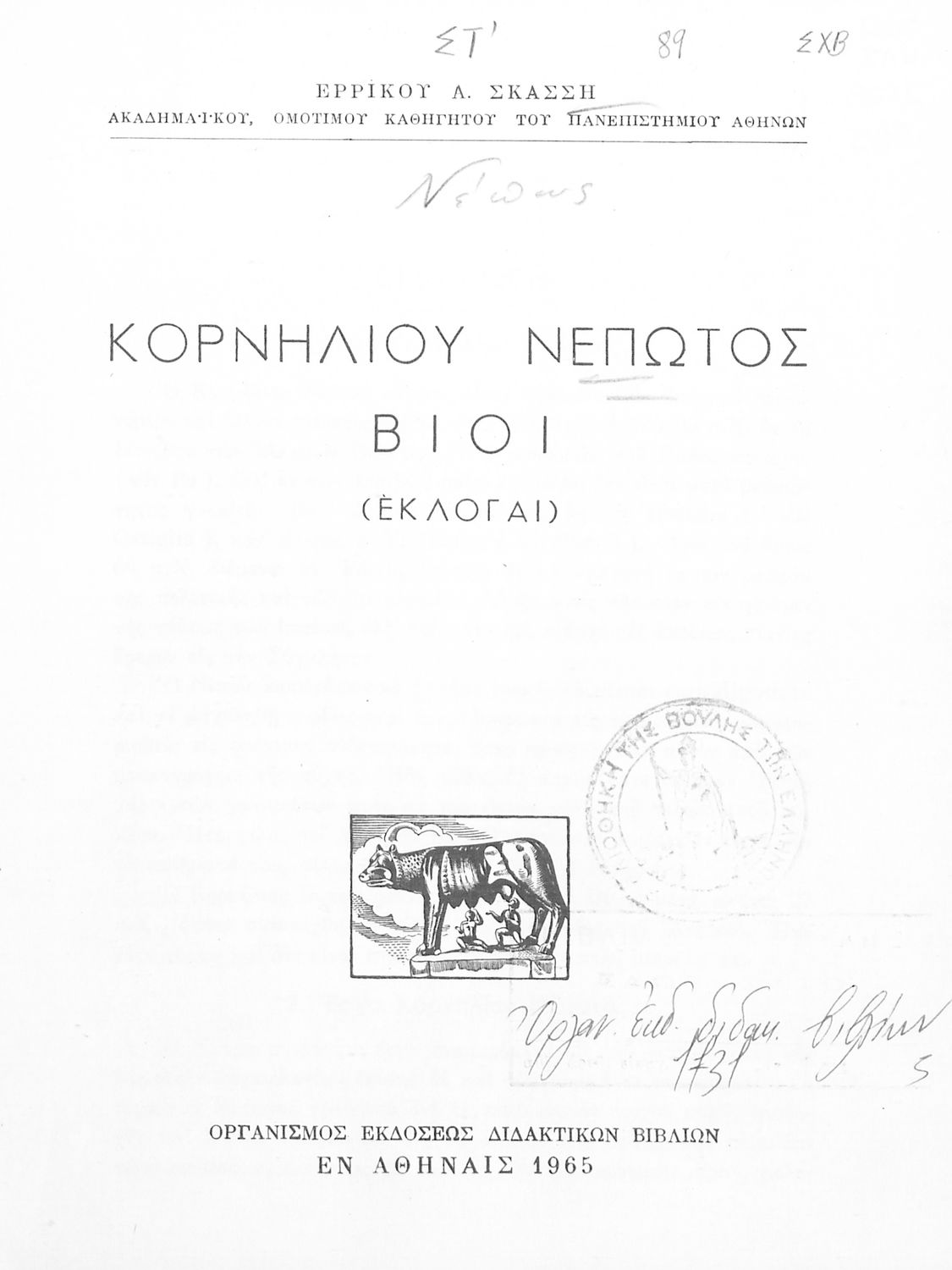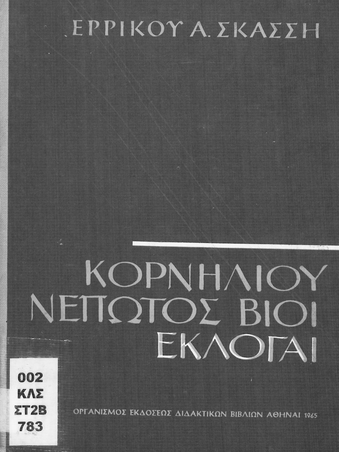 LDR 01243 2200205 4500 035 ## _a03-20556884 040 ## _aΒιβλιοθήκη της Βουλής των Ελλήνων 041 ## _ael 100 ## _aΚορνήλιος Νέπως (Cornelius Nepos) _aΕρρίκος Α. Σκάσσης (σχόλια) 110 ## _a20556884 245 0# _aΚορνηλίου Νέπωτος Βίοι εκλογαί 250 ## _a14η Έκδοση 260 ## _aΑθήνα _bΟργανισμός Εκδόσεως Διδακτικών Βιβλίων _c1965 300 ## _a136 520 ## _aΣχολικό εγχειρίδιο Λατινικών που περιέχει σύντομο βιογραφικό σημείωμα του Νέπωτα, αποσπάσματα από τα έργα Αμίλκας, Αννίβας, Κάτων και Αττικός, ιστορικό και γεωγραφικό πίνακα και λεξιλόγιο. Ο συγγραφέας ήταν καθηγητής της Λατινικής Φιλολογίας στο Πανεπιστήμιο Αθηνών. 522 ## _aΕλλάδα 546 ## _aΚαθαρεύουσα 563 ## _aΜαλακό Εξώφυλλο 583 ## _a1282/3-5-1965 _c1965 650 #4 _aAtticus _aCato _aHamilcar _aHannibal