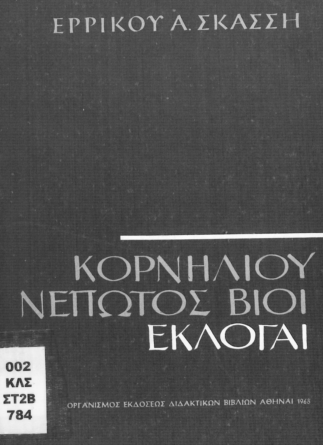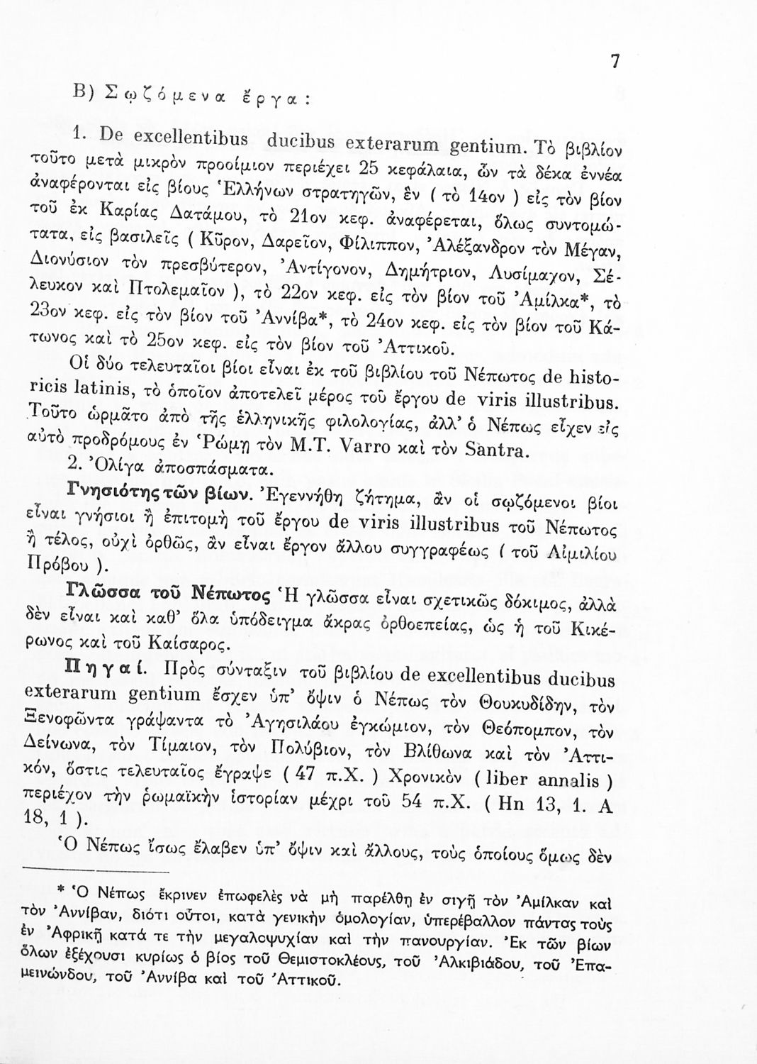 Σχολικό εγχειρίδιο Λατινικών που περιέχει σύντομο βιογραφικό σημείωμα του Νέπωτα, αποσπάσματα από τα έργα Αμίλκας, Αννίβας, Κάτων και Αττικός, ιστορικό και γεωγραφικό πίνακα και λεξιλόγιο. Ο συγγραφέας ήταν καθηγητής της Λατινικής Φιλολογίας στο Πανεπιστήμιο Αθηνών. Φέρει το σύμβολο της δικτατορίας.