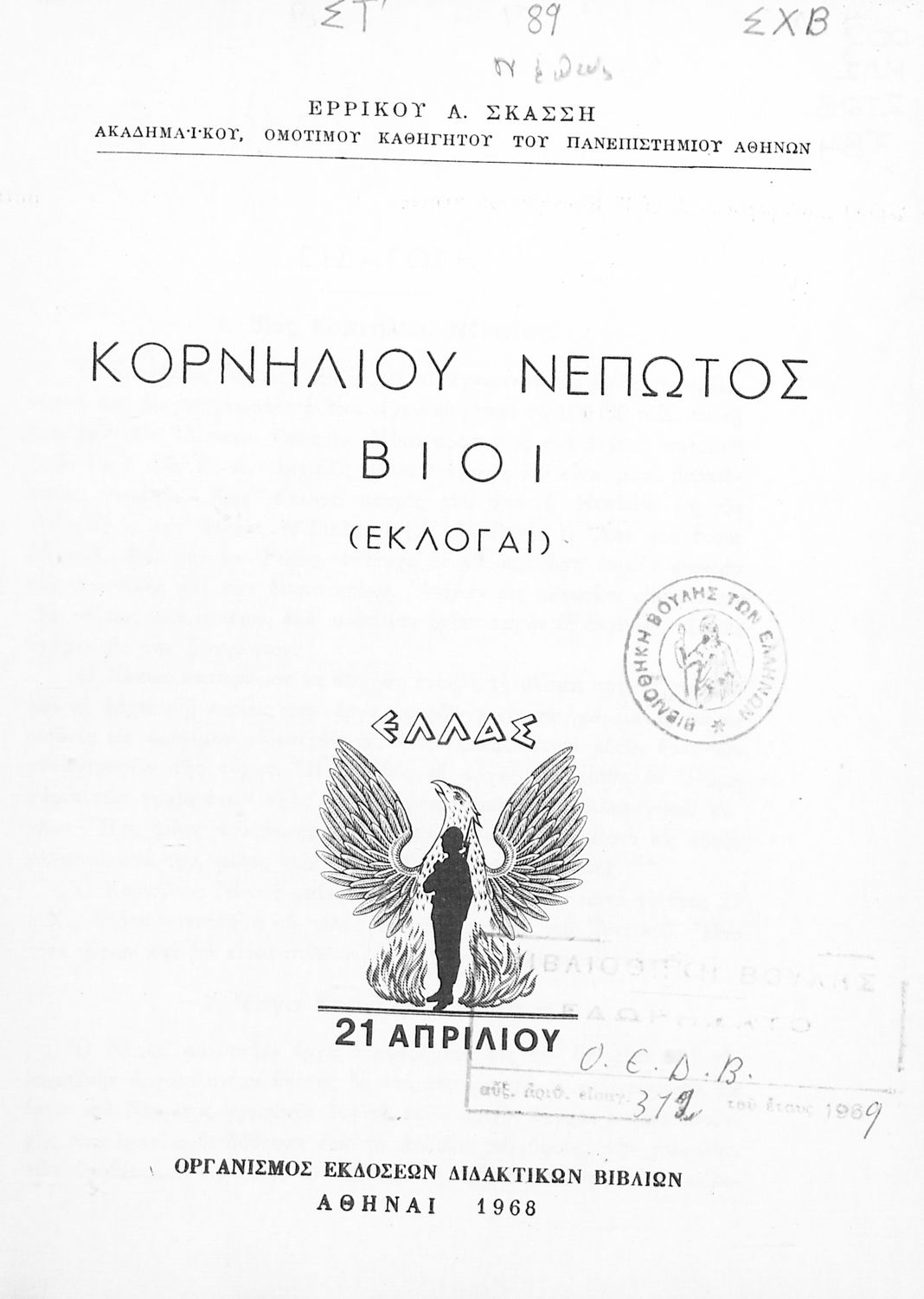 LDR 01321 2200205 4500 035 ## _a03-20556885 040 ## _aΒιβλιοθήκη της Βουλής των Ελλήνων 041 ## _ael 100 ## _aΚορνήλιος Νέπως (Cornelius Nepos) _aΕρρίκος Α. Σκάσσης (σχόλια) 110 ## _a20556885 245 0# _aΚορνηλίου Νέπωτος Βίοι εκλογαί 250 ## _a16η Έκδοση 260 ## _aΑθήνα _bΟργανισμός Εκδόσεως Διδακτικών Βιβλίων _c1968 300 ## _a135 520 ## _aΣχολικό εγχειρίδιο Λατινικών που περιέχει σύντομο βιογραφικό σημείωμα του Νέπωτα, αποσπάσματα από τα έργα Αμίλκας, Αννίβας, Κάτων και Αττικός, ιστορικό και γεωγραφικό πίνακα και λεξιλόγιο. Ο συγγραφέας ήταν καθηγητής της Λατινικής Φιλολογίας στο Πανεπιστήμιο Αθηνών. Φέρει το σύμβολο της δικτατορίας. 522 ## _aΕλλάδα 546 ## _aΚαθαρεύουσα 563 ## _aΜαλακό Εξώφυλλο 583 ## _a1705/2-8-1968, 1762/13-8-1968 _c1968 650 #4 _aAtticus _aCato _aHamilcar _aHannibal