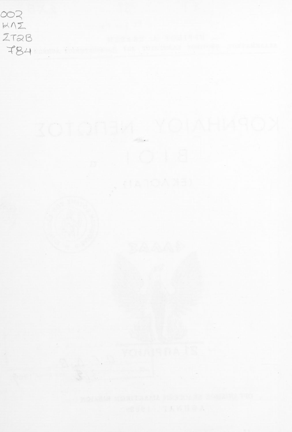 Εντοπισμός πρωτοτύπου: Βιβλιοθήκη της Βουλής των Ελλήνων Κωδικός βιβλιοθήκης: 20556885 |