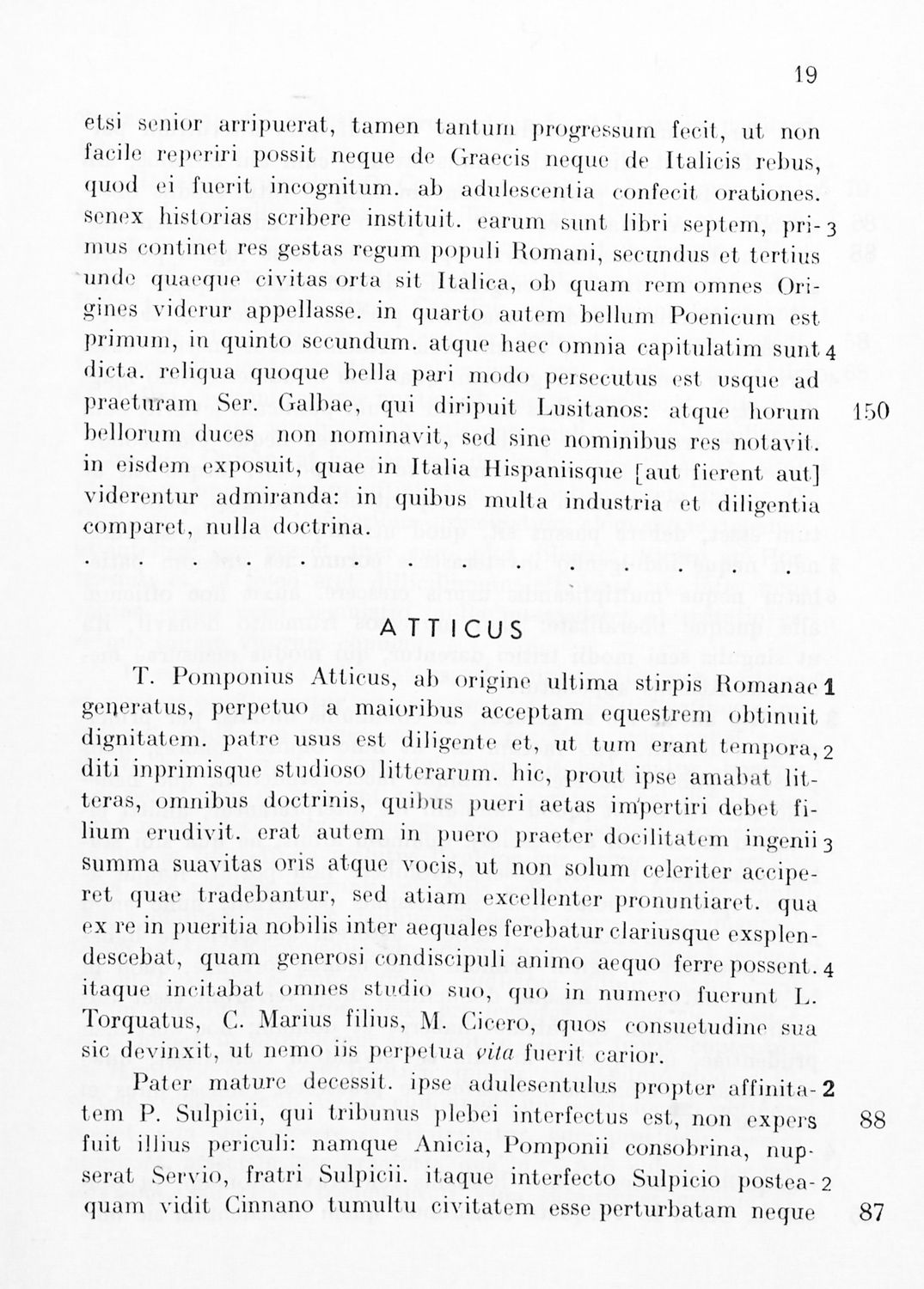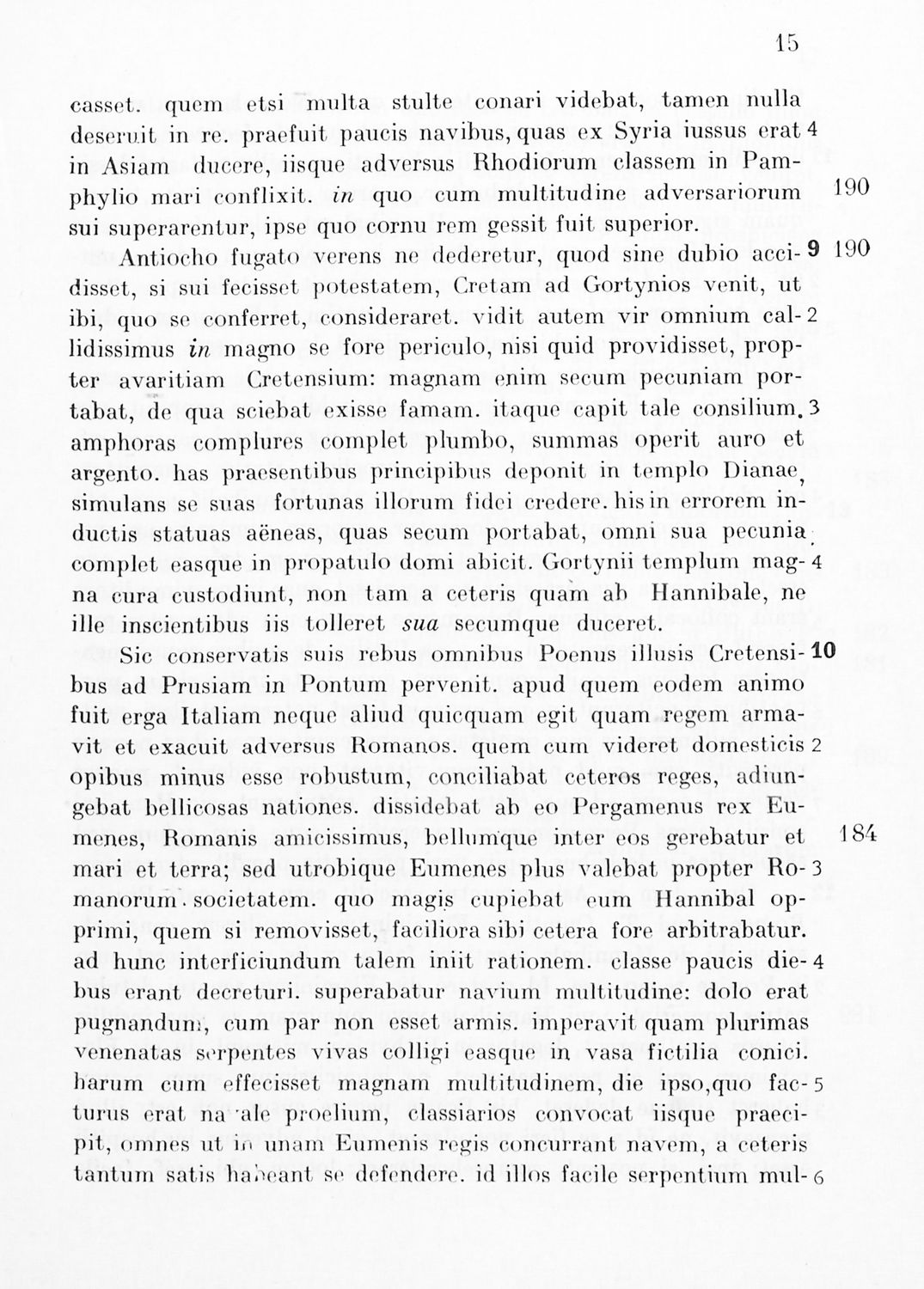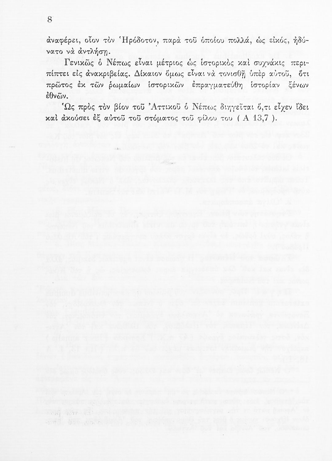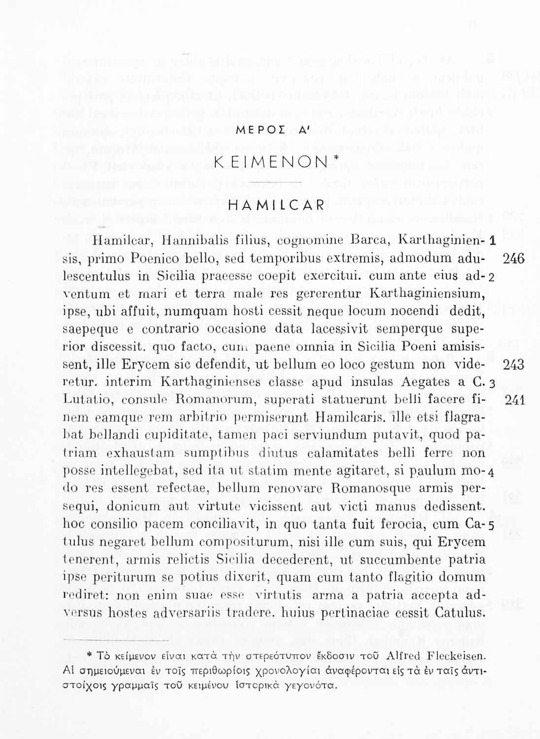 Σχολικό εγχειρίδιο Λατινικών Ε' Γυμνασίου που περιέχει σύντομο βιογραφικό σημείωμα του Νέπωτα, αποσπάσματα από τα έργα Αμίλκας, Αννίβας, Κάτων και Αττικός, ιστορικό και γεωγραφικό πίνακα και λεξιλόγιο. Ο συγγραφέας ήταν καθηγητής της Λατινικής Φιλολογίας στο Πανεπιστήμιο Αθηνών. Φέρει το σύμβολο της δικτατορίας.