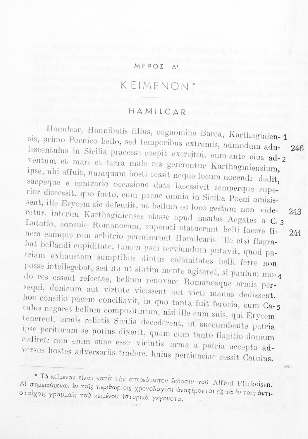 Σχολικό εγχειρίδιο Λατινικών Δ΄ Γυμνασίου παλαιού τύπου και την Ε΄ Γυμνασίου νέου τύπου που περιέχει σύντομο βιογραφικό σημείωμα του Νέπωτος, αποσπάσματα από τα έργα Αμίλκας, Αννίβας, Κάτων και Αττικός, ...