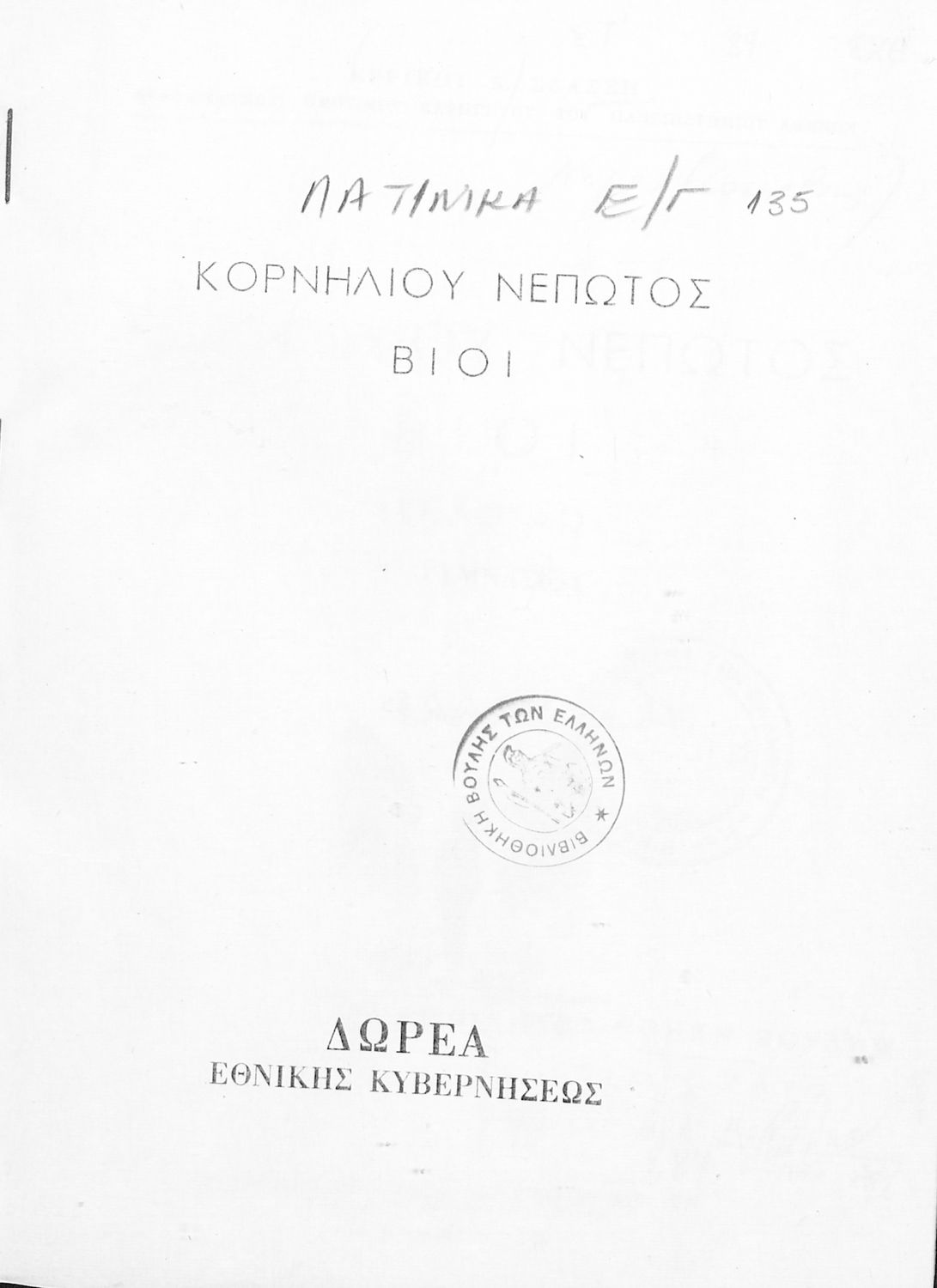 Κορνηλίου Νέπωτος Βίοι εκλογαί Ε' Γυμνασίου