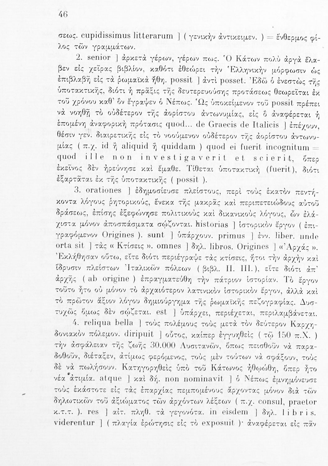 Σχολικό εγχειρίδιο Λατινικών για την Δ΄ Γυμνασίου παλαιού τύπου και την Ε΄ Γυμνασίου νέου τύπου που περιέχει σύντομο βιογραφικό σημείωμα του Νέπωτα, αποσπάσματα από τα έργα Αμίλκας, Αννίβας, Κάτων και Αττικός ...