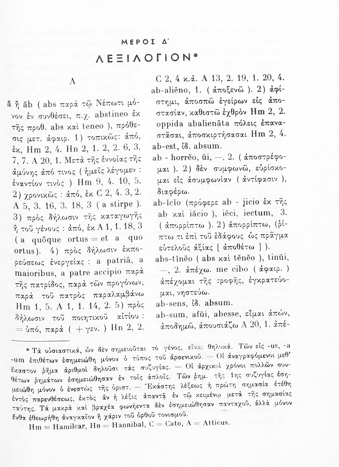 Σχολικό εγχειρίδιο Λατινικών Ε' Γυμνασίου που περιέχει σύντομο βιογραφικό σημείωμα του Νέπωτα, αποσπάσματα από τα έργα Αμίλκας, Αννίβας, Κάτων και Αττικός, ιστορικό και γεωγραφικό πίνακα και λεξιλόγιο. Ο συγγραφέας ήταν καθηγητής της Λατινικής Φιλολογίας στο Πανεπιστήμιο Αθηνών. Φέρει το σύμβολο της δικτατορίας.