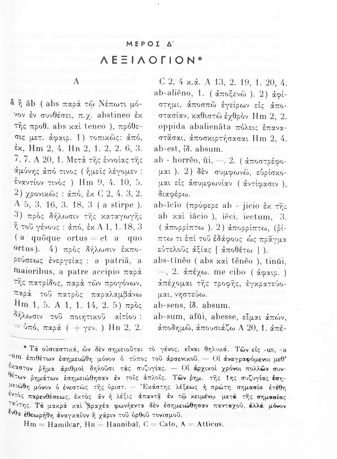 Σχολικό εγχειρίδιο Λατινικών για την Δ΄ Γυμνασίου παλαιού τύπου και την Ε΄ Γυμνασίου νέου τύπου που περιέχει σύντομο βιογραφικό σημείωμα του Νέπωτα, αποσπάσματα από τα έργα Αμίλκας, Αννίβας, Κάτων και Αττικός ...