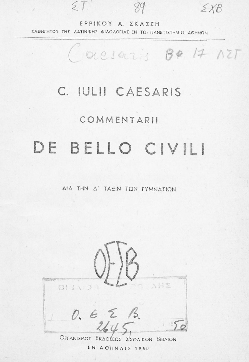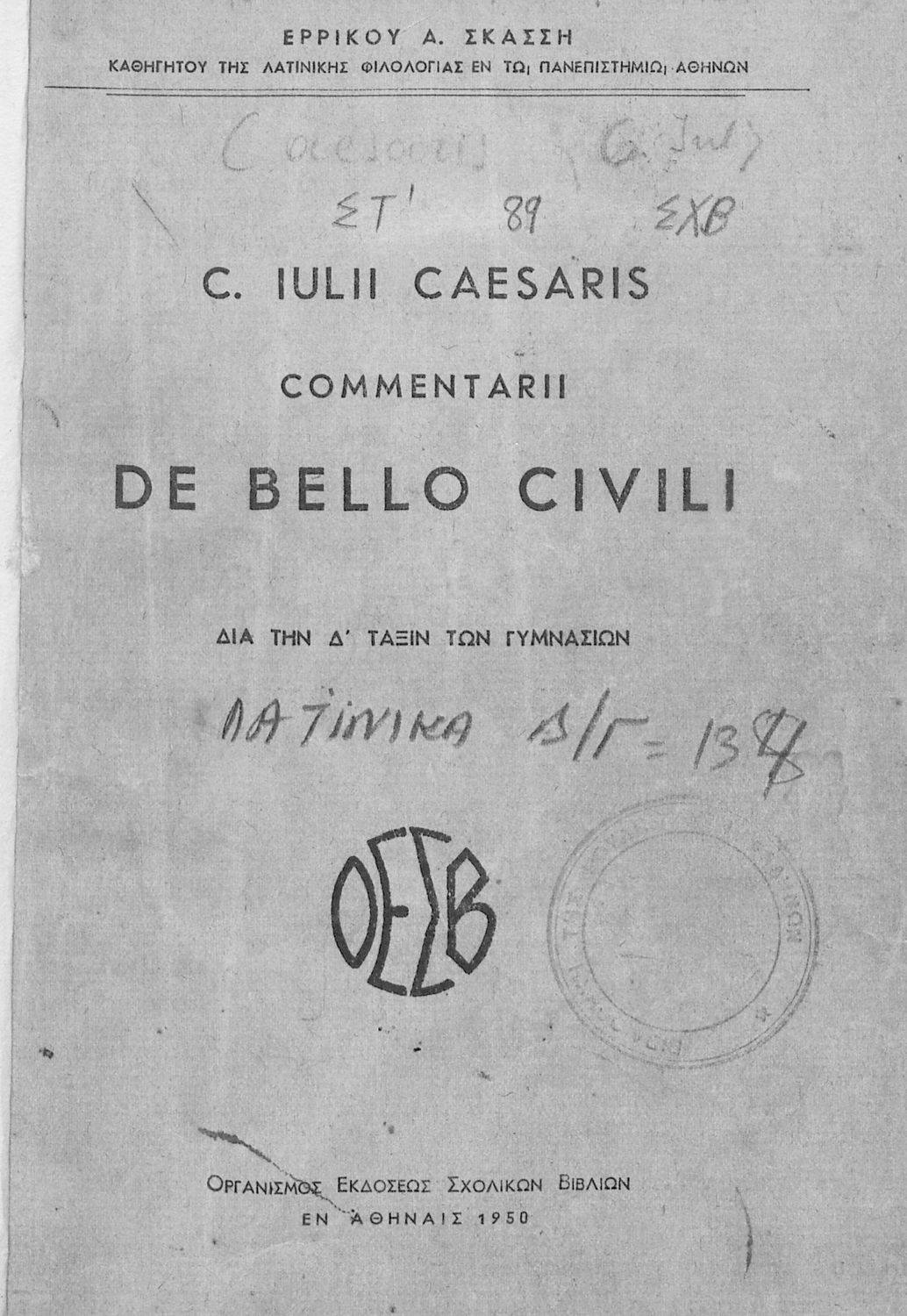 Συγγραφέας: Γ. Ιούλιος Καίσαρας (C. Julius Caesar), Ερρίκος Σκάσσης (εισαγωγή, σχόλια)