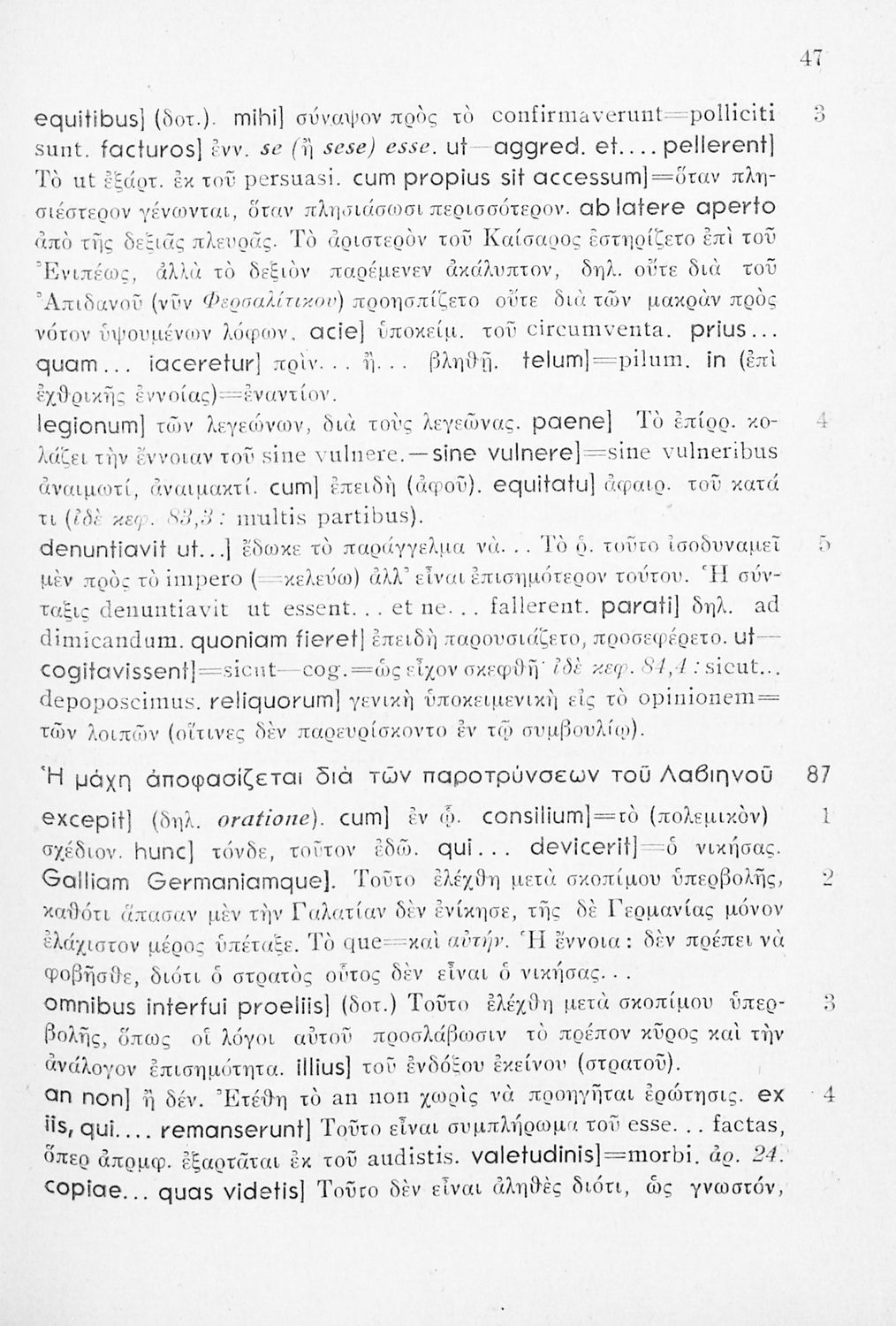 Μαθητικό βοήθημα Λατινικών για την ΣΤ΄ τάξη των Οκταταξίων Γυμνασίων που περιέχει κείμενο, μετάφραση, γραμματικά, σημασιολογικά και συντακτικά σχόλια, νόημα και περίληψη.
