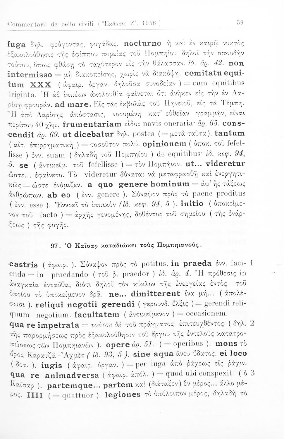 Σχολικό εγχειρίδιο Λατινικών που περιέχει αποσπάσματα από τα απομνημονεύματα του Ιούλιου Καίσαρα, σύντομο βιογραφικό σημείωμα, εισαγωγή στο έργο και πραγματολογικά και γλωσσικά σχόλια. Ο συγγραφέας ήταν καθηγητής της Λατινικής Φιλολογίας στο Πανεπιστήμιο Αθηνών.