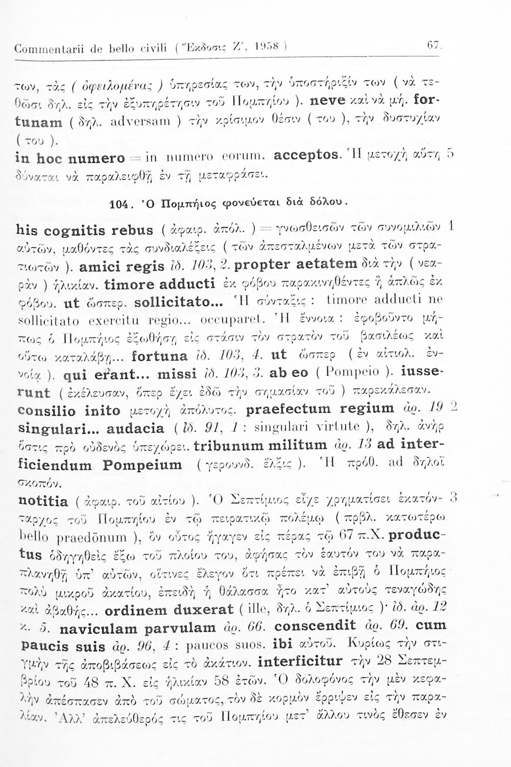 Σχολικό εγχειρίδιο Λατινικών που περιέχει σύντομο βιογραφικό σημείωμα του Ιούλιου Καίσαρα, εισαγωγή στο έργο, κείμενο, ιστορικό και γεωγραφικό πίνακα και λεξιλόγιο. Ο συγγραφέας ήταν καθηγητής της Λατινικής ...
