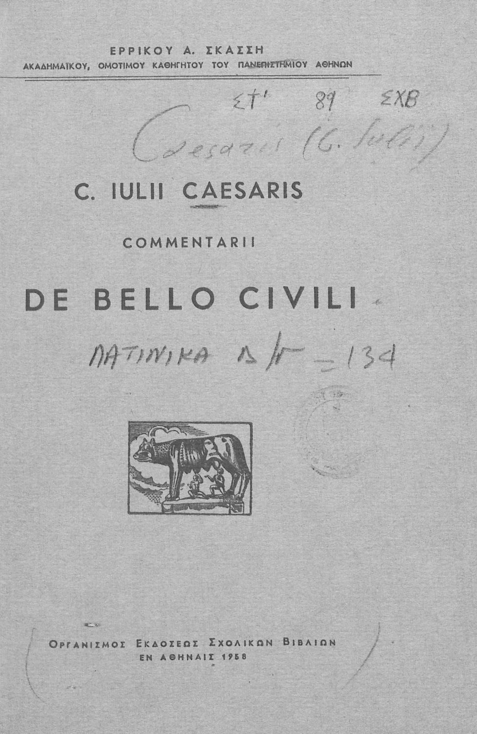 Συγγραφέας: Γ. Ιούλιος Καίσαρας (C. Julius Caesar), Ερρίκος Σκάσσης (εισαγωγή, σχόλια)