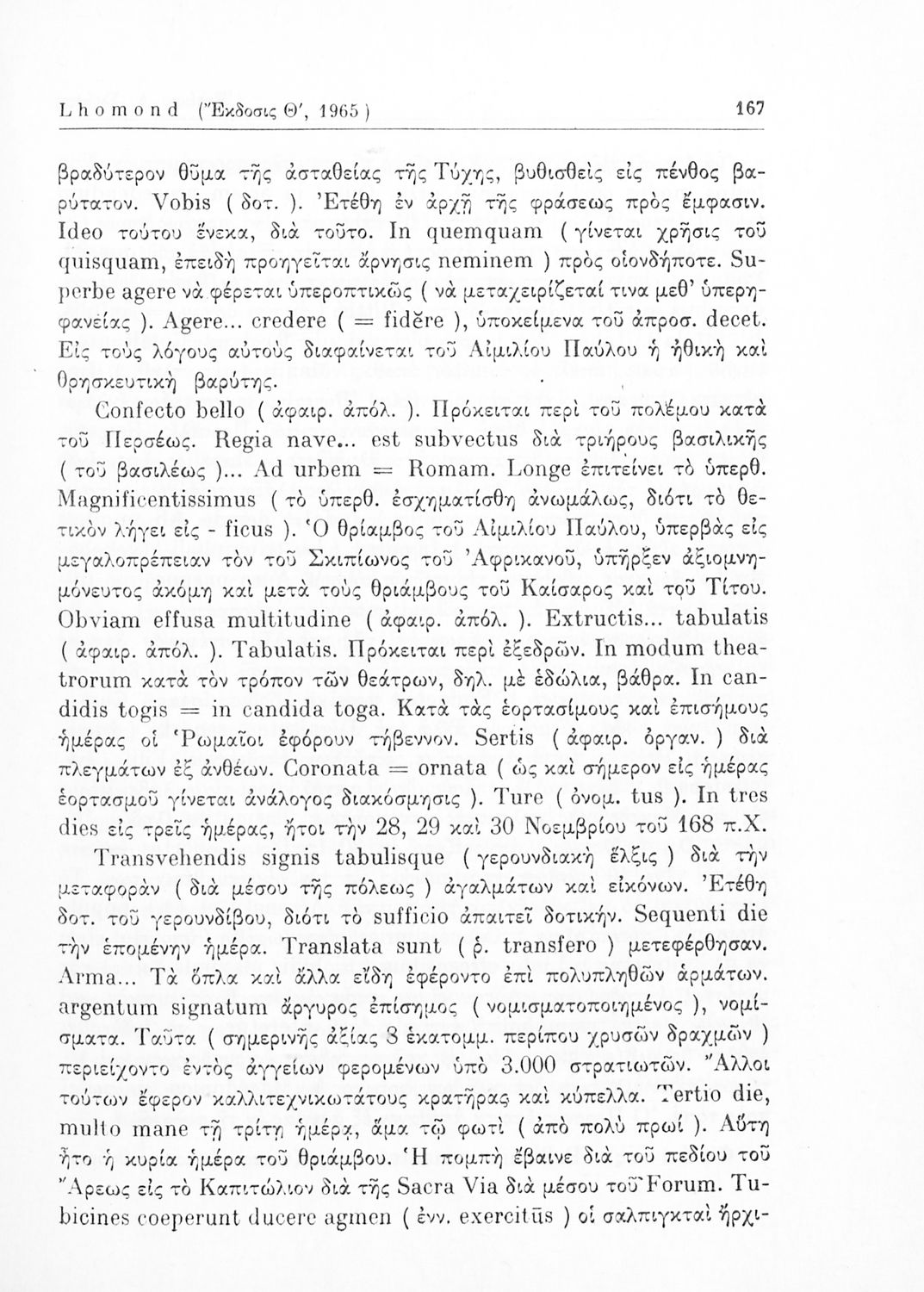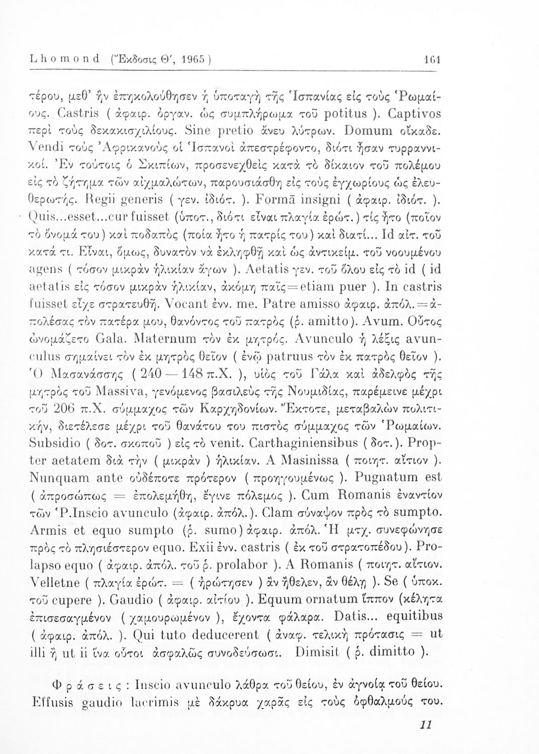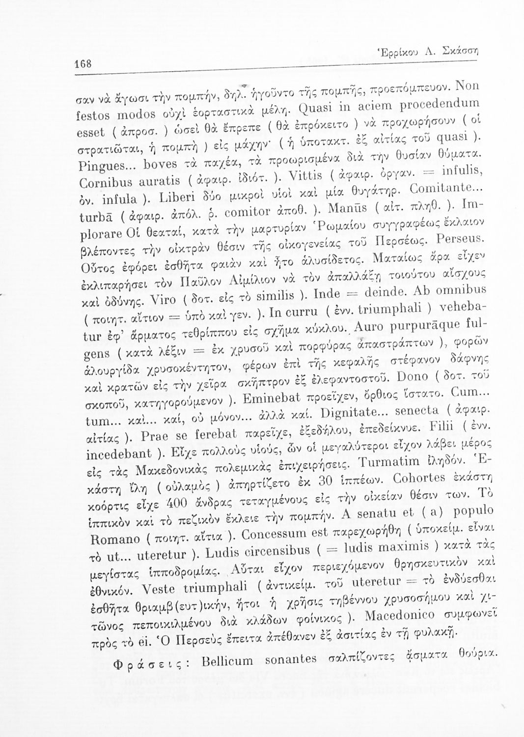 Σχολικό εγχειρίδιο Λατινικών για τη Γ΄ Γυμνασίου που περιέχει 54 κείμενα/περικοπές στα λατινικά, ερμηνευτικά υπομνήματα, λεξιλόγιο και κατάλογο με τα συντακτικά φαινόμενα (αφαιρετική, προθέσεις, σύνδεσμοι) που