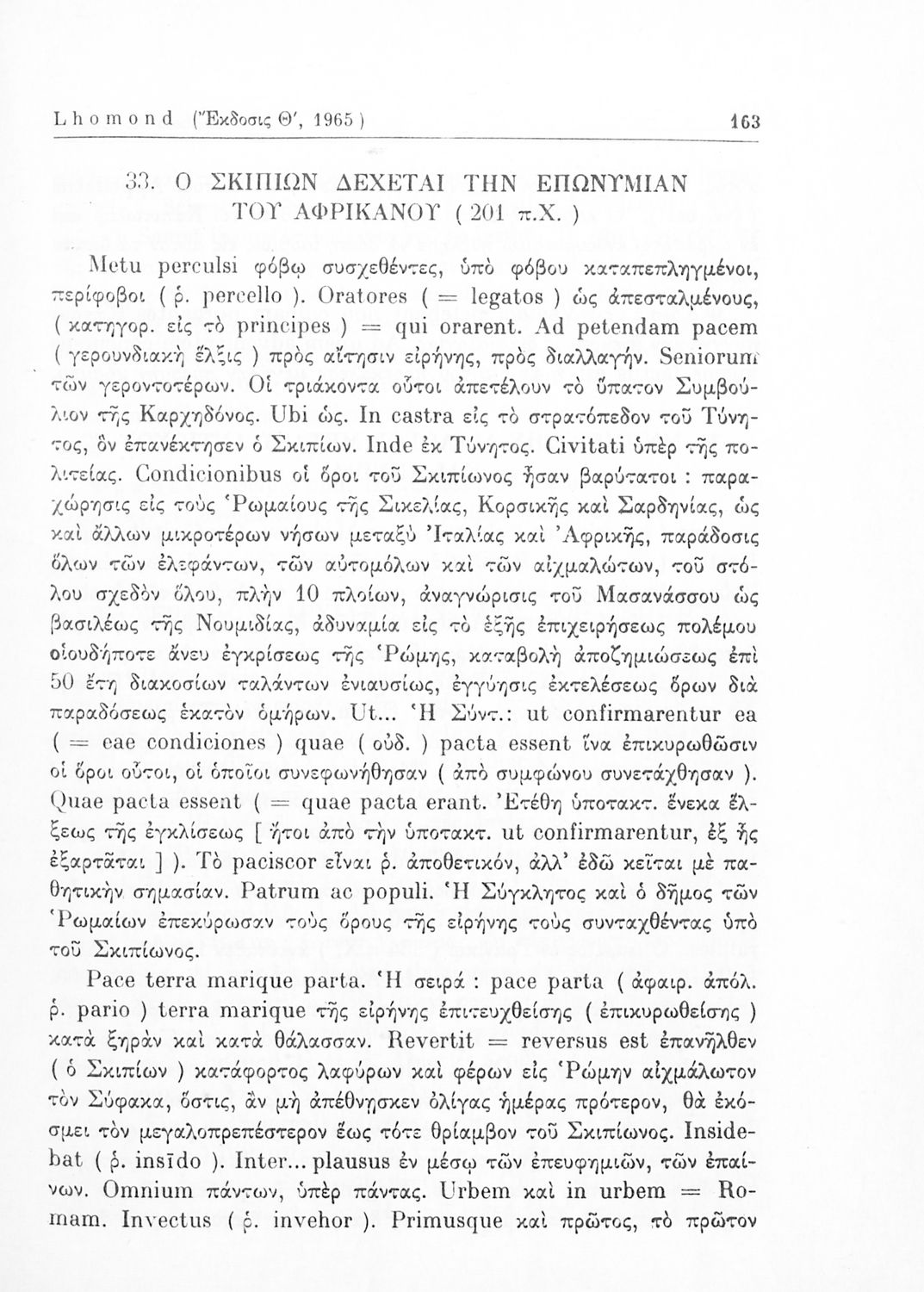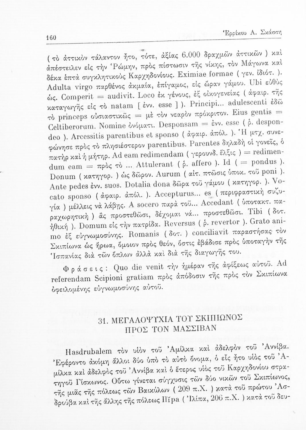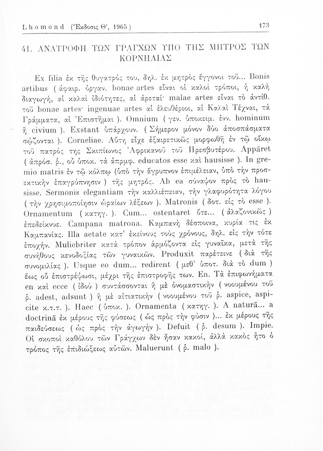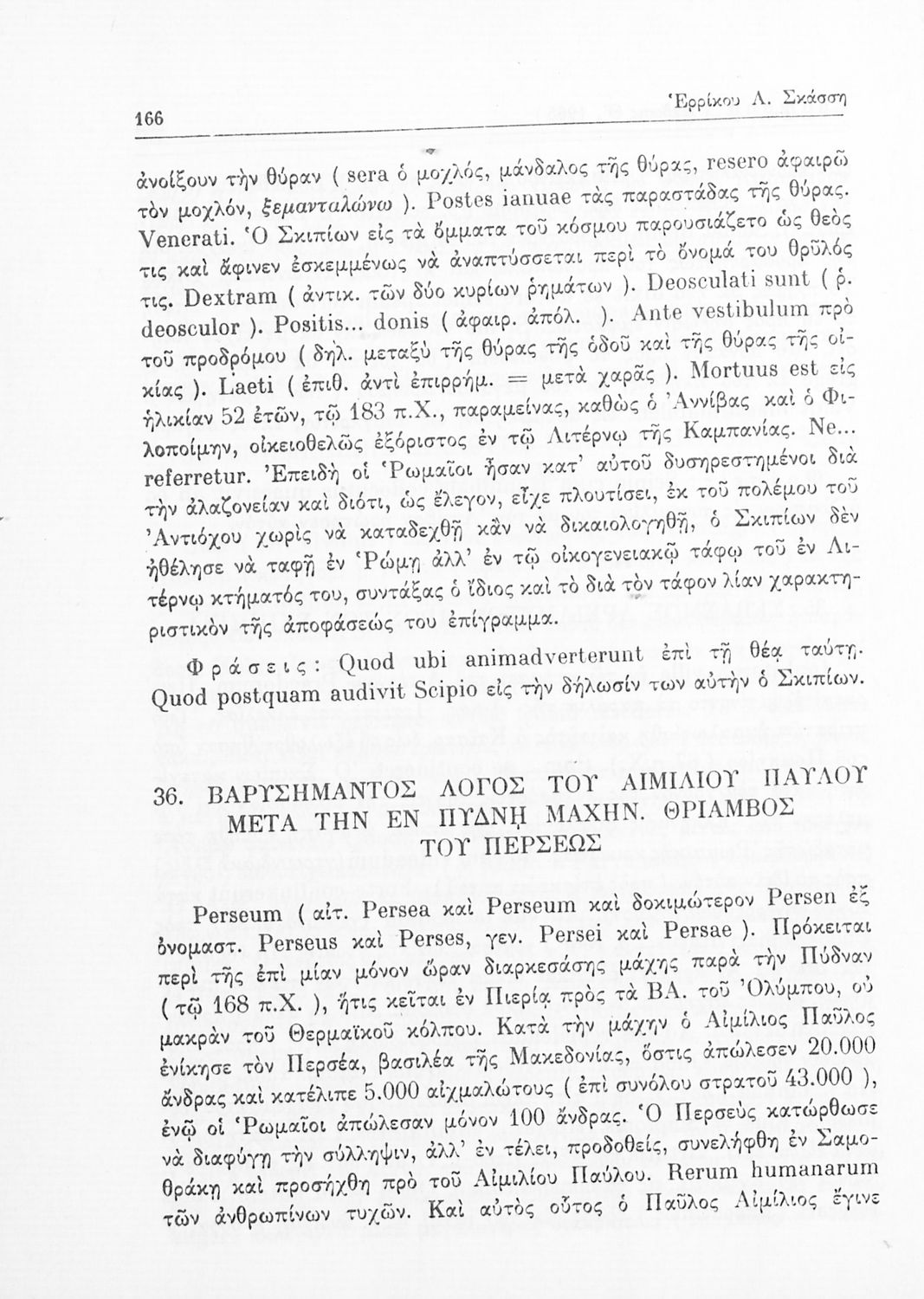 Σχολικό εγχειρίδιο Λατινικών για τη Γ΄ Γυμνασίου που περιέχει 54 κείμενα/περικοπές στα λατινικά, ερμηνευτικά υπομνήματα, λεξιλόγιο και κατάλογο με τα συντακτικά φαινόμενα (αφαιρετική, προθέσεις, σύνδεσμοι) που