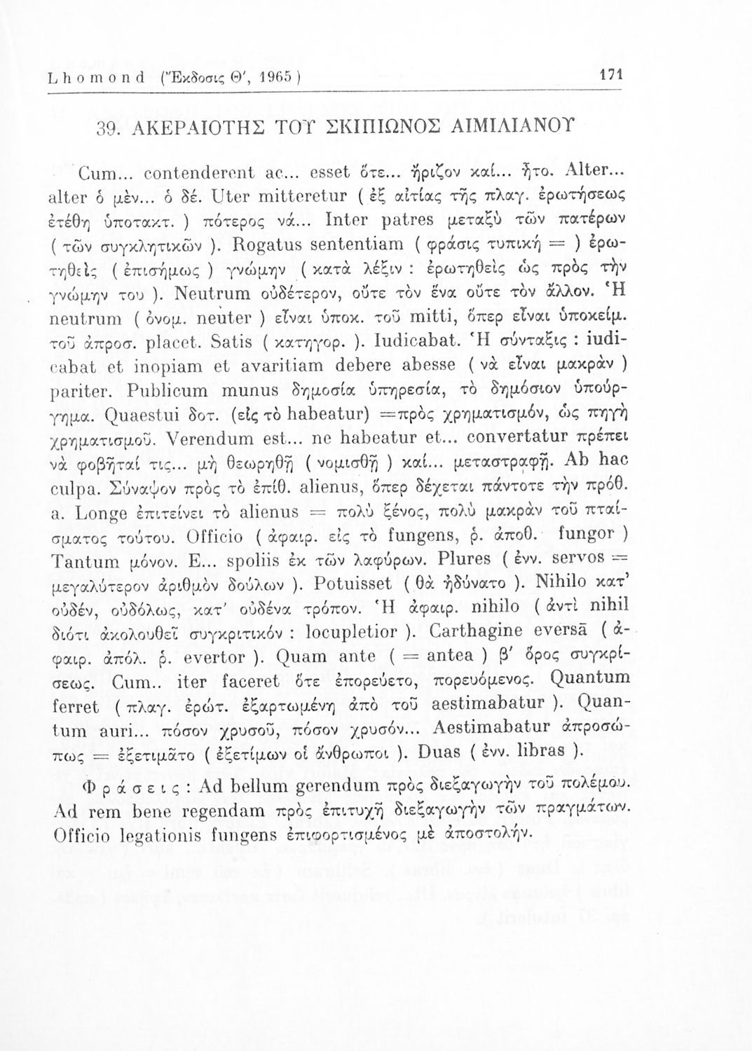 Κυριάκος Κοσμάς, Lhomond, Ερρίκος Σκάσσης (σχόλια)