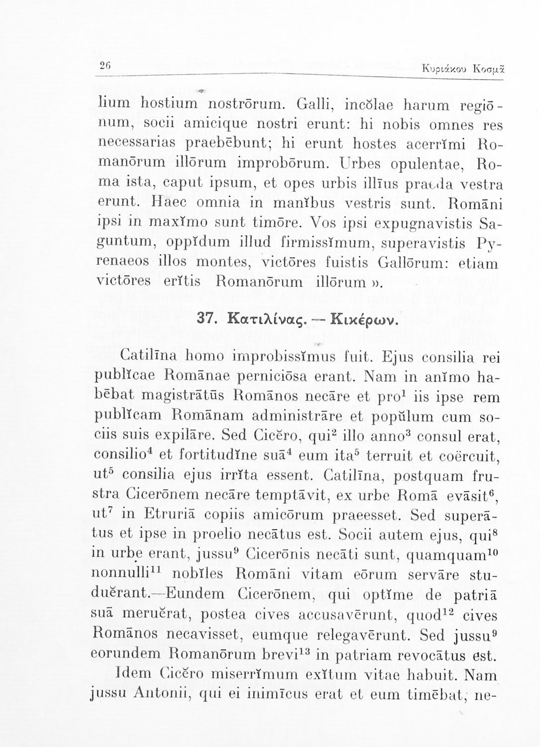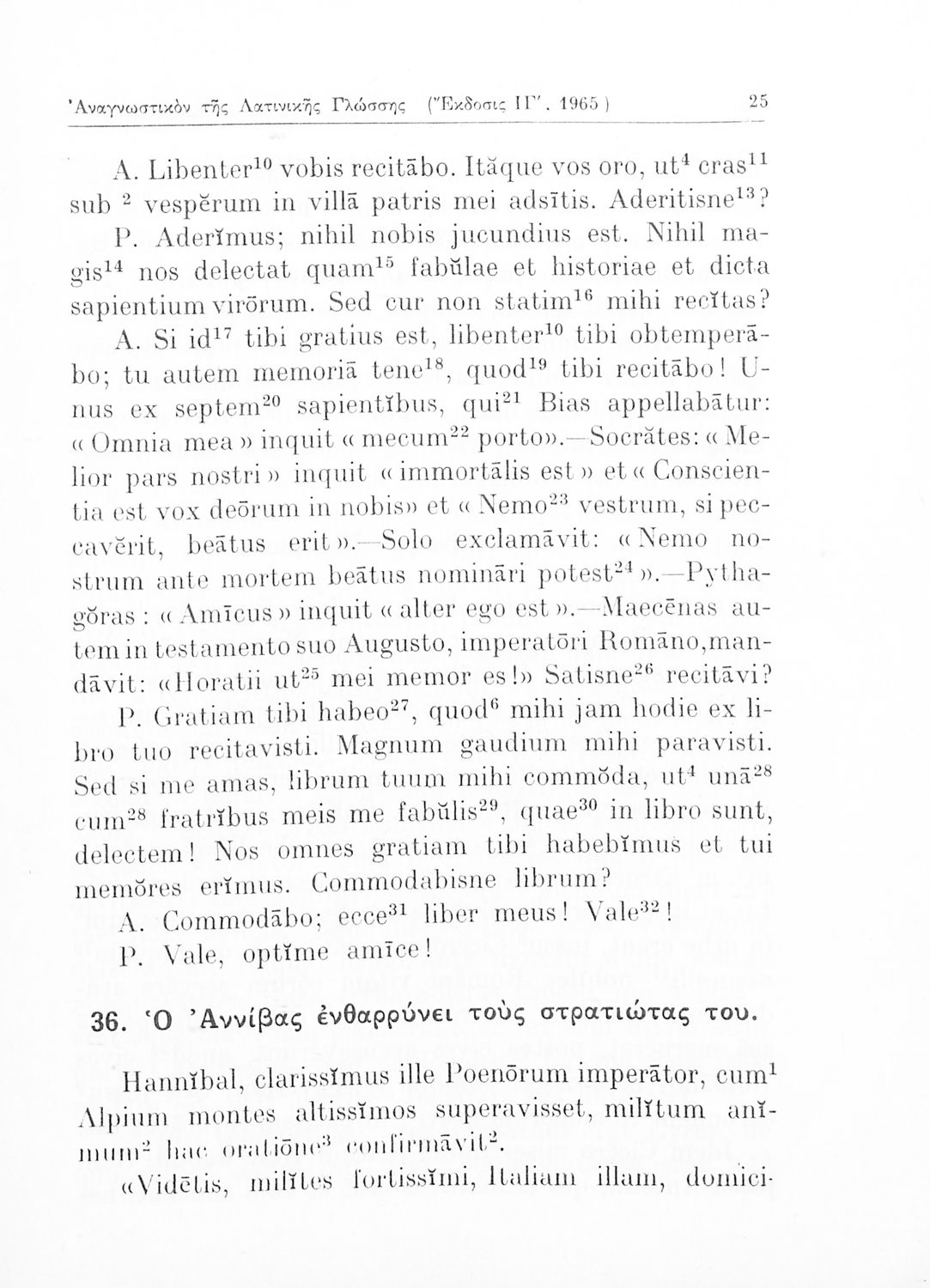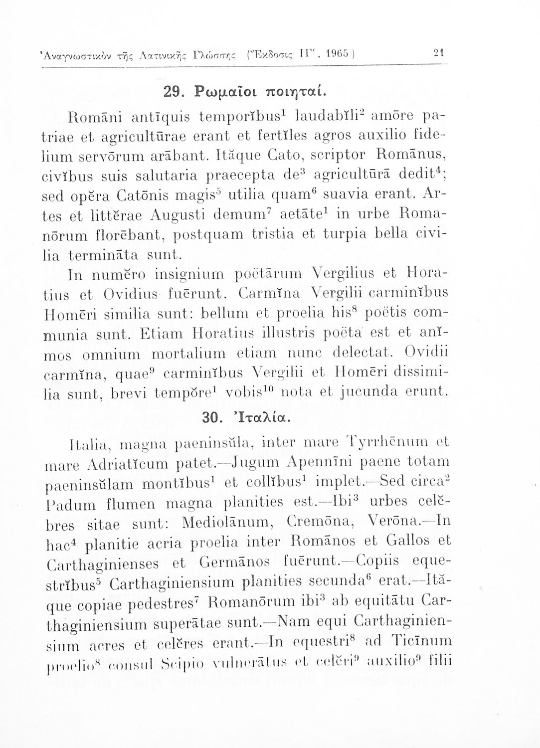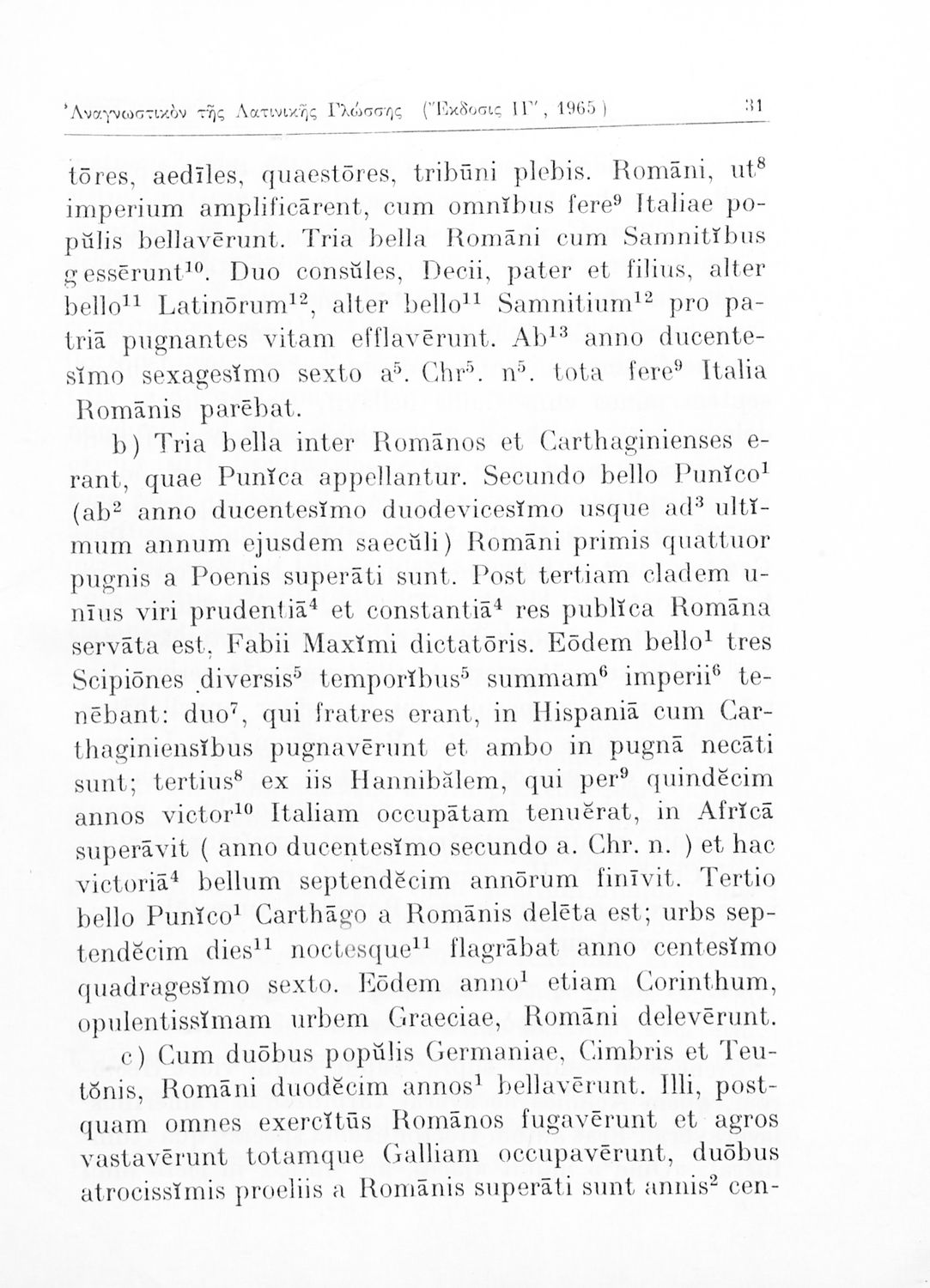 Σχολικό εγχειρίδιο Λατινικών για τη Γ΄ Γυμνασίου που περιέχει 54 κείμενα/περικοπές στα λατινικά, ερμηνευτικά υπομνήματα, λεξιλόγιο και κατάλογο με τα συντακτικά φαινόμενα (αφαιρετική, προθέσεις, σύνδεσμοι) που