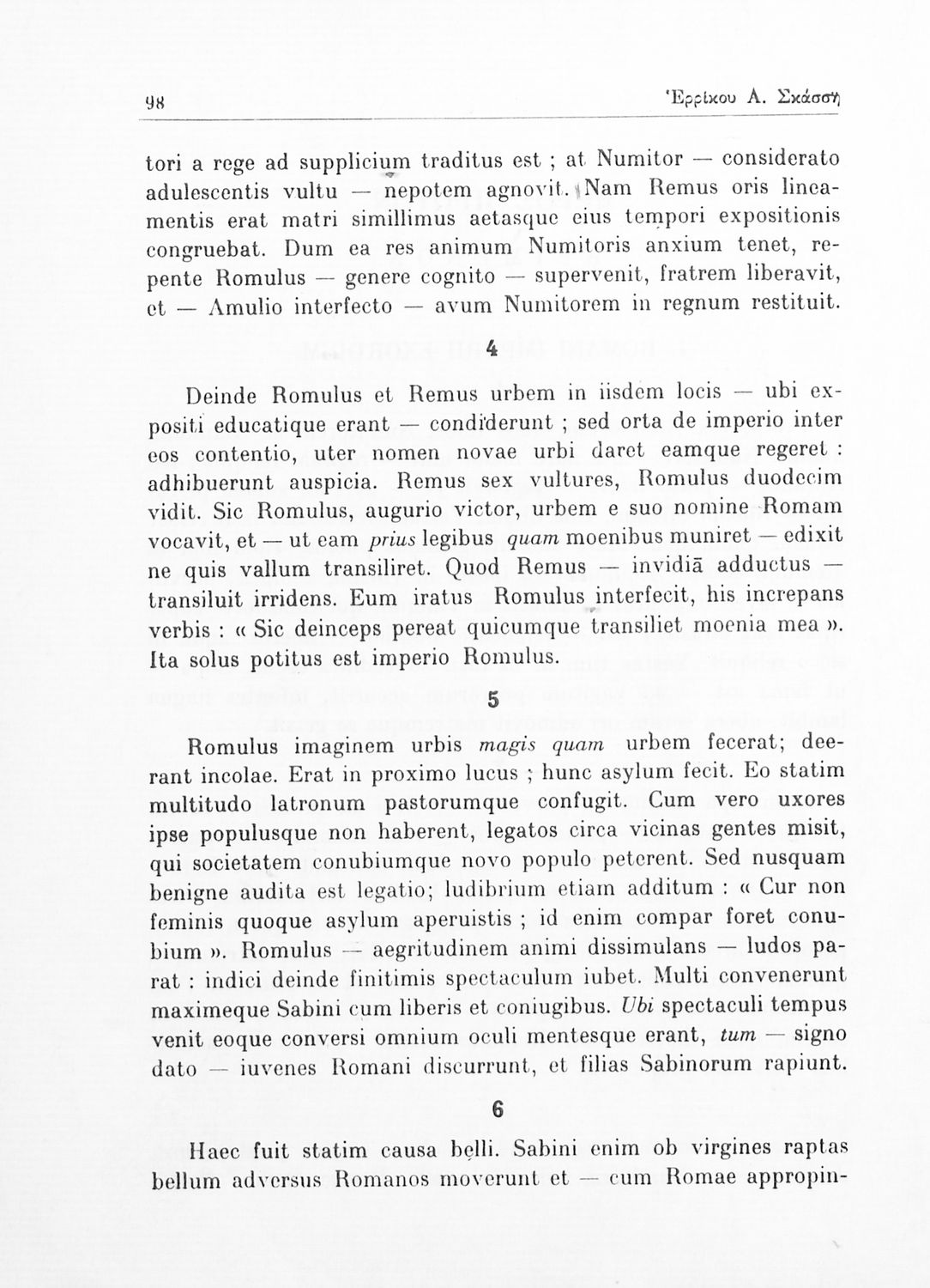 Σχολικό εγχειρίδιο Λατινικών για τη Δ΄ Γυμνασίου που περιέχει 54 κείμενα/περικοπές στα λατινικά, ερμηνευτικά υπομνήματα, λεξιλόγιο και κατάλογο με τα συντακτικά φαινόμενα (αφαιρετική, προθέσεις, σύνδεσμοι) που