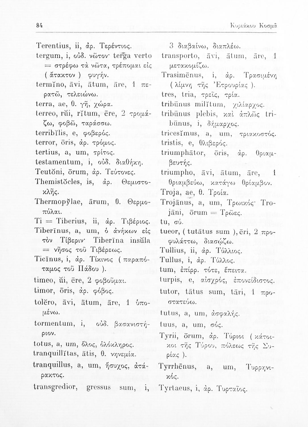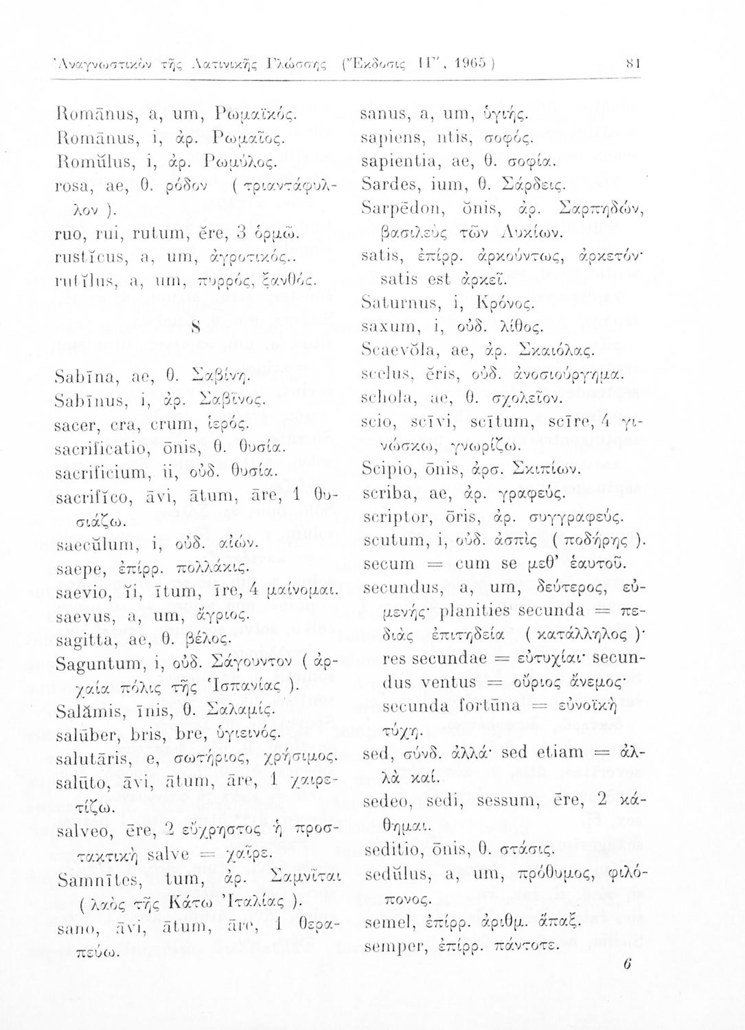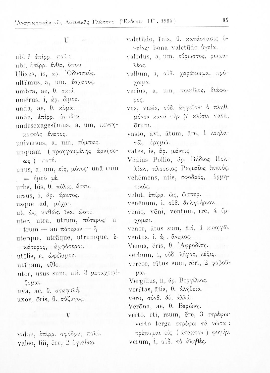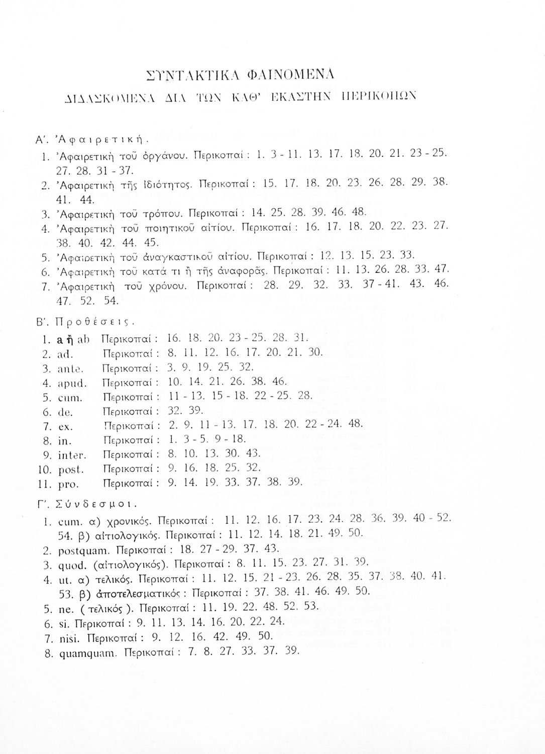 Σχολικό εγχειρίδιο Λατινικών για τη Γ΄ Γυμνασίου που περιέχει 54 κείμενα/περικοπές στα λατινικά, ερμηνευτικά υπομνήματα, λεξιλόγιο και κατάλογο με τα συντακτικά φαινόμενα (αφαιρετική, προθέσεις, σύνδεσμοι) που