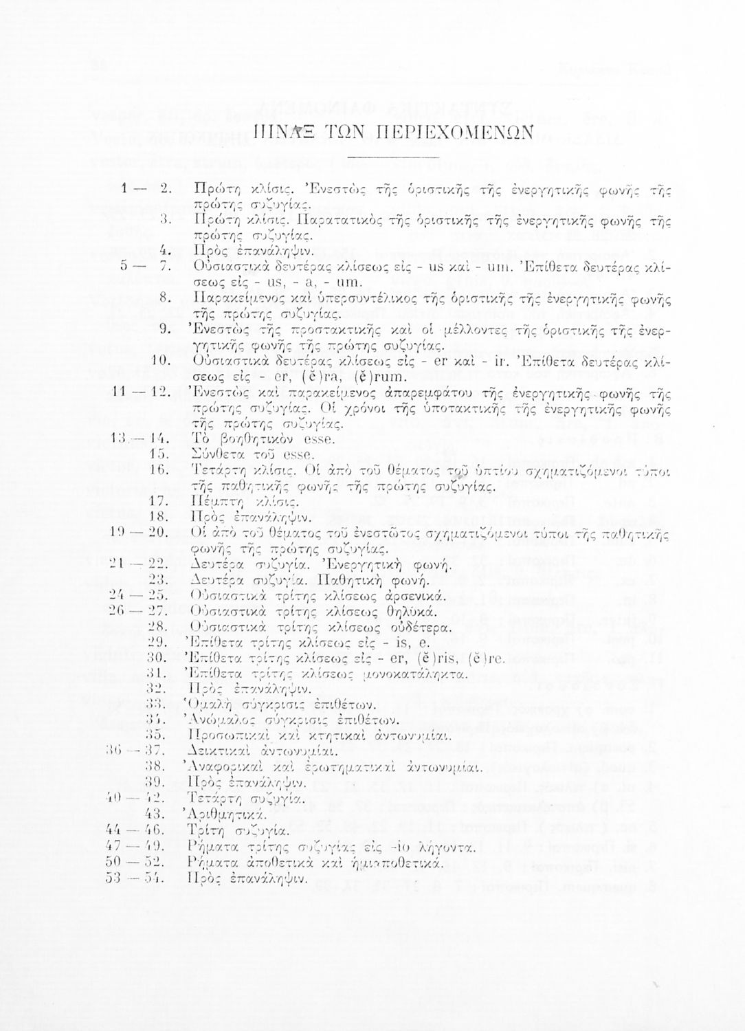 Σχολικό εγχειρίδιο Λατινικών Δ΄ Γυμνασίου που περιέχει 54 κείμενα/περικοπές για τη διδασκαλία της γραμματικής, ερμηνευτικά υπομνήματα, λεξιλόγιο και κατάλογο με τα συντακτικά φαινόμενα (αφαιρετική, προθέσεις, ...