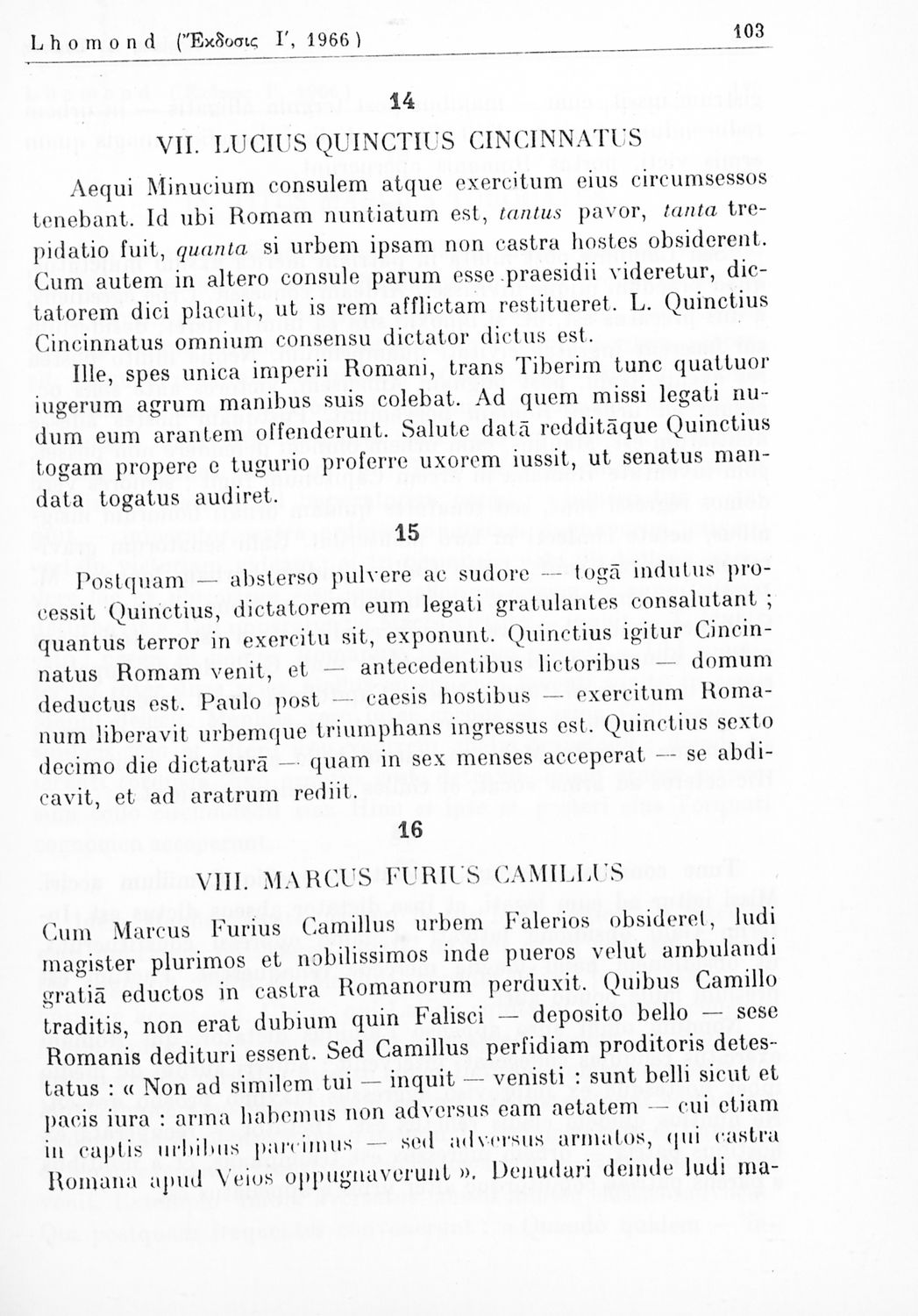 Σχολικό εγχειρίδιο Λατινικών που περιέχει 64 αποσπάσματα από το βιβλίο του Lhomond και παρουσιάζει βίους επιφανών Ρωμαίων από το 753 π.Χ μέχρι το 14 μ.Χ.