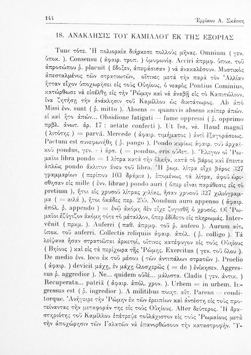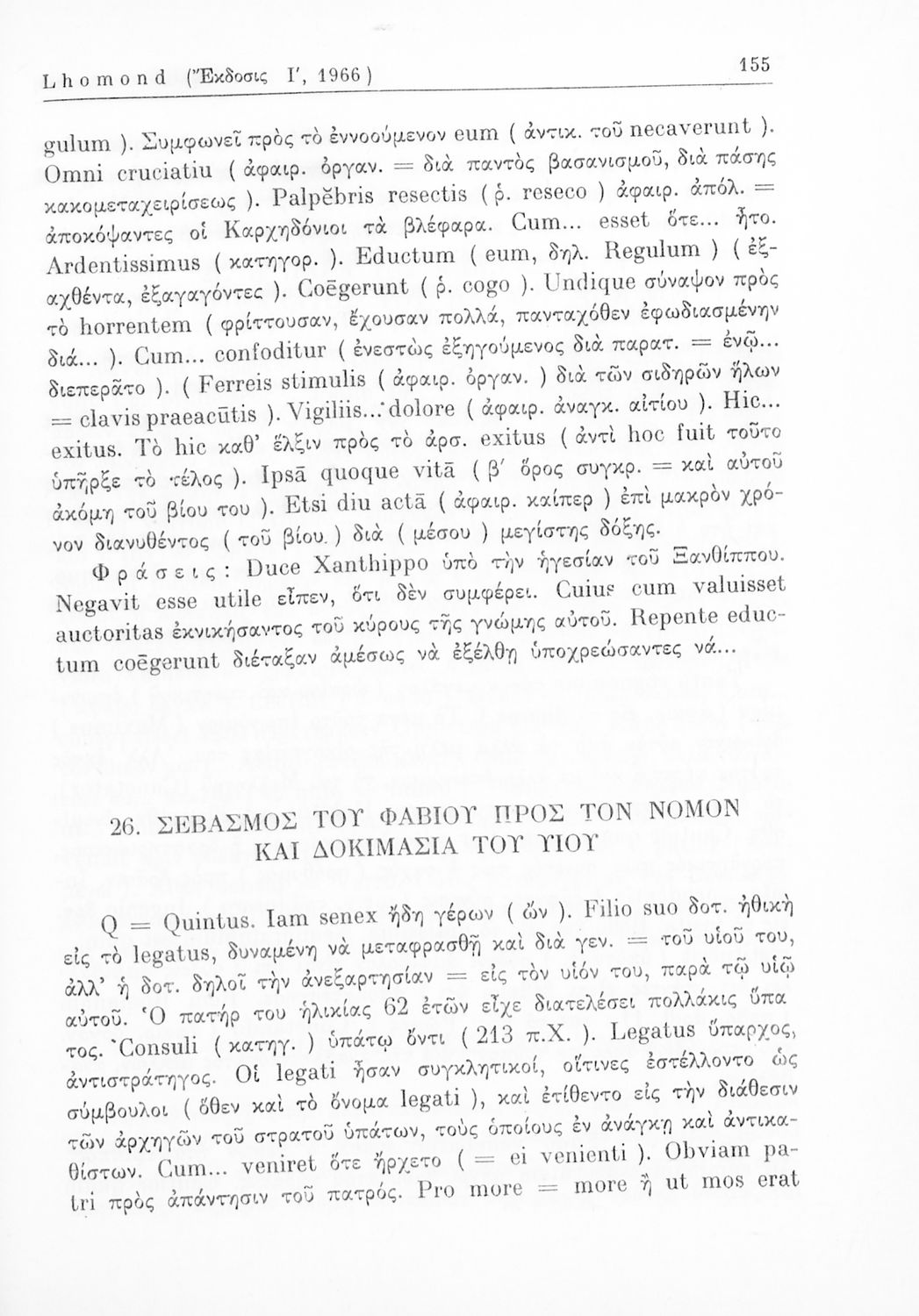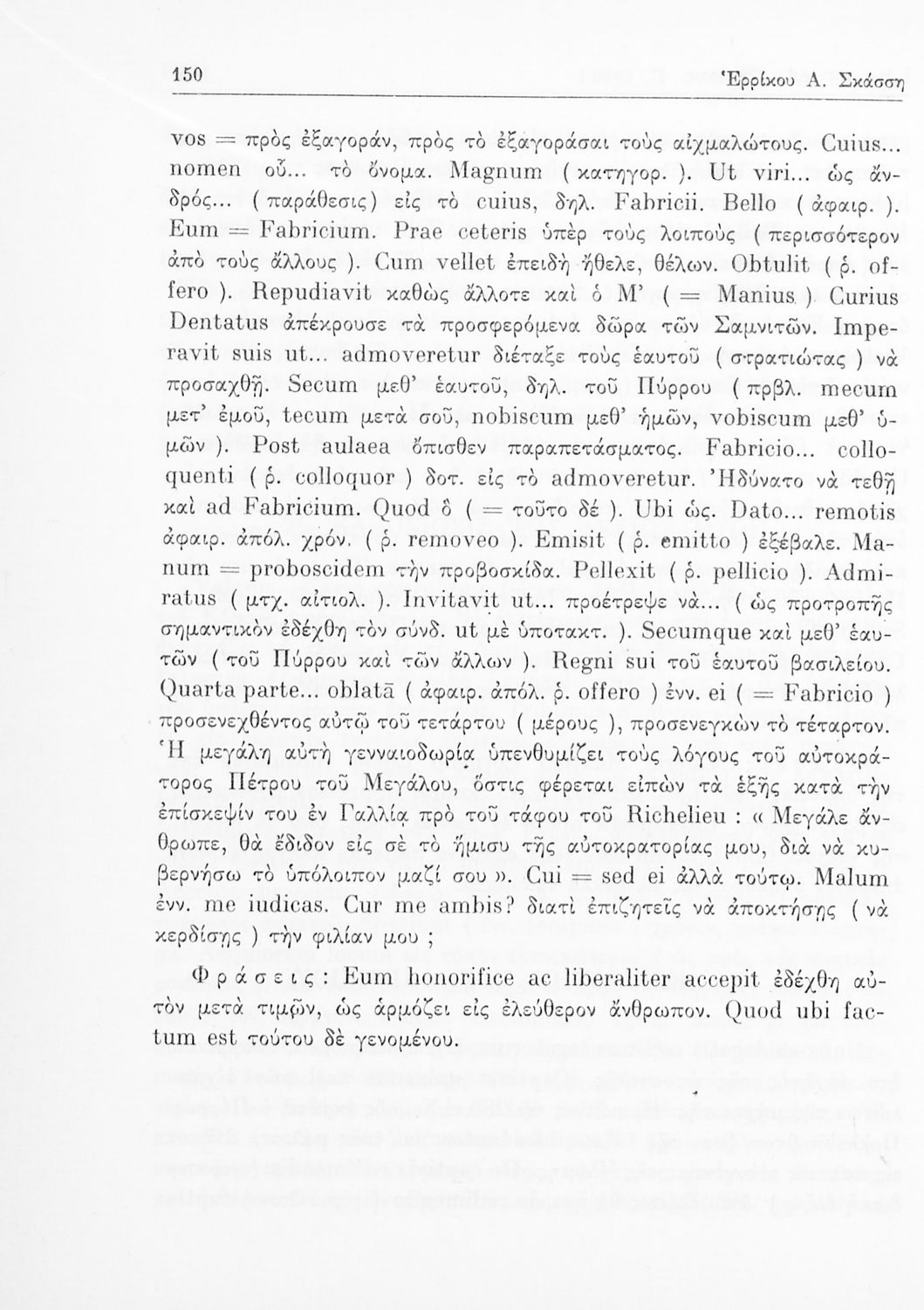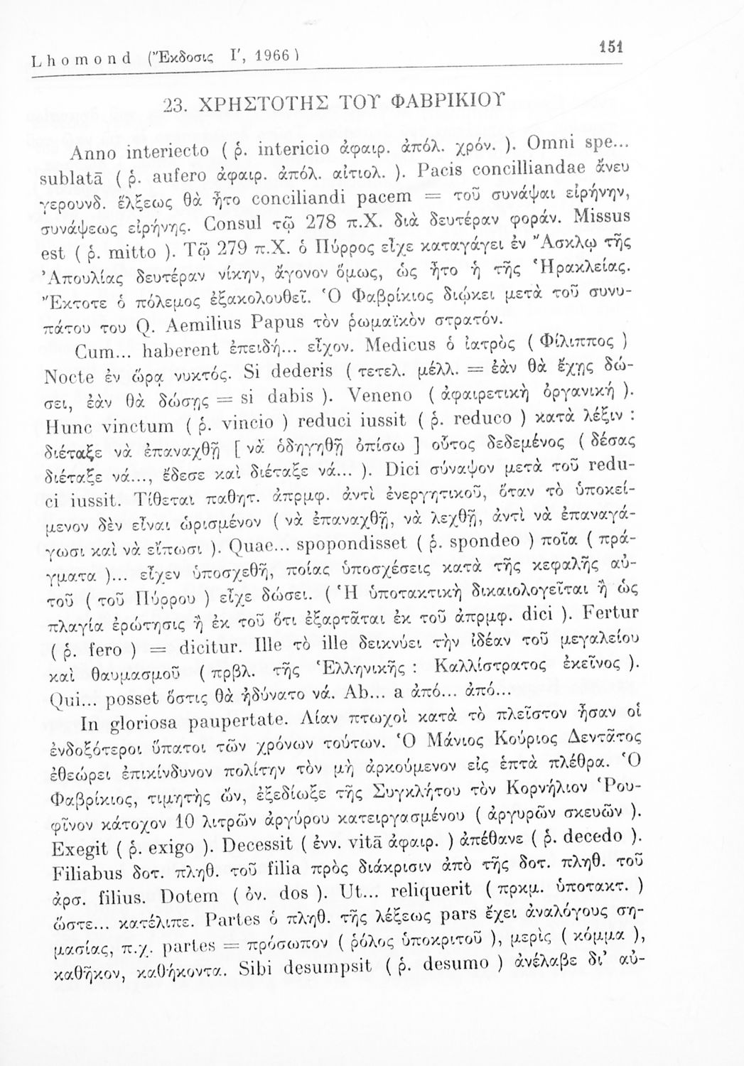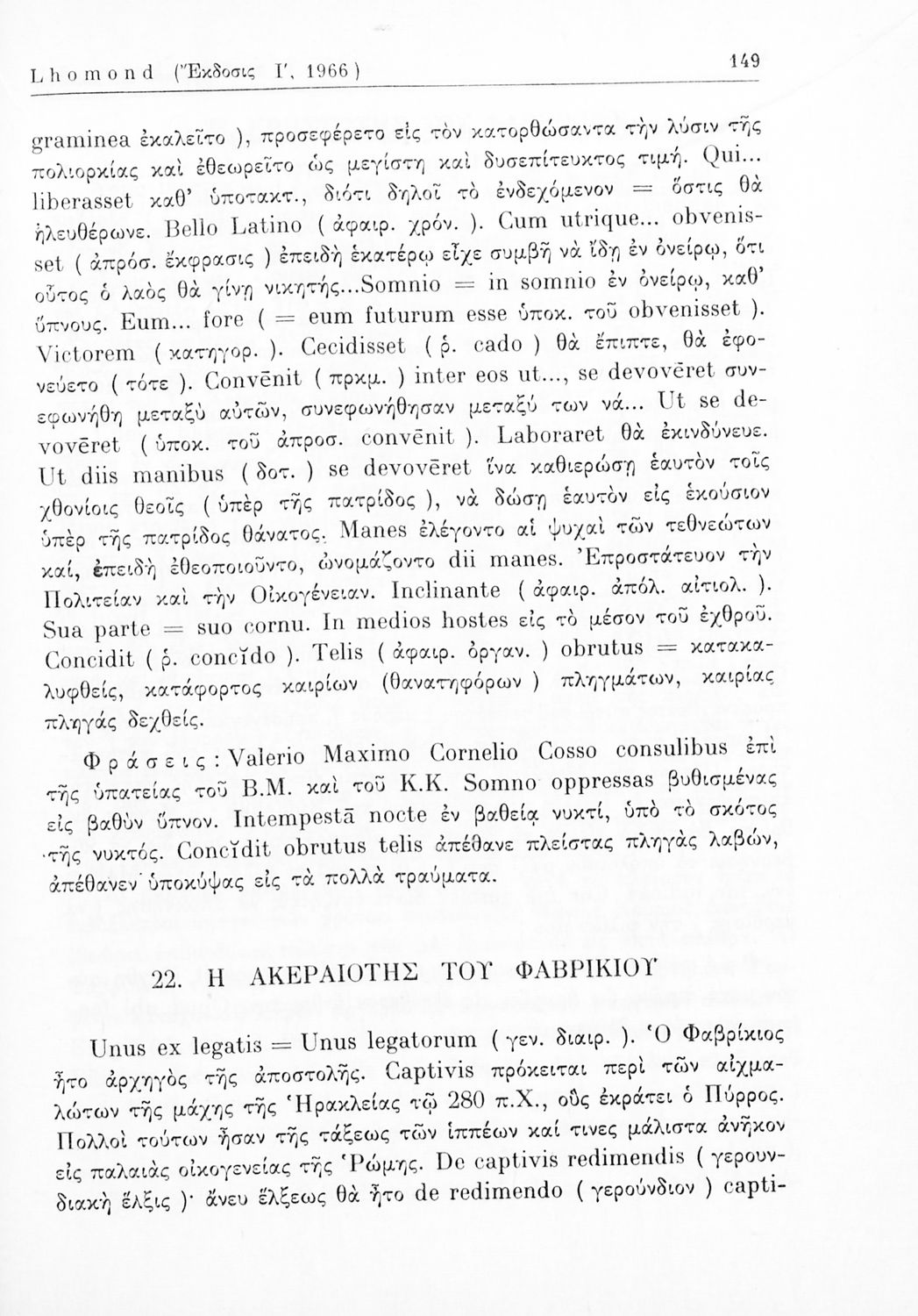 Βαθμίδα εκπαίδευσης: Δευτεροβάθμια Μάθημα: Λατινικά Γλώσσα: Απλή καθαρεύουσα Παρουσίαση περιεχομένου: Σχολικό εγχειρίδιο Λατινικών Β΄ Λυκείου που περιέχει κείμενα προσαρμοσμένα στη διδασκαλία των γραμματικών και συντακτικών φαινομένων, αποσπάσματα από το έργο του Lhomond De viris illustribus urbis Romae, ερμηνευτικές παρατηρήσεις και λεξιλόγιο. |