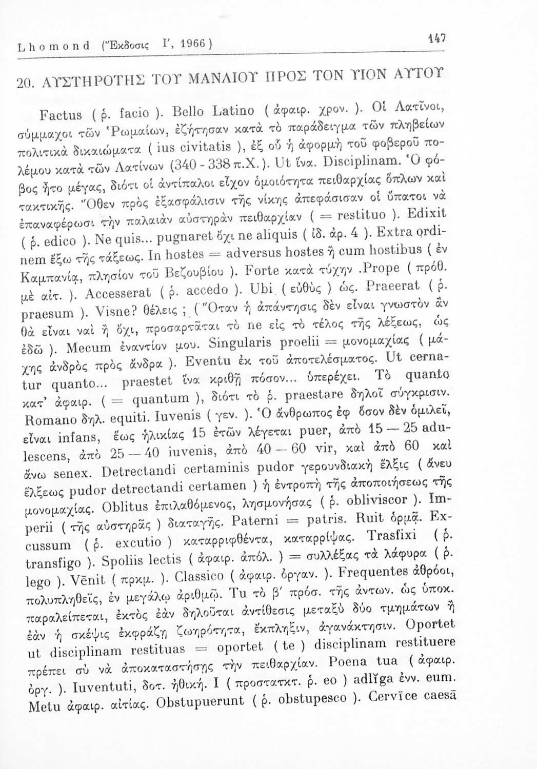 LDR 01265 2200205 4500 035 ## _a03-20556906 040 ## _aΒιβλιοθήκη της Βουλής των Ελλήνων 041 ## _ael 100 ## _aLhomond _aΚυριάκος Κοσμάς _aΕρρίκος Σκάσσης (σχόλια) 110 ## _a20556906 245 0# _aΑναγνωστικόν Λατινικής Γλώσσης – Lhomond De Viris Illustribus Urbis Romae 250 ## _a14η Έκδοση 260 ## _aΑθήνα _bΟργανισμός Εκδόσεως Διδακτικών Βιβλίων _c1966 300 ## _a256 520 ## _aΣχολικό εγχειρίδιο Λατινικών Β΄ Λυκείου που περιέχει κείμενα προσαρμοσμένα στη διδασκαλία των γραμματικών και συντακτικών φαινομένων, αποσπάσματα από το έργο του Lhomond De viris illustribus urbis Romae, ερμηνευτικές παρατηρήσεις και λεξιλόγιο. 522 ## _aΕλλάδα 546 ## _aΑπλή καθαρεύουσα 563 ## _aΜαλακό Εξώφυλλο 583 ## _a1439/2-8-1966 – 1434/16-7-1966 _c1966 650 #4 _aMarcus _aΓραμματική _aΚείμενα _aΣυντακτικό