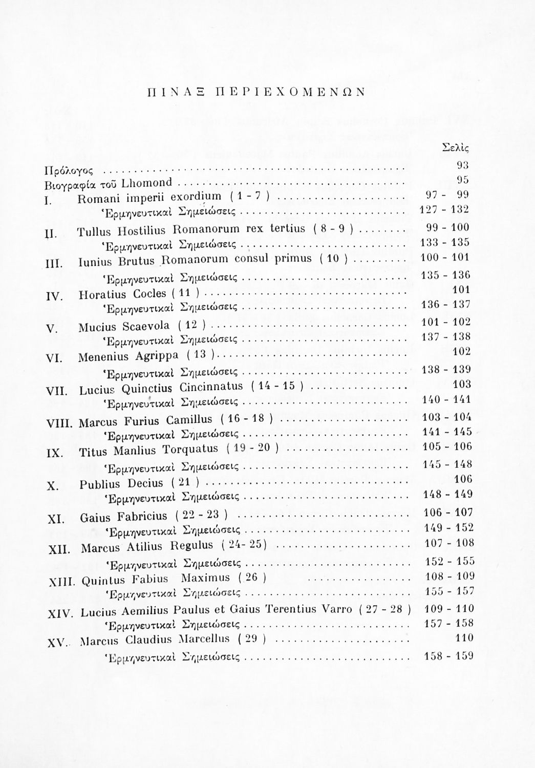Σχολικό εγχειρίδιο Λατινικών που περιέχει 64 αποσπάσματα από το βιβλίο του Lhomond και παρουσιάζει βίους επιφανών Ρωμαίων από το 753 π.Χ μέχρι το 14 μ.Χ.