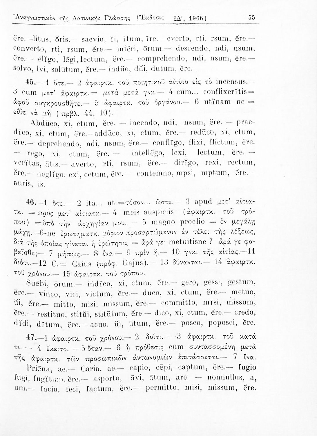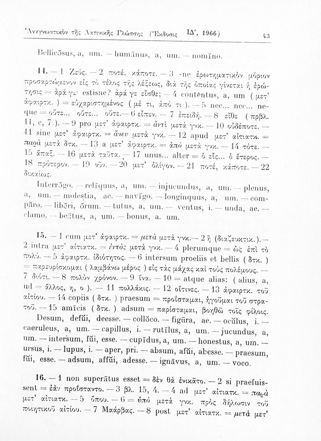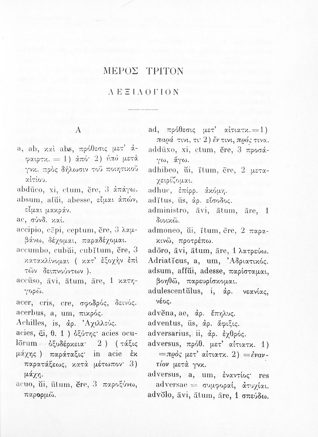 Αναγνωστικό Λατινικών για τη Γ΄ Γυμνασίου που περιέχει 54 κείμενα/περικοπές στα λατινικά, ερμηνευτικά υπομνήματα, λεξιλόγιο και κατάλογο με τα συντακτικά φαινόμενα (αφαιρετική, προθέσεις, σύνδεσμοι) που ...
