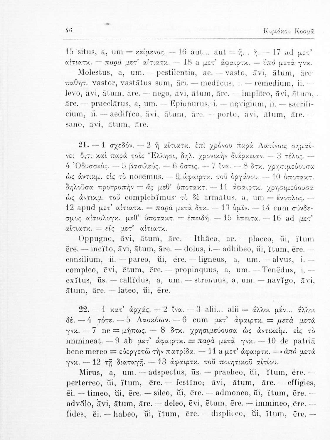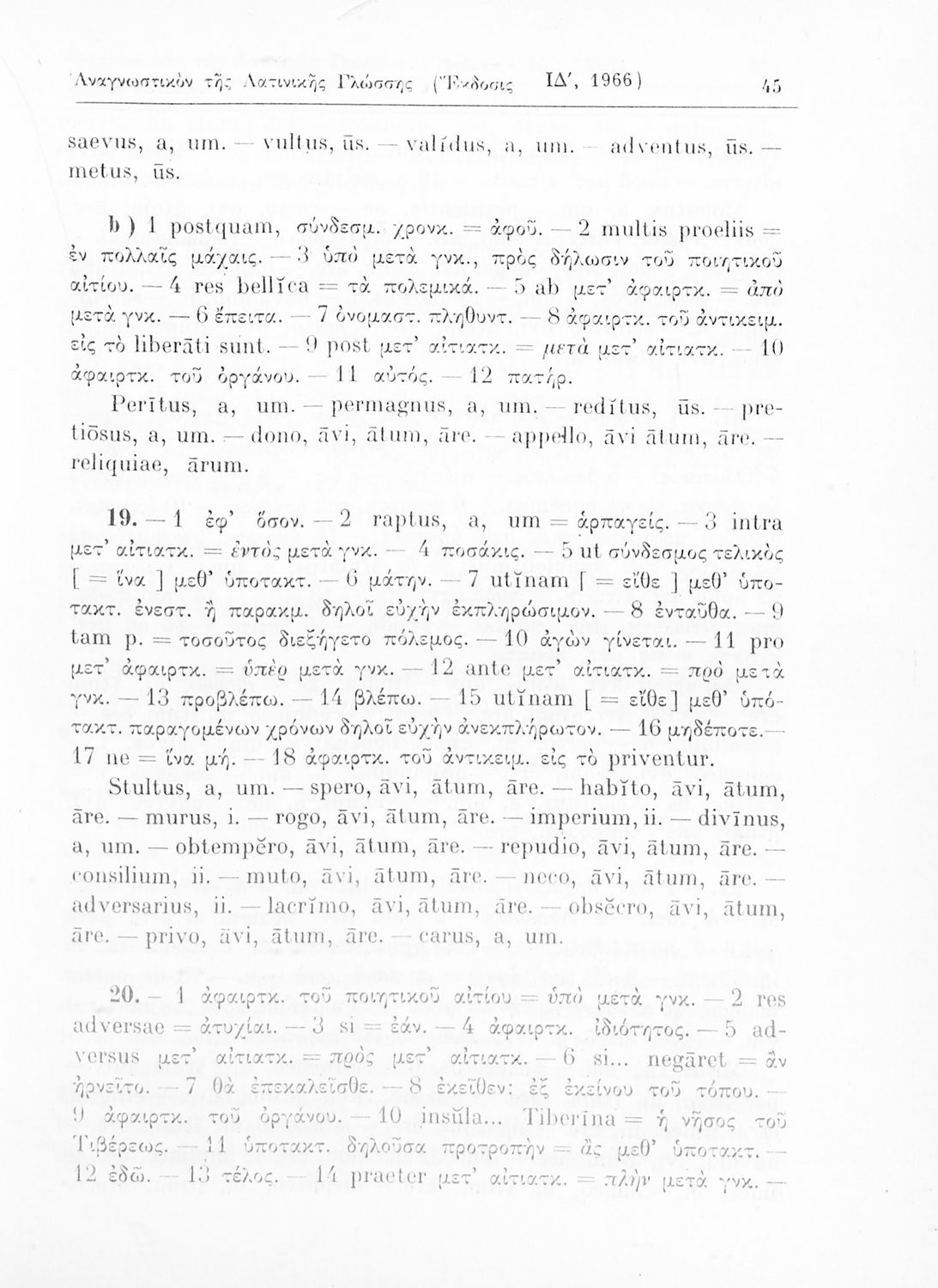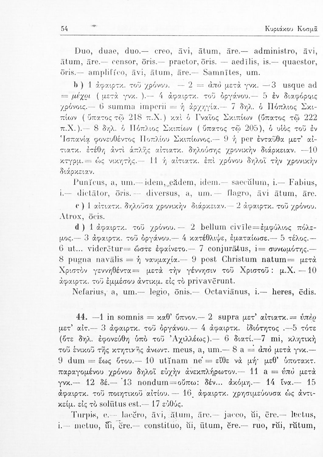 Αναγνωστικό Λατινικών για τη Γ΄ Γυμνασίου που περιέχει 54 κείμενα/περικοπές στα λατινικά, ερμηνευτικά υπομνήματα, λεξιλόγιο και κατάλογο με τα συντακτικά φαινόμενα (αφαιρετική, προθέσεις, σύνδεσμοι) που ...