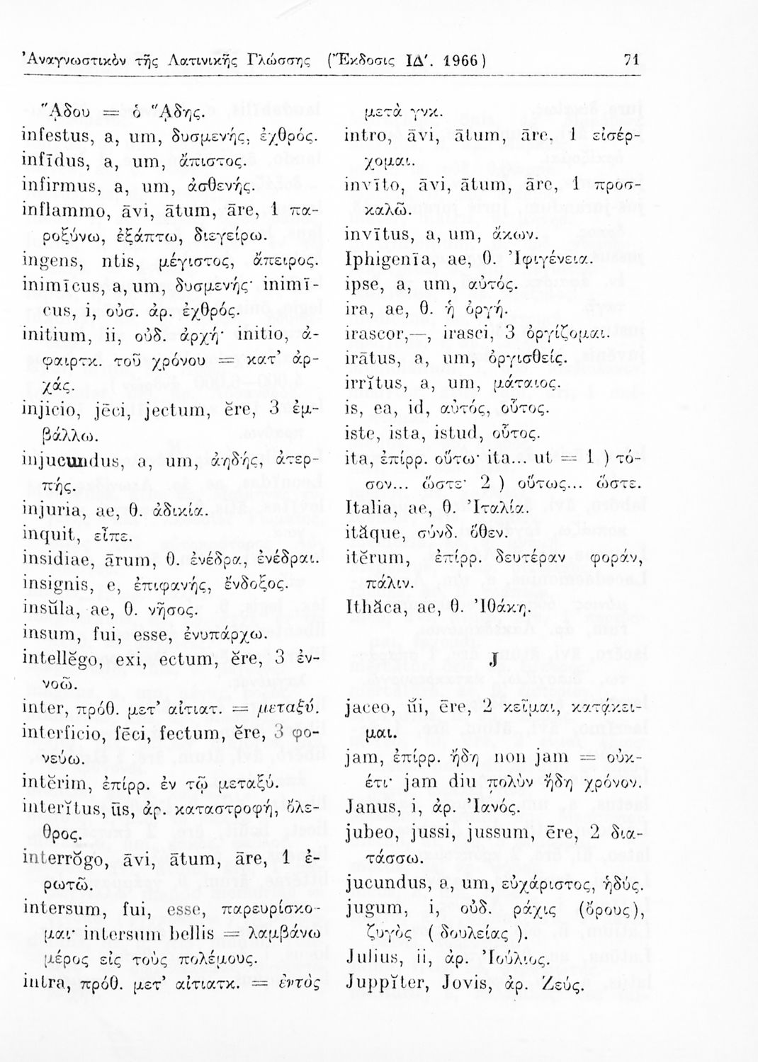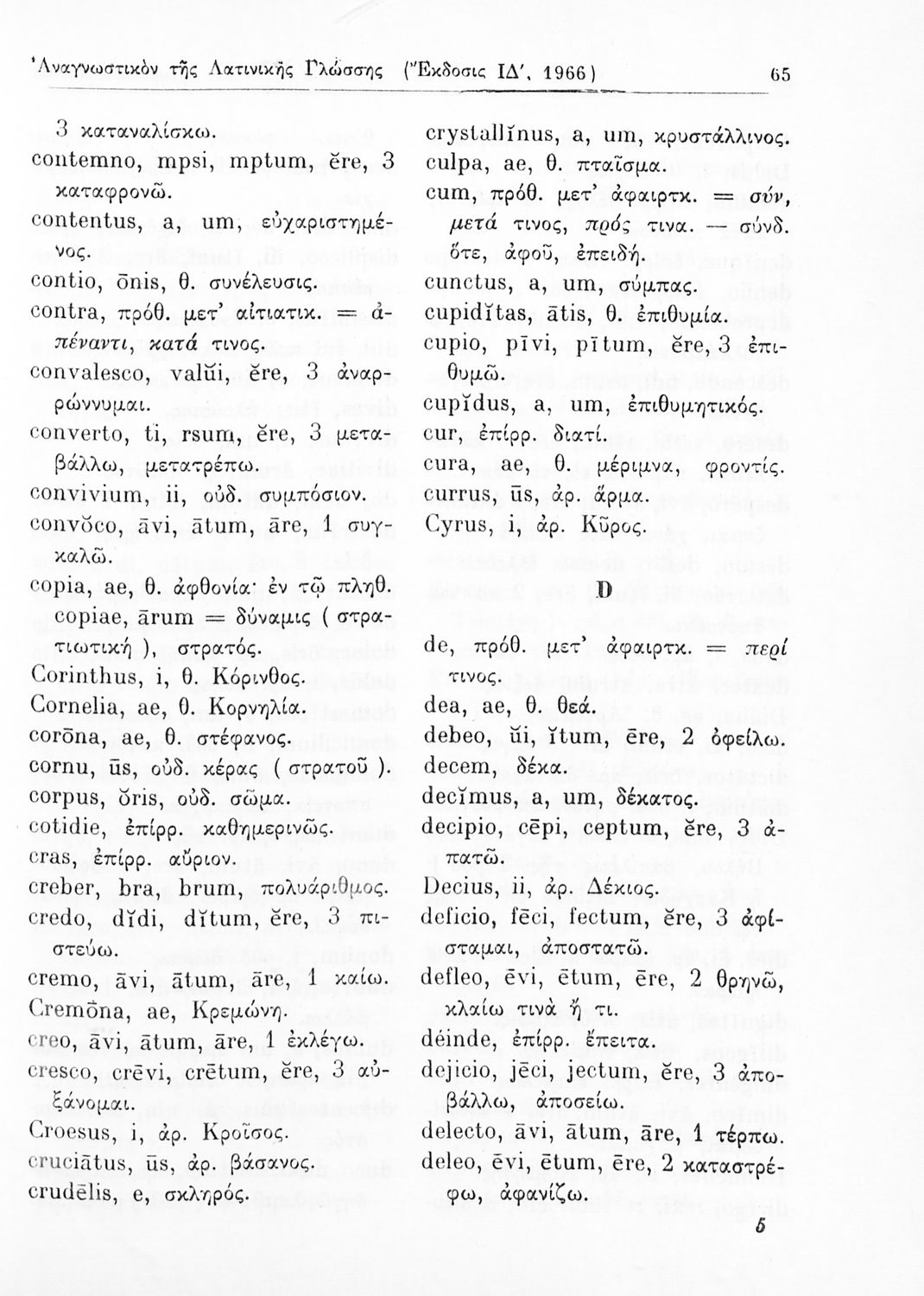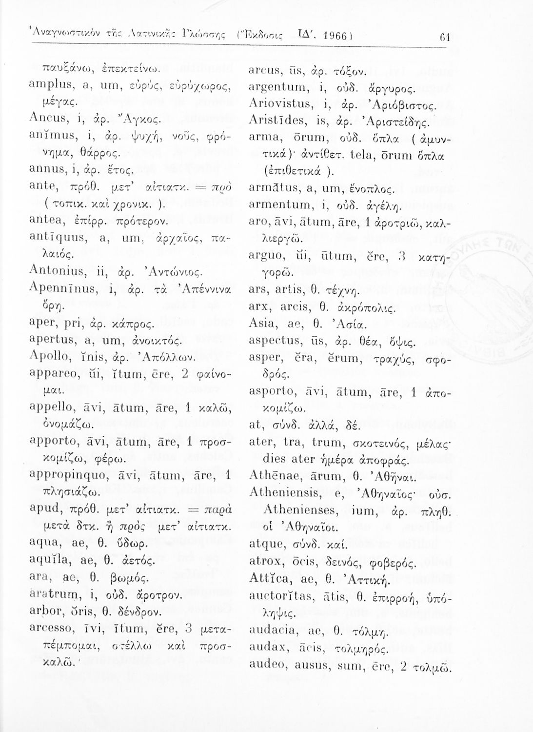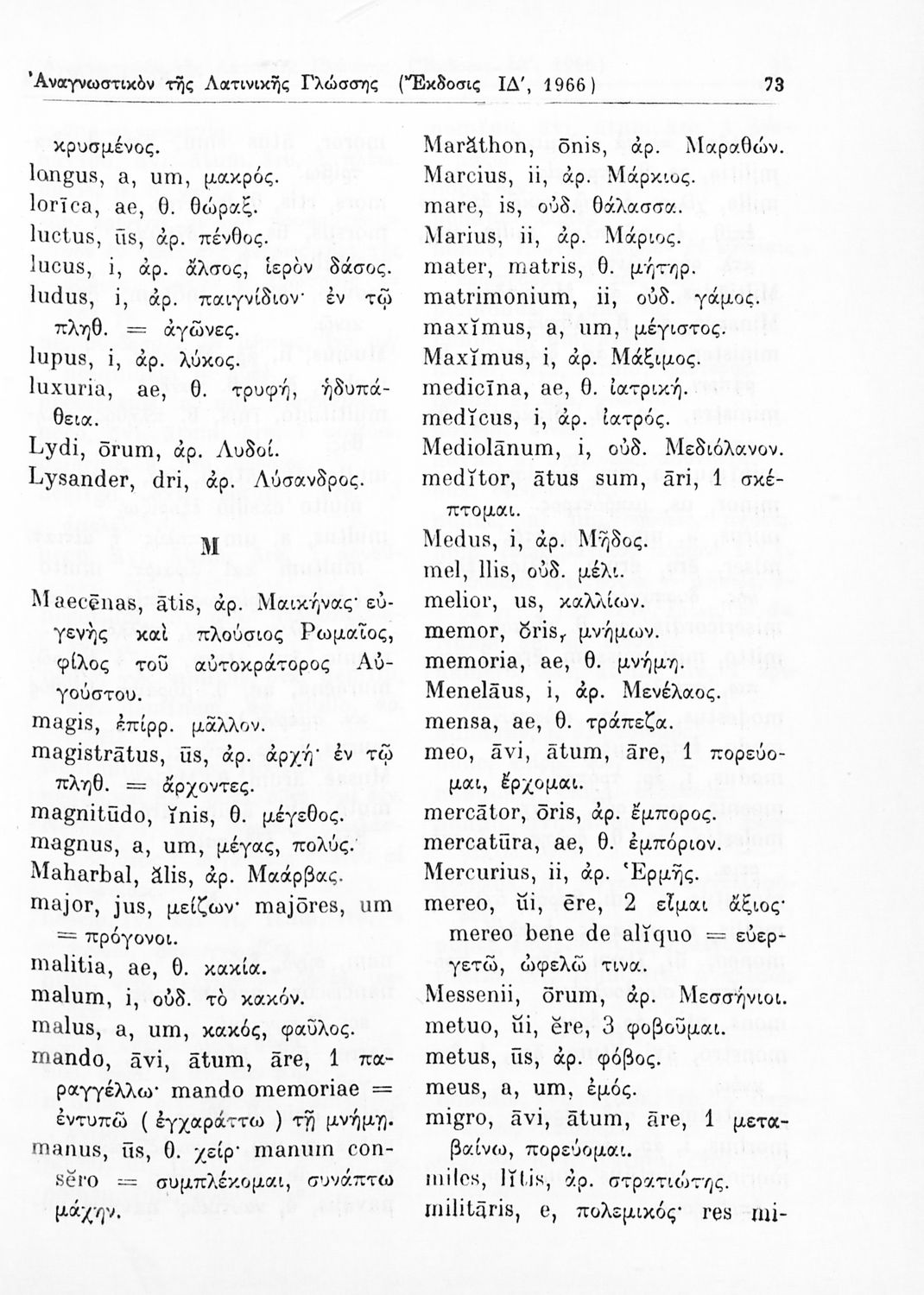 Αναγνωστικό Λατινικών για τη Γ΄ Γυμνασίου που περιέχει 54 κείμενα/περικοπές στα λατινικά, ερμηνευτικά υπομνήματα, λεξιλόγιο και κατάλογο με τα συντακτικά φαινόμενα (αφαιρετική, προθέσεις, σύνδεσμοι) που ...