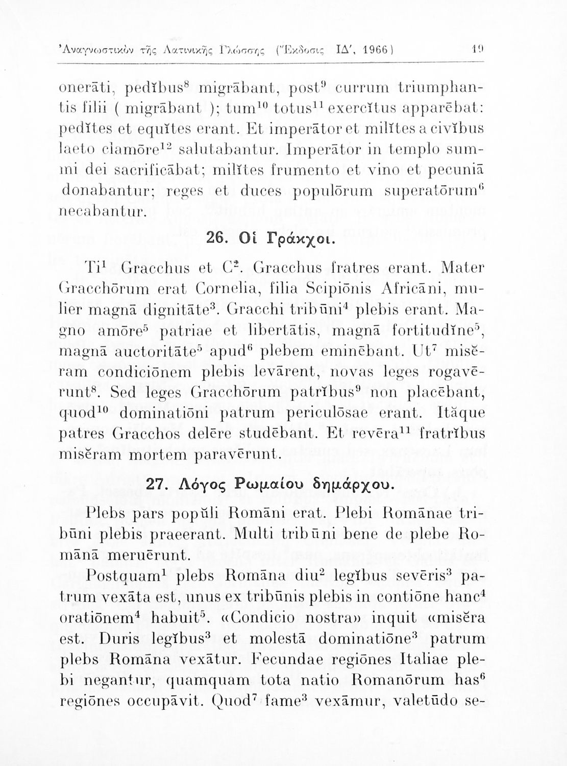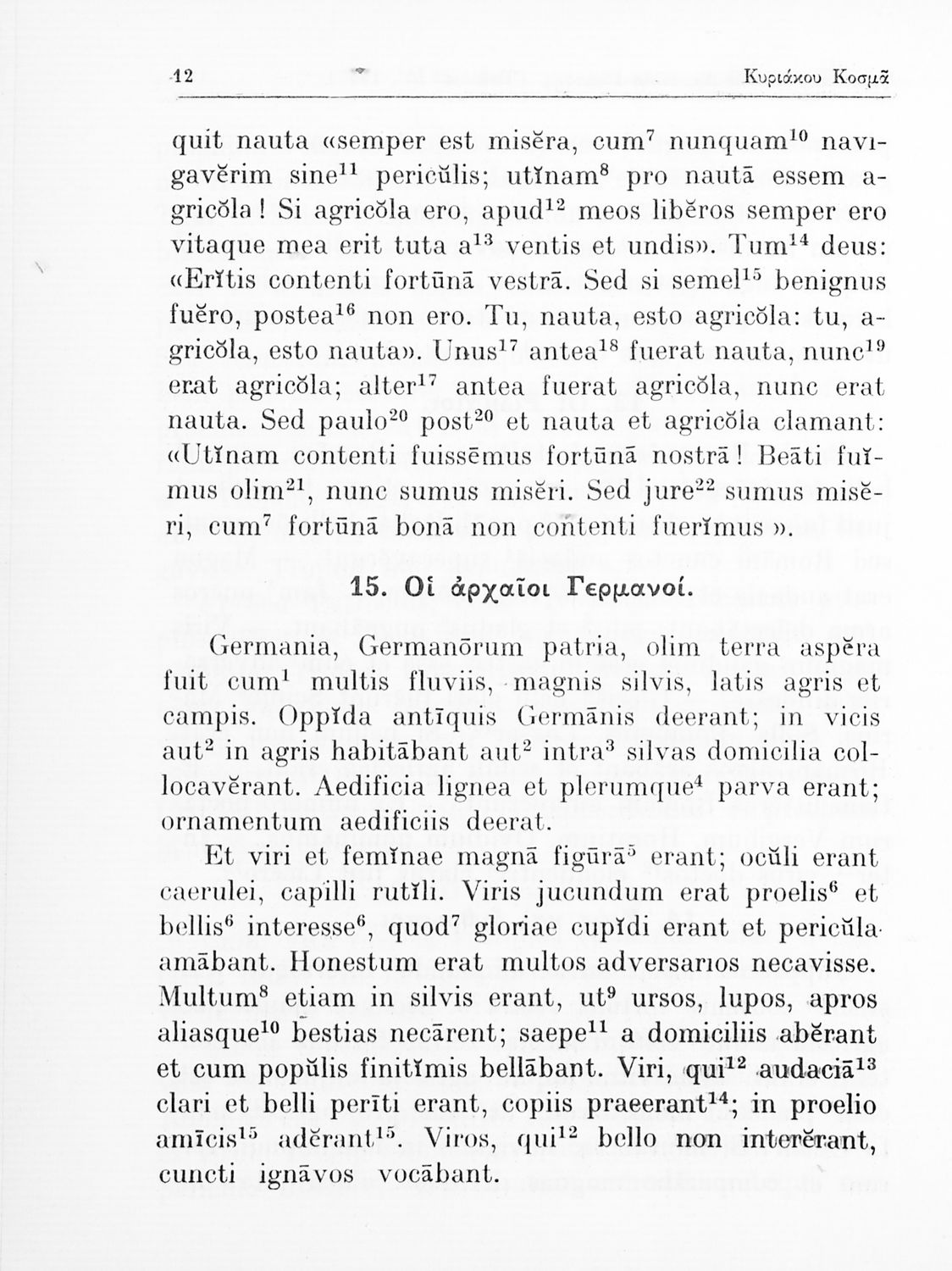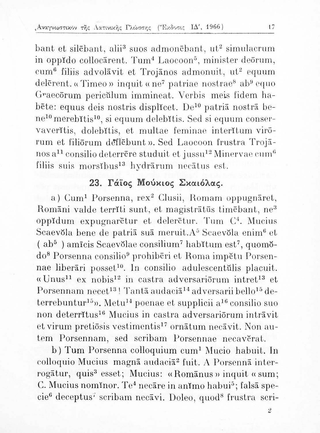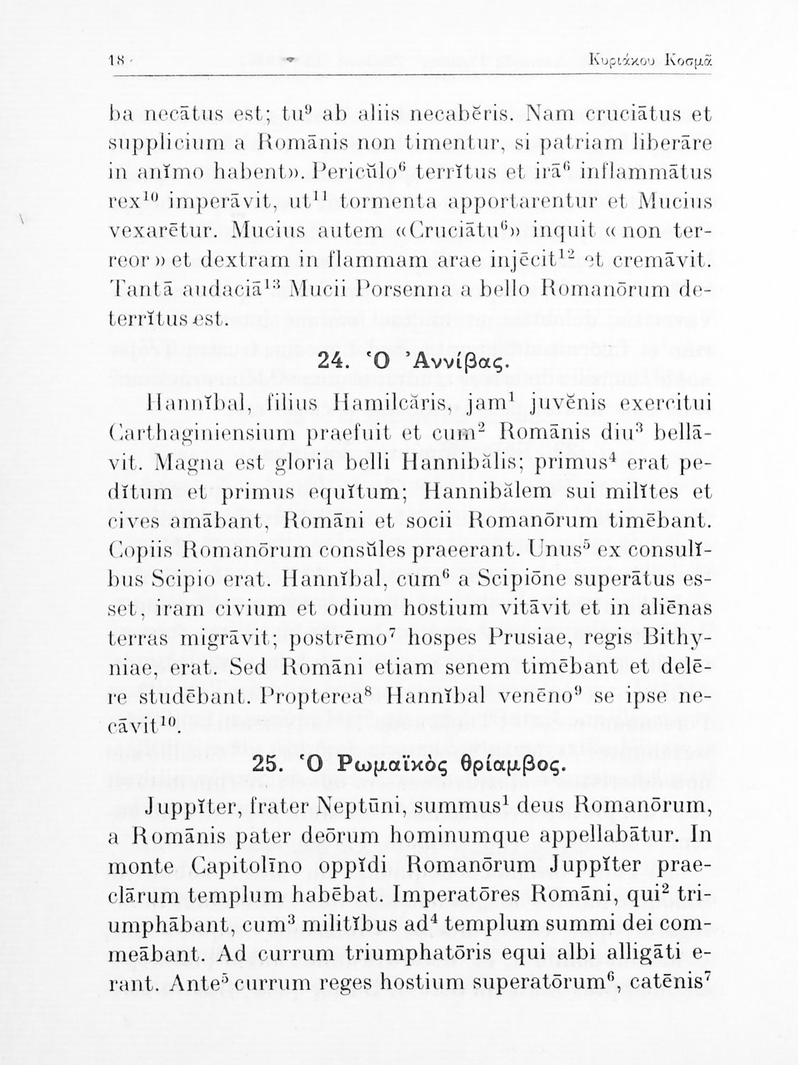 Βαθμίδα εκπαίδευσης: Δευτεροβάθμια Μάθημα: Λατινικά Γλώσσα: Απλή καθαρεύουσα Παρουσίαση περιεχομένου: Σχολικό εγχειρίδιο Λατινικών Β΄ Λυκείου που περιέχει κείμενα προσαρμοσμένα στη διδασκαλία των γραμματικών και συντακτικών φαινομένων, αποσπάσματα από το έργο του Lhomond De viris illustribus urbis Romae, ερμηνευτικές παρατηρήσεις και λεξιλόγιο. |