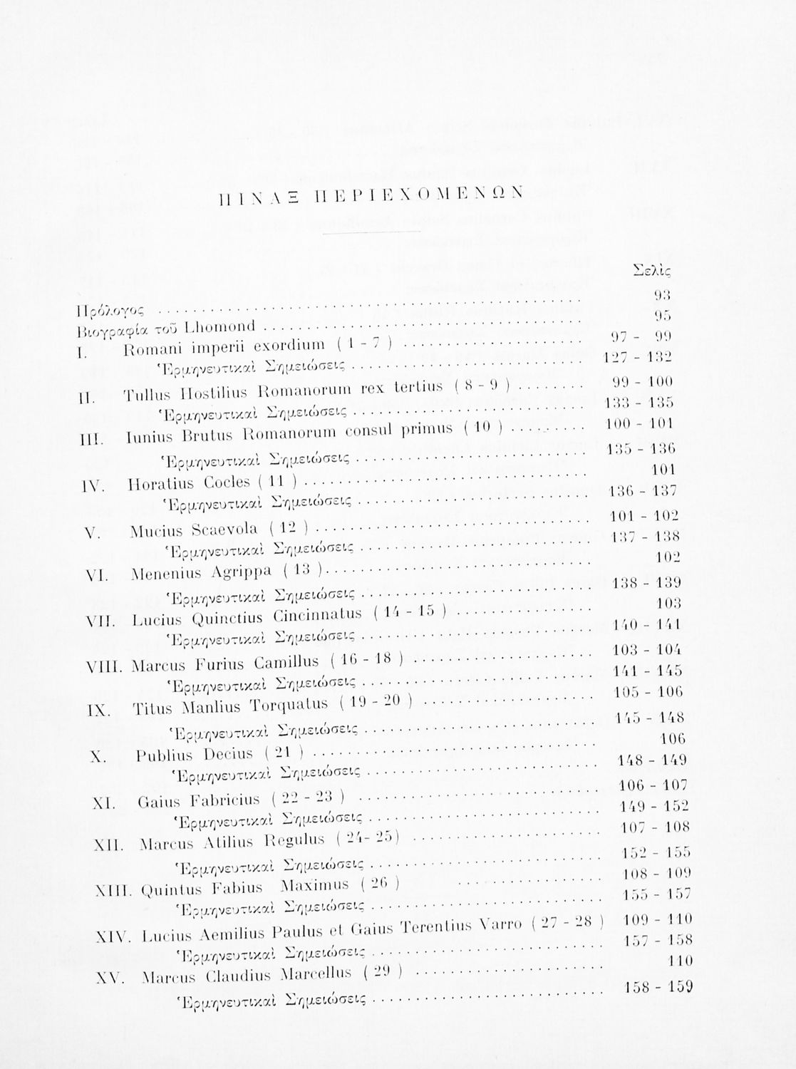 Σχολικό εγχειρίδιο Λατινικών Γ΄ Γυμνασίου που περιέχει κείμενα προσαρμοσμένα στη διδασκαλία των γραμματικών και συντακτικών φαινομένων, αποσπάσματα από το έργο του Lhomond De viris illustribus urbis Romae, ερμηνευτικές παρατηρήσεις και λεξιλόγιο.