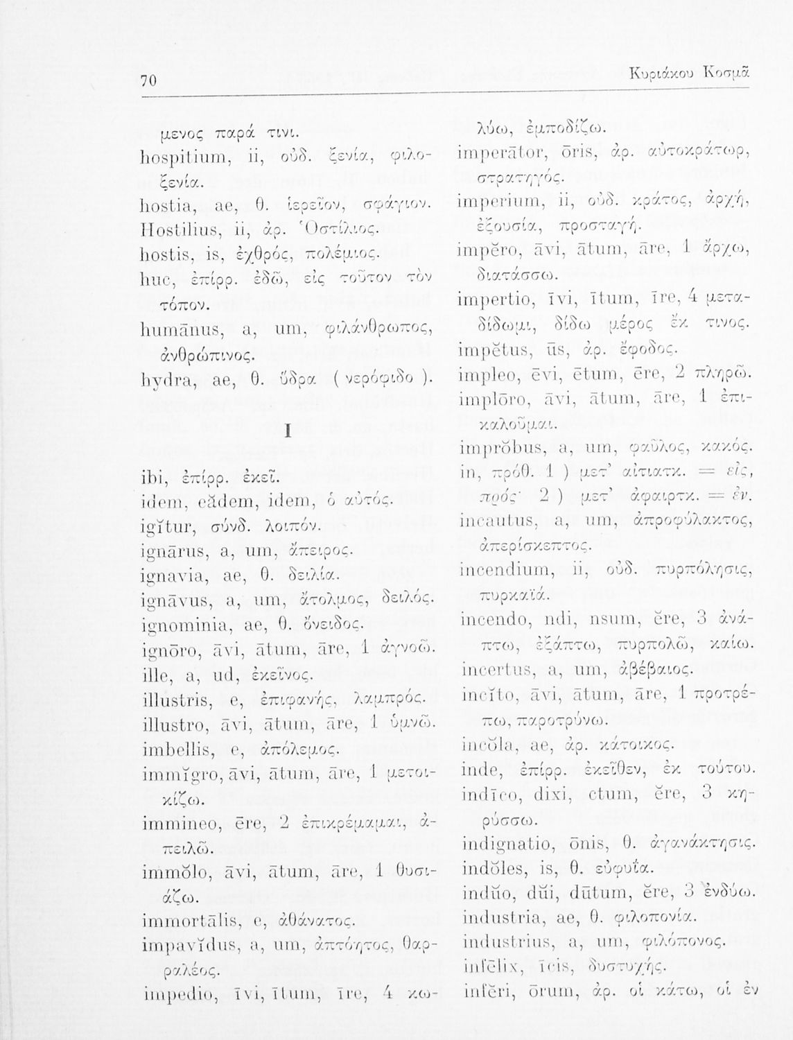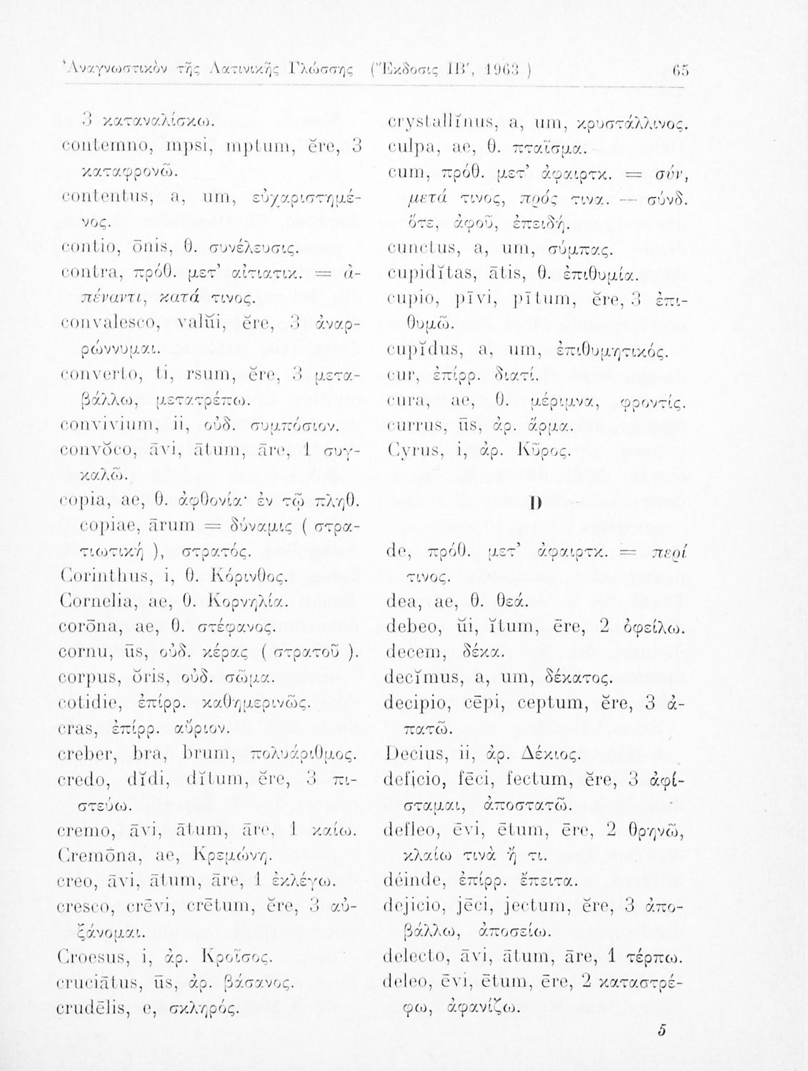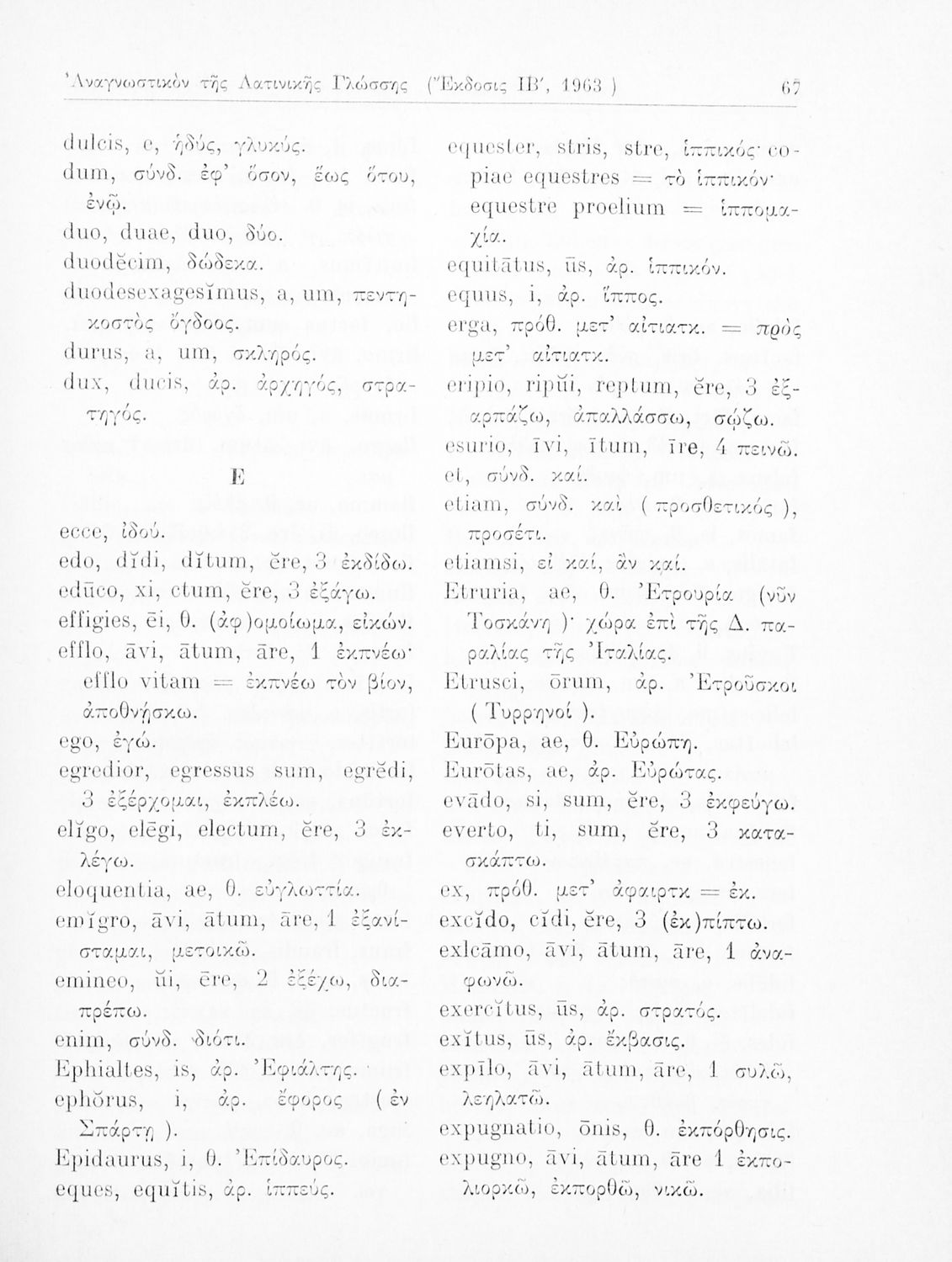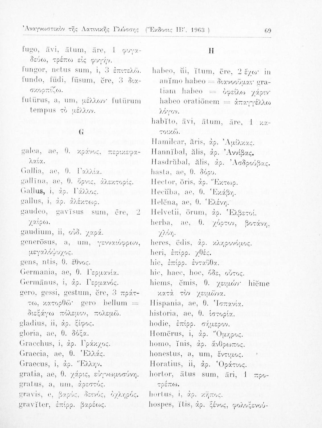Σχολικό εγχειρίδιο Λατινικών για τη Γ΄ Γυμνασίου που περιέχει 54 κείμενα/περικοπές στα λατινικά, ερμηνευτικά υπομνήματα, λεξιλόγιο και κατάλογο με τα συντακτικά φαινόμενα (αφαιρετική, προθέσεις, σύνδεσμοι) που