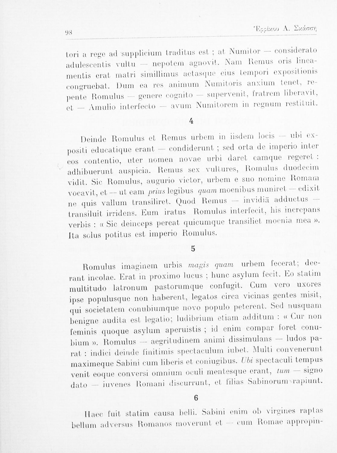Σχολικό εγχειρίδιο Λατινικών για τη Δ΄ Γυμνασίου που περιέχει 54 κείμενα/περικοπές στα λατινικά, ερμηνευτικά υπομνήματα, λεξιλόγιο και κατάλογο με τα συντακτικά φαινόμενα (αφαιρετική, προθέσεις, σύνδεσμοι) που