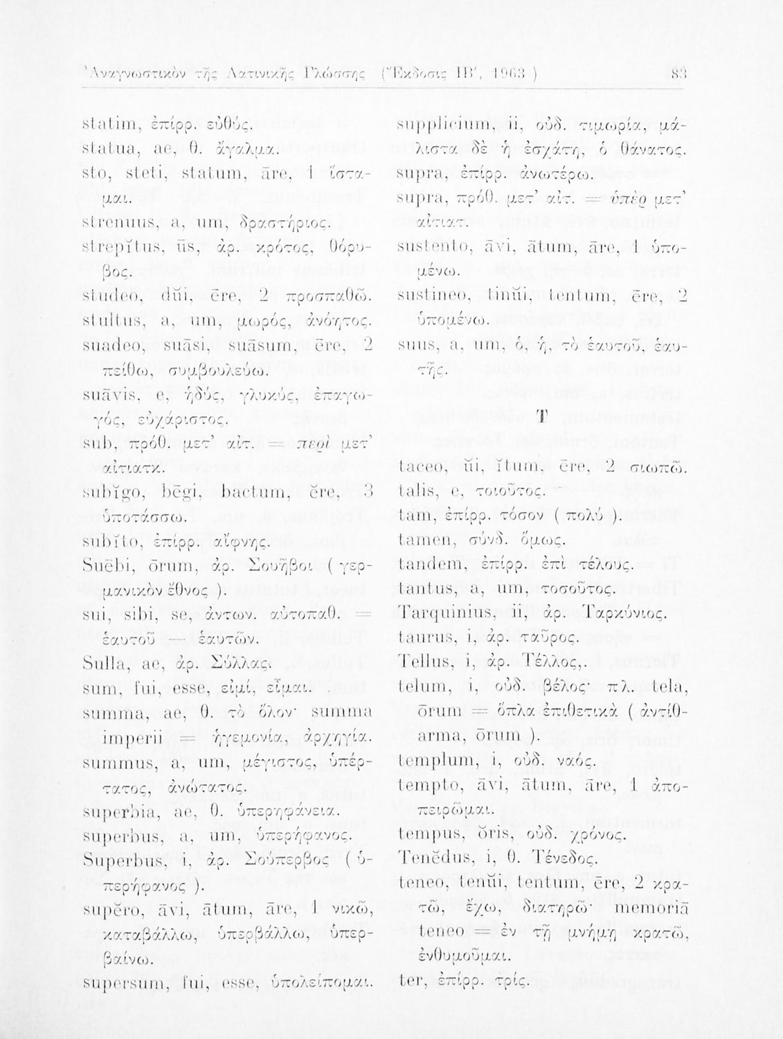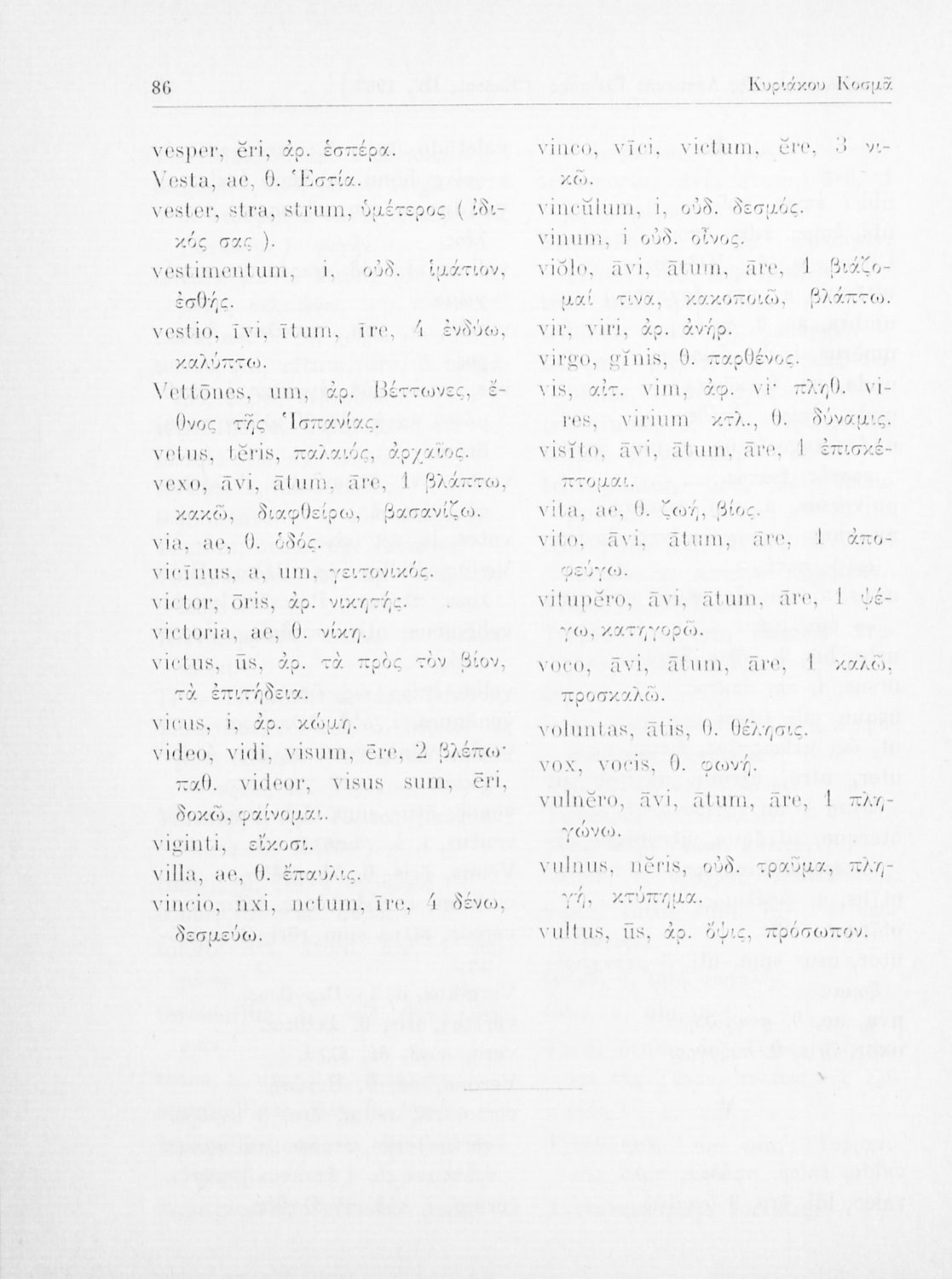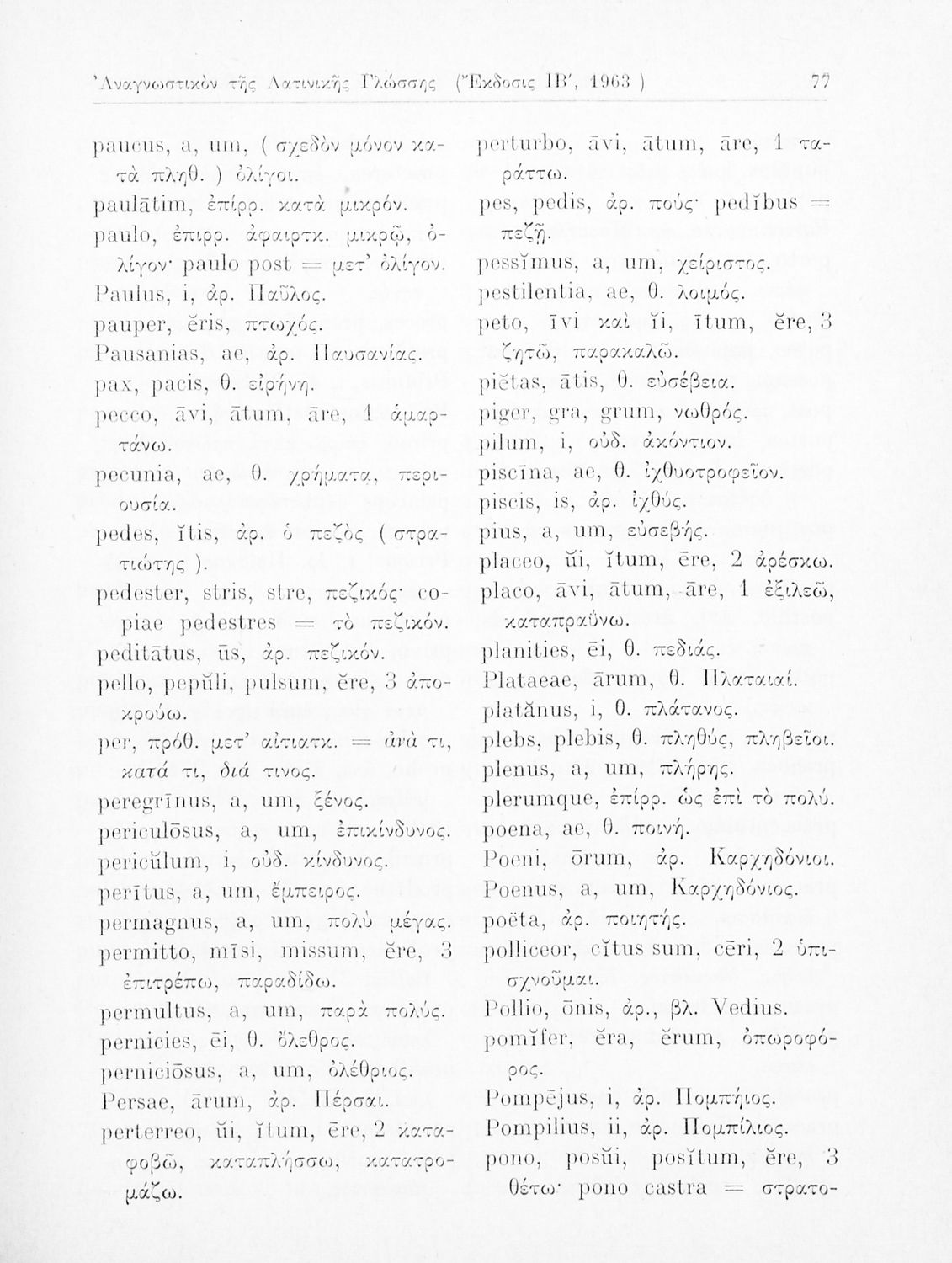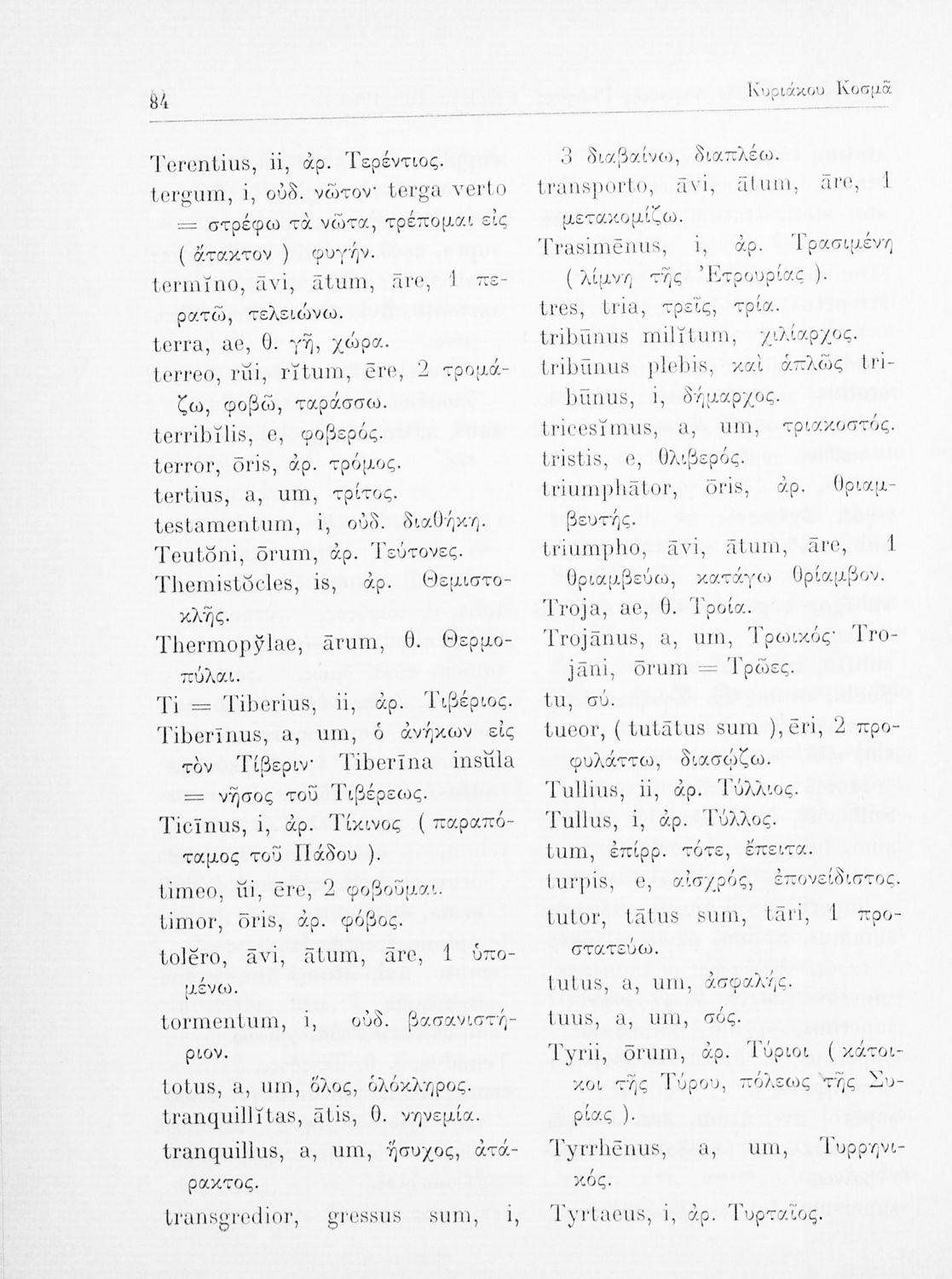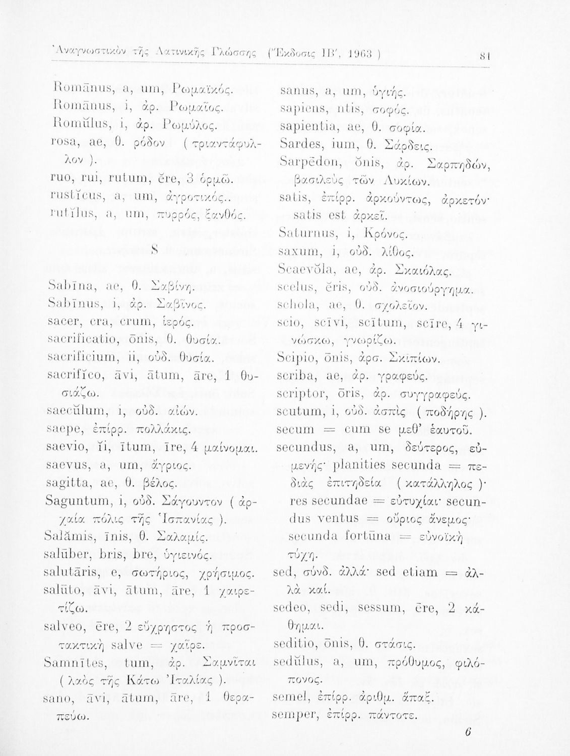 Σχολικό εγχειρίδιο Λατινικών για τη Γ΄ Γυμνασίου που περιέχει 54 κείμενα/περικοπές στα λατινικά, ερμηνευτικά υπομνήματα, λεξιλόγιο και κατάλογο με τα συντακτικά φαινόμενα (αφαιρετική, προθέσεις, σύνδεσμοι) που