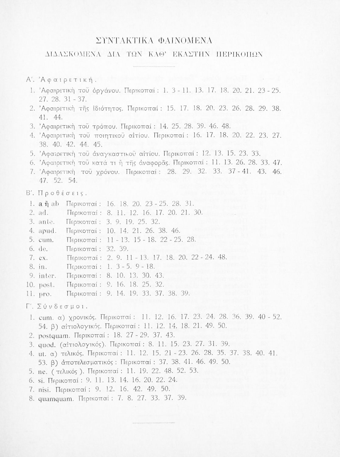 Αναγνωστικό Λατινικών για τη Γ΄ Γυμνασίου που περιέχει 54 κείμενα/περικοπές στα λατινικά, ερμηνευτικά υπομνήματα, λεξιλόγιο και κατάλογο με τα συντακτικά φαινόμενα (αφαιρετική, προθέσεις, σύνδεσμοι) που ...