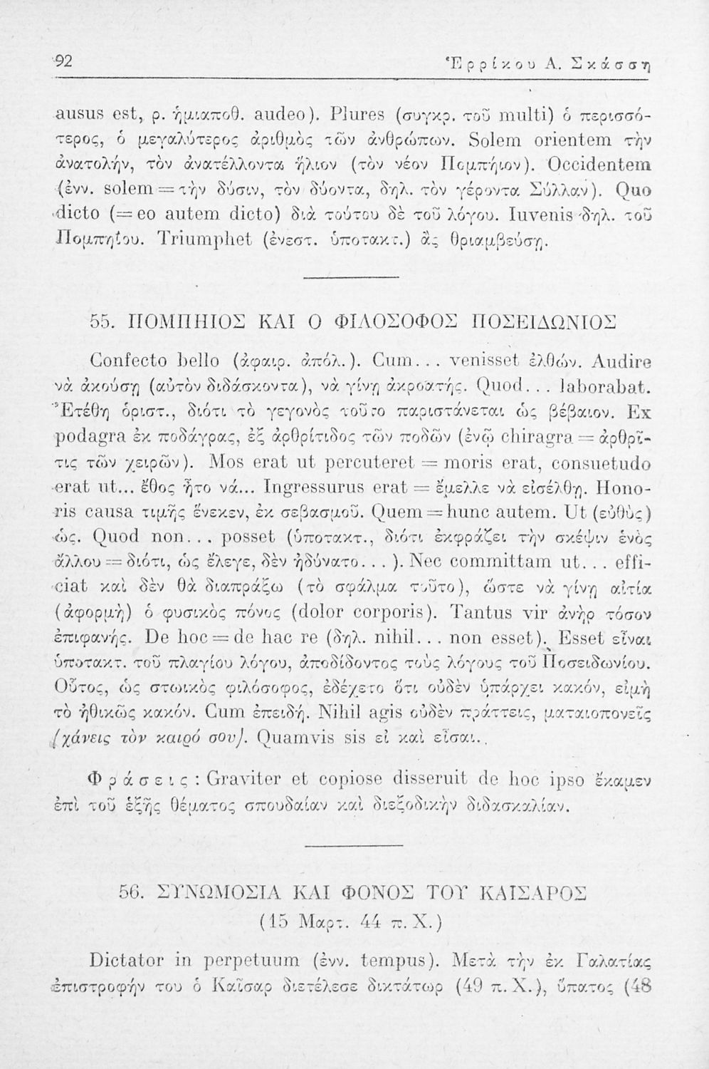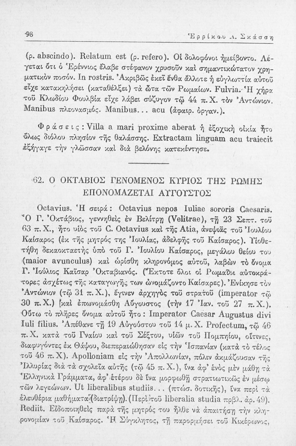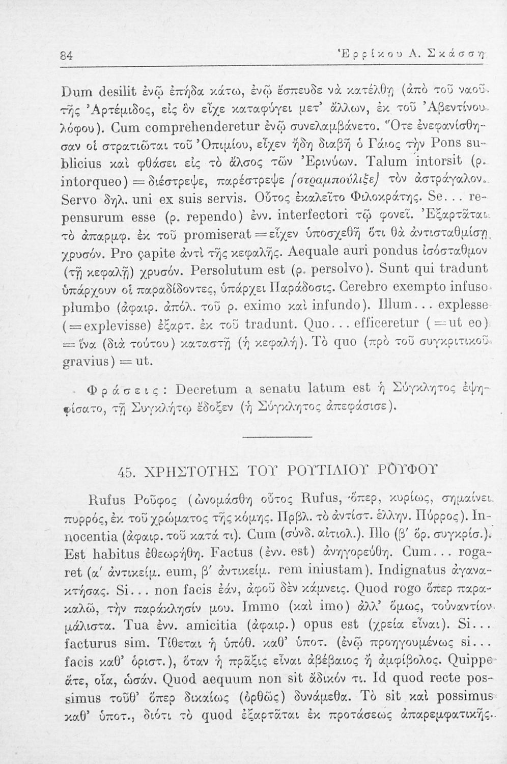 Αναγνωστικό Λατινικών για τη Γ΄ Γυμνασίου που περιέχει 54 κείμενα/περικοπές στα λατινικά, ερμηνευτικά υπομνήματα, λεξιλόγιο και κατάλογο με τα συντακτικά φαινόμενα (αφαιρετική, προθέσεις, σύνδεσμοι) που ...