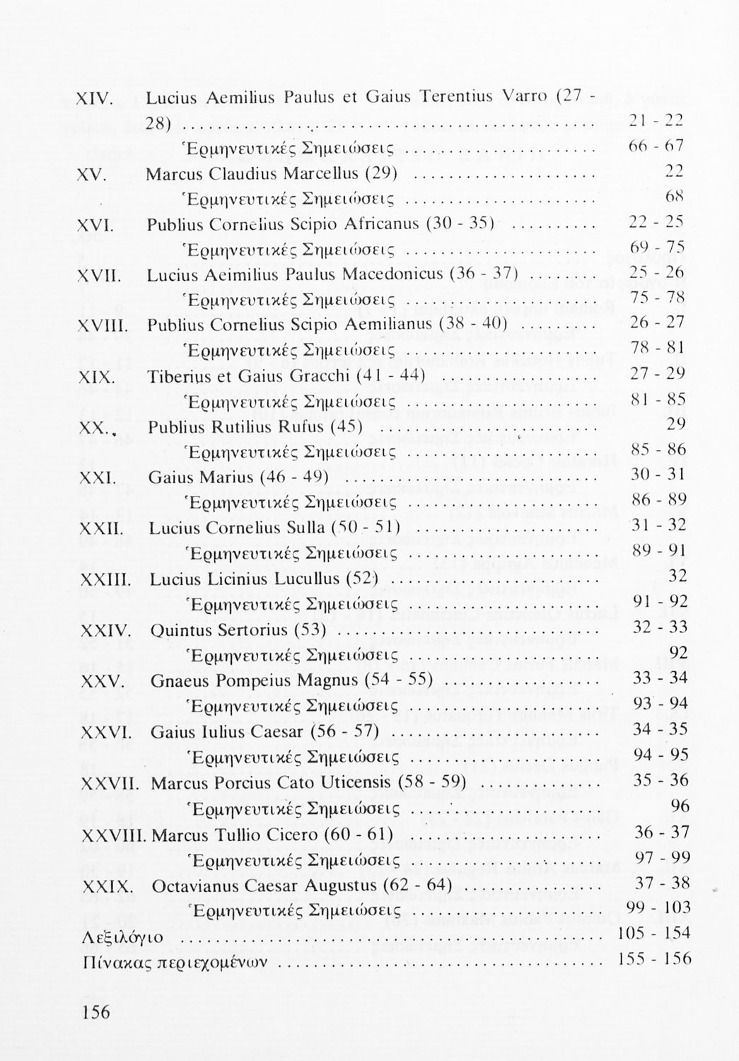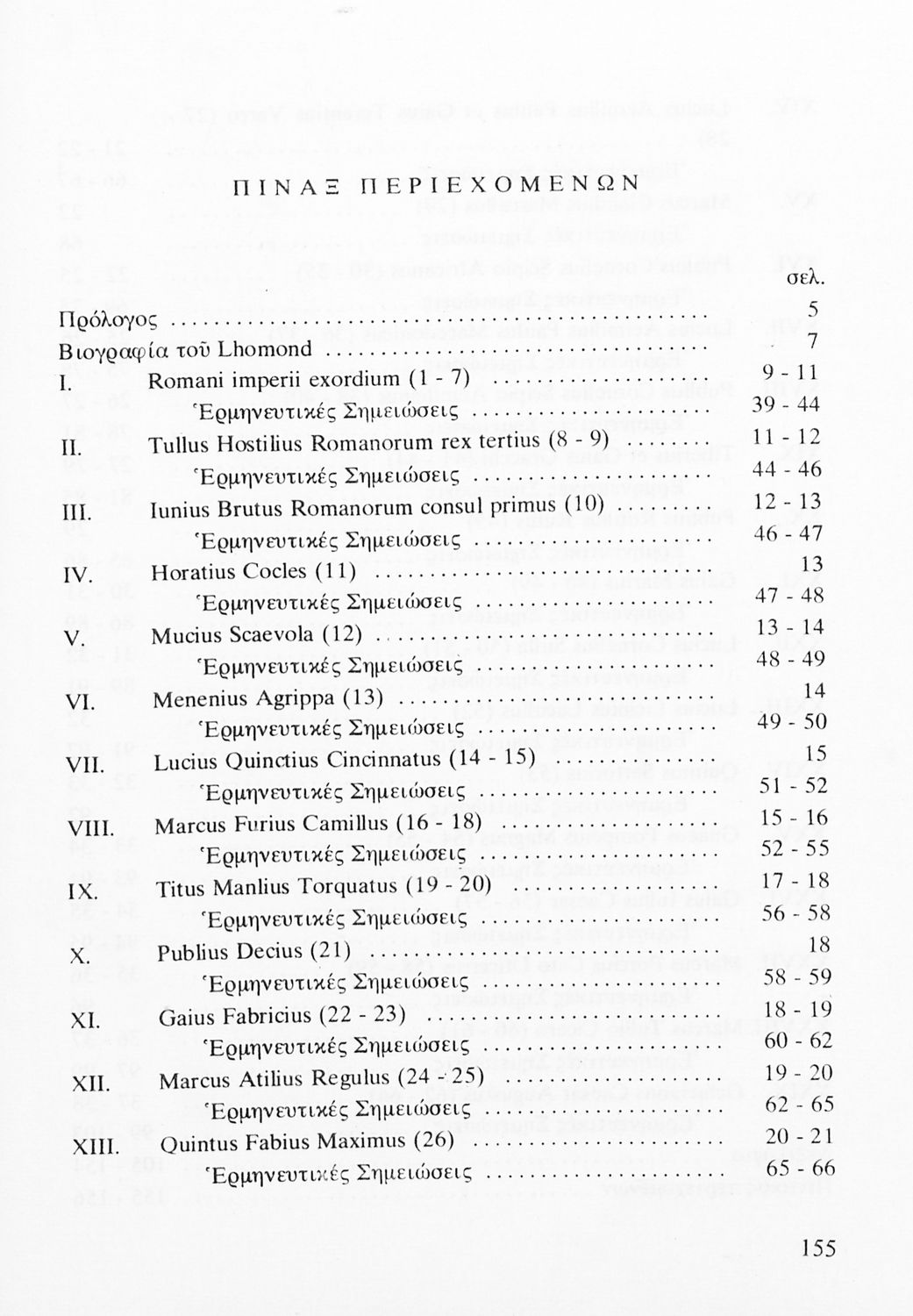 Σχολικό εγχειρίδιο Λατινικών που περιέχει 64 αποσπάσματα από το βιβλίο του Lhomond και παρουσιάζει βίους επιφανών Ρωμαίων από το 753 π.Χ μέχρι το 14 μ.Χ.