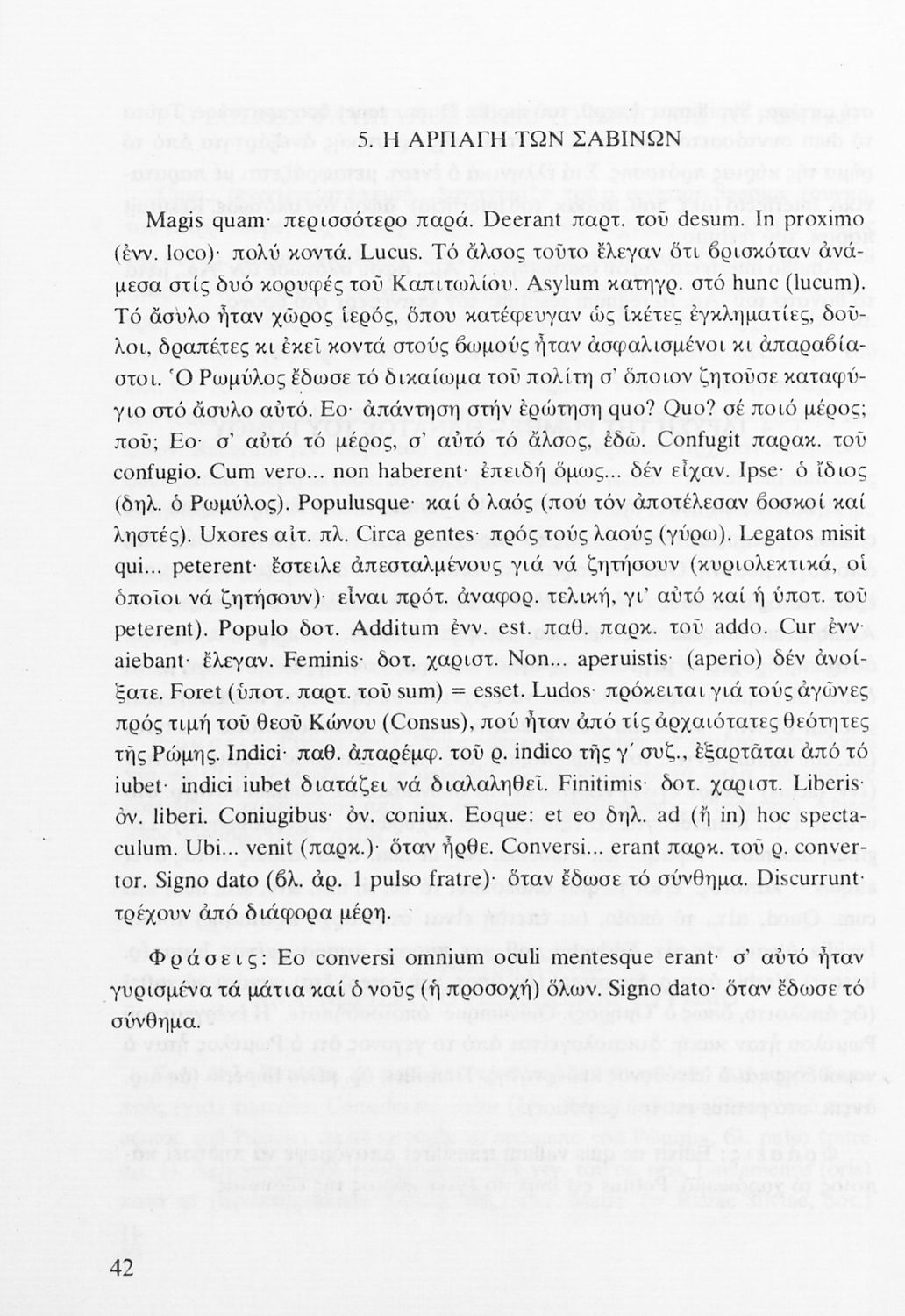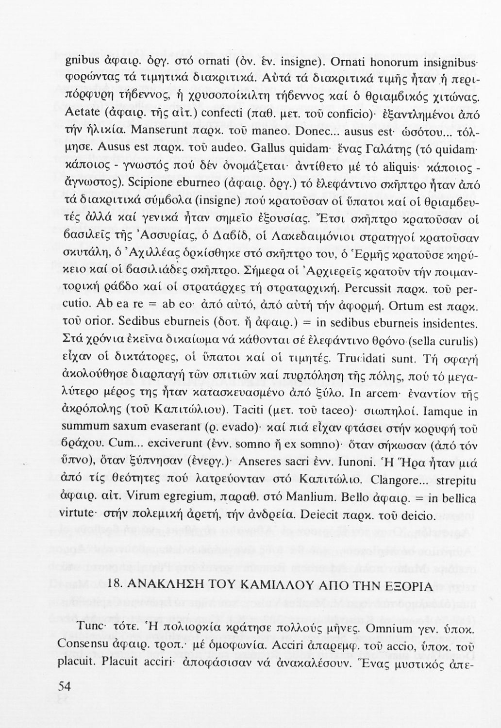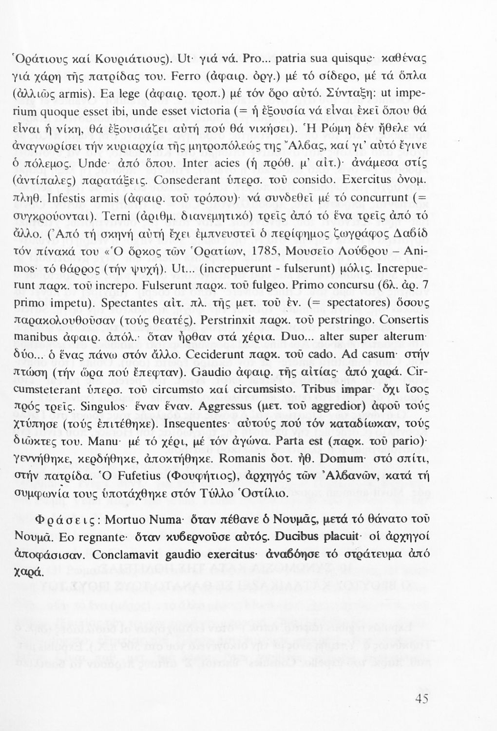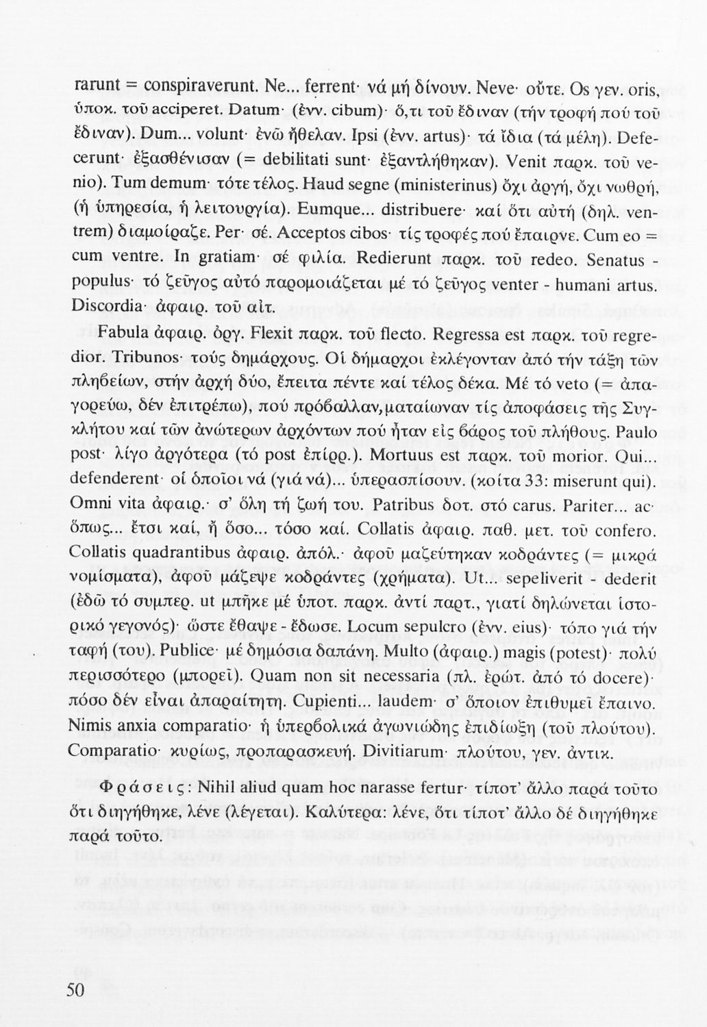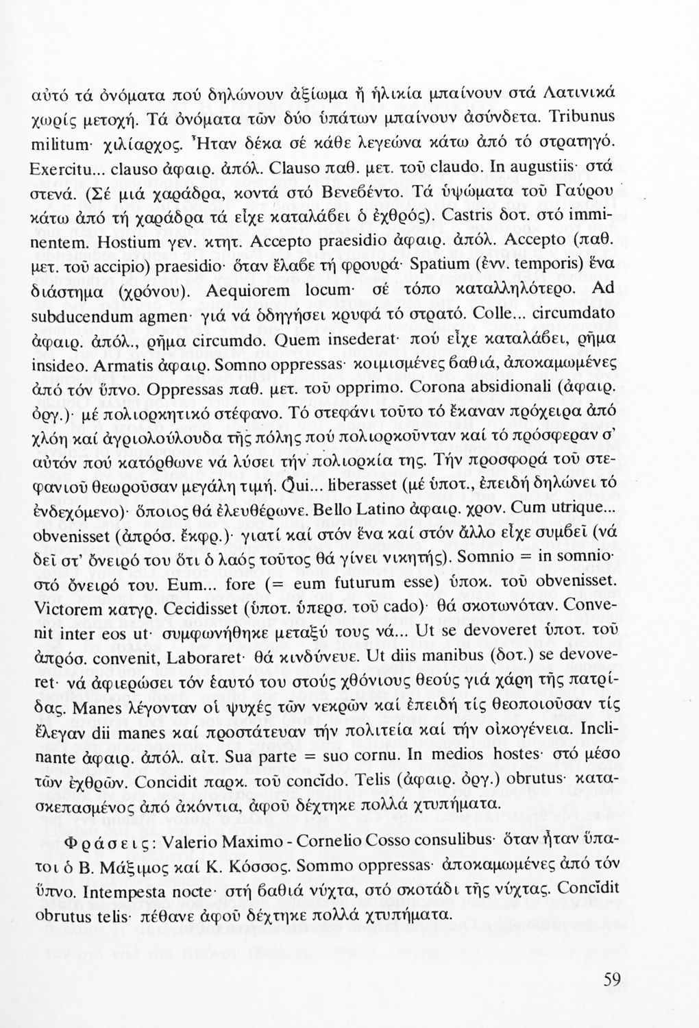 Αναγνωστικό Λατινικών για τη Γ΄ Γυμνασίου που περιέχει 54 κείμενα/περικοπές στα λατινικά, ερμηνευτικά υπομνήματα, λεξιλόγιο και κατάλογο με τα συντακτικά φαινόμενα (αφαιρετική, προθέσεις, σύνδεσμοι) που ...