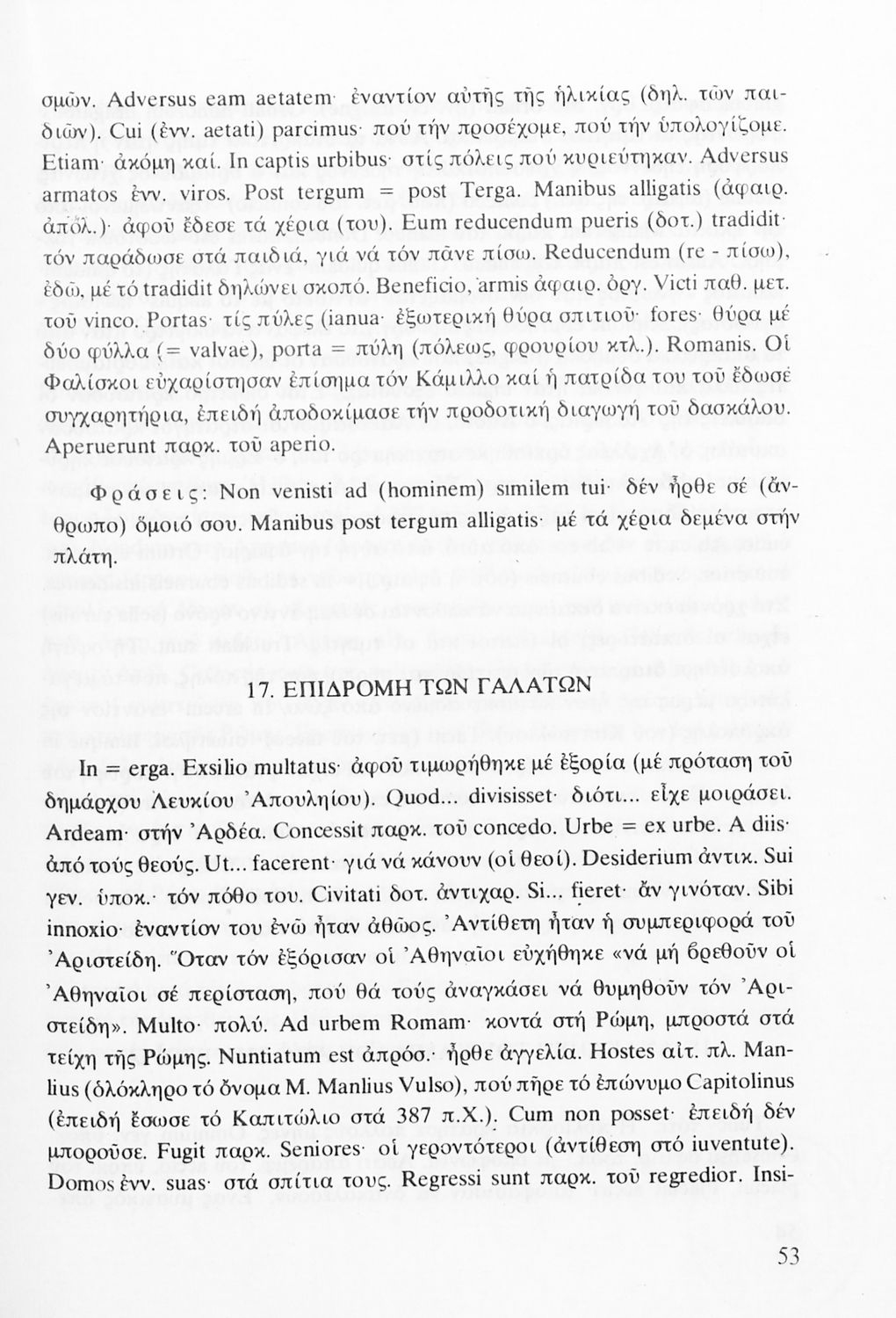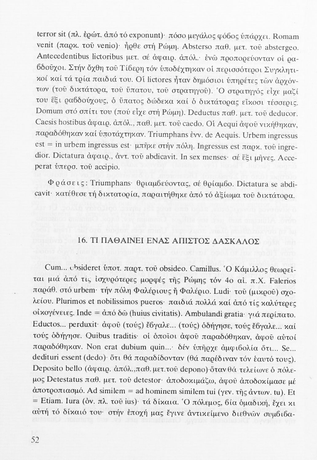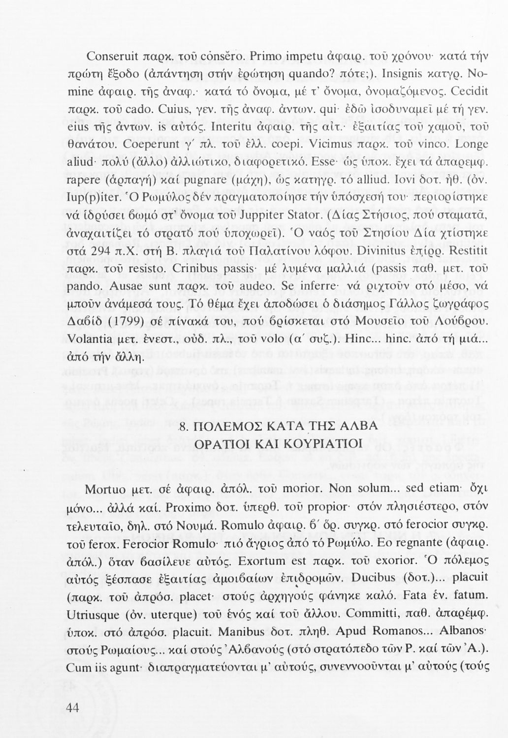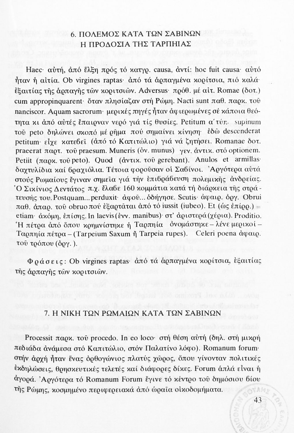 Αναγνωστικό Λατινικών για τη Γ΄ Γυμνασίου που περιέχει 54 κείμενα/περικοπές στα λατινικά, ερμηνευτικά υπομνήματα, λεξιλόγιο και κατάλογο με τα συντακτικά φαινόμενα (αφαιρετική, προθέσεις, σύνδεσμοι) που ...