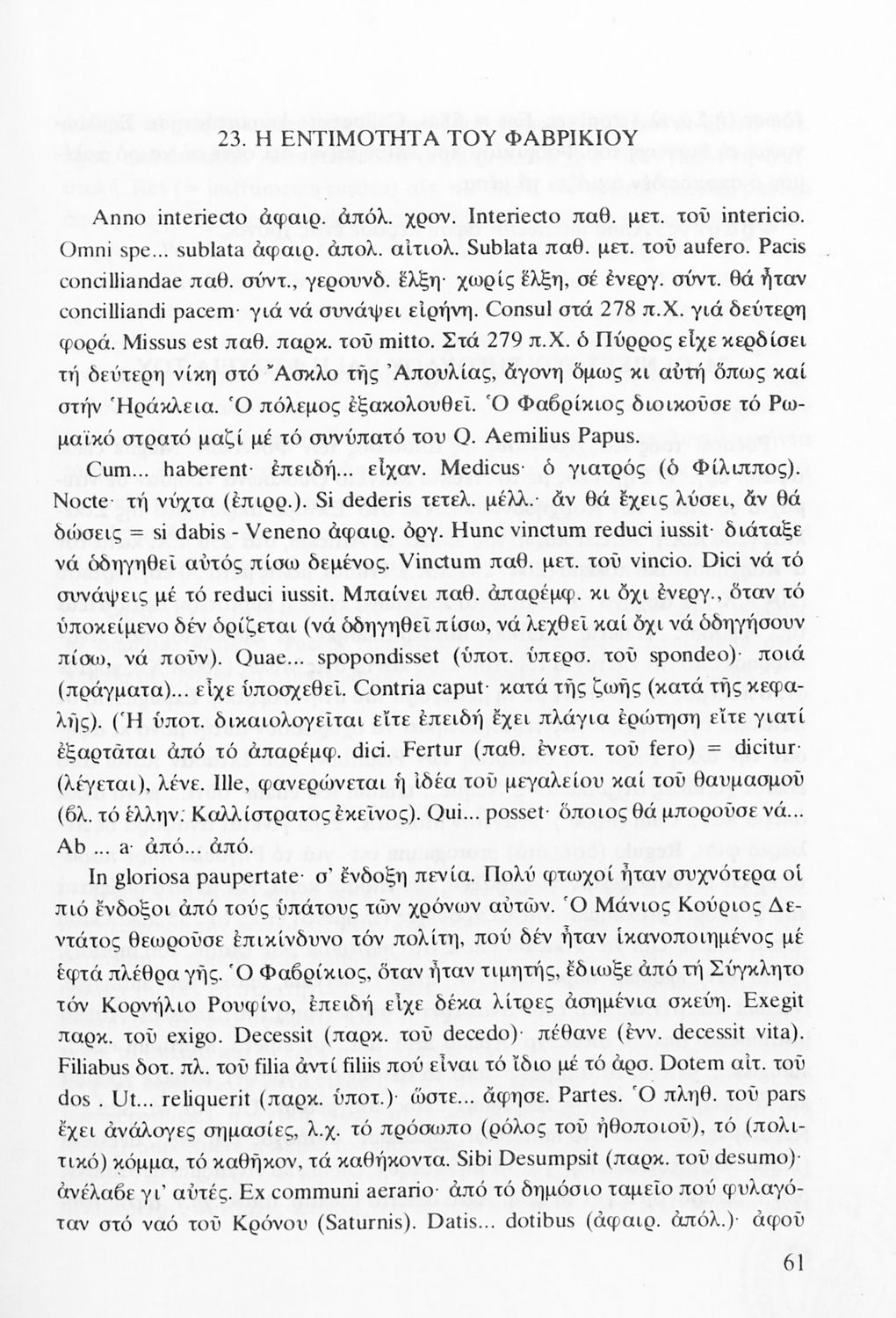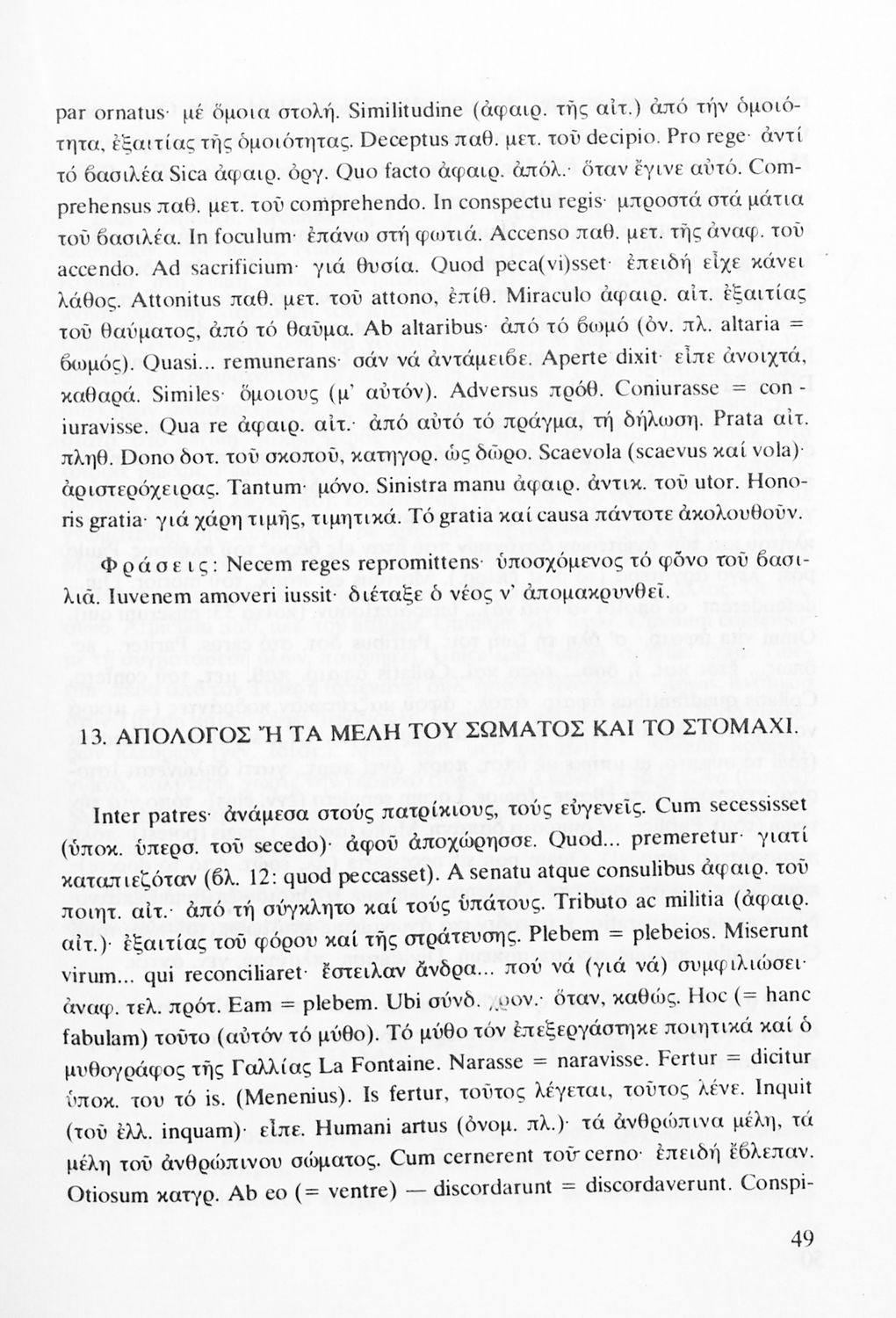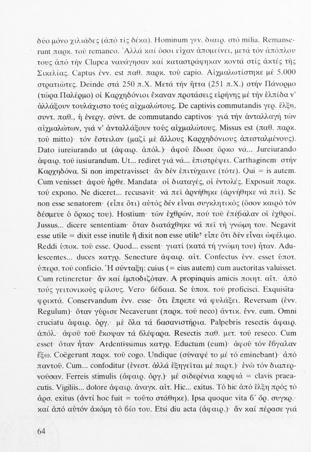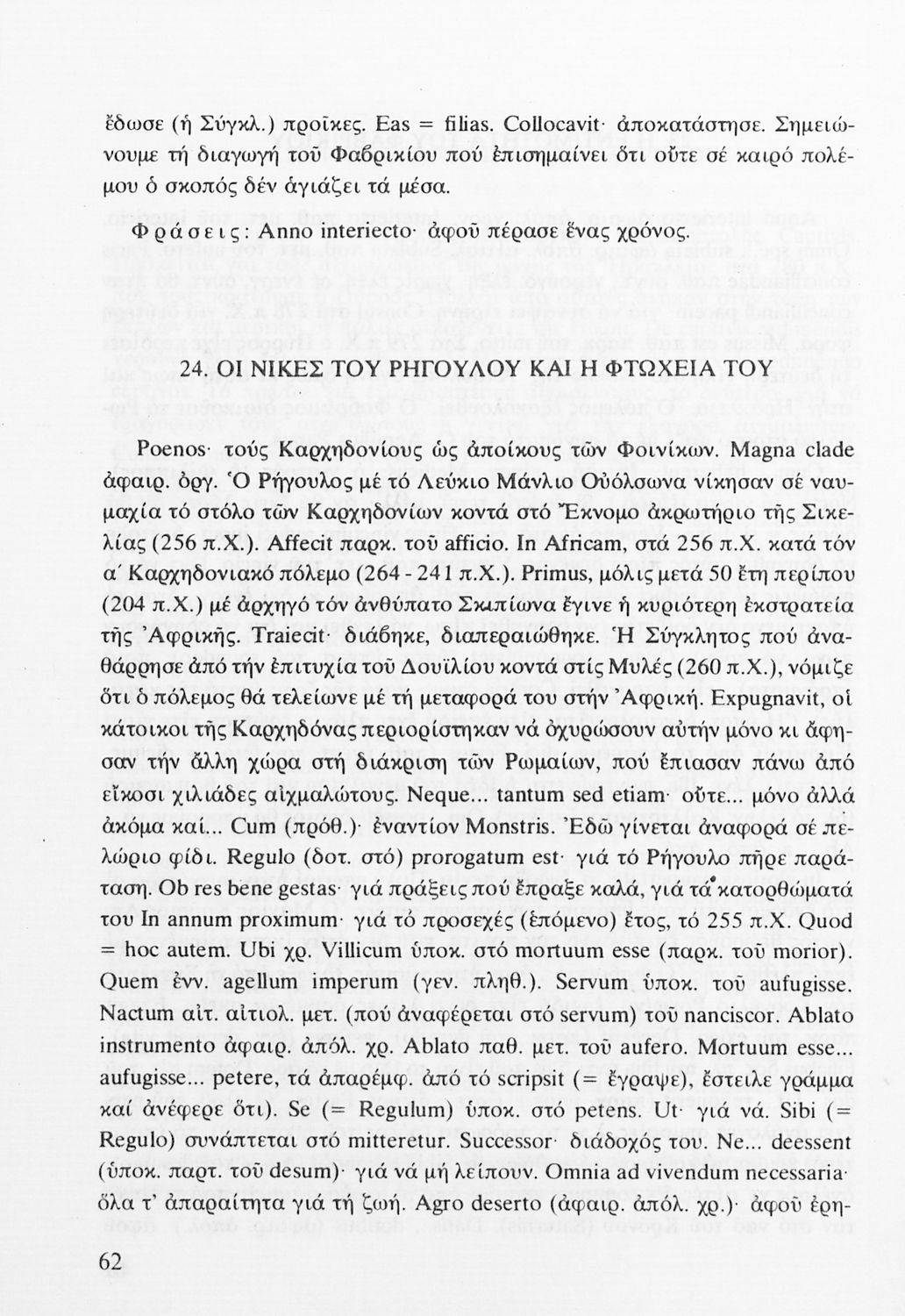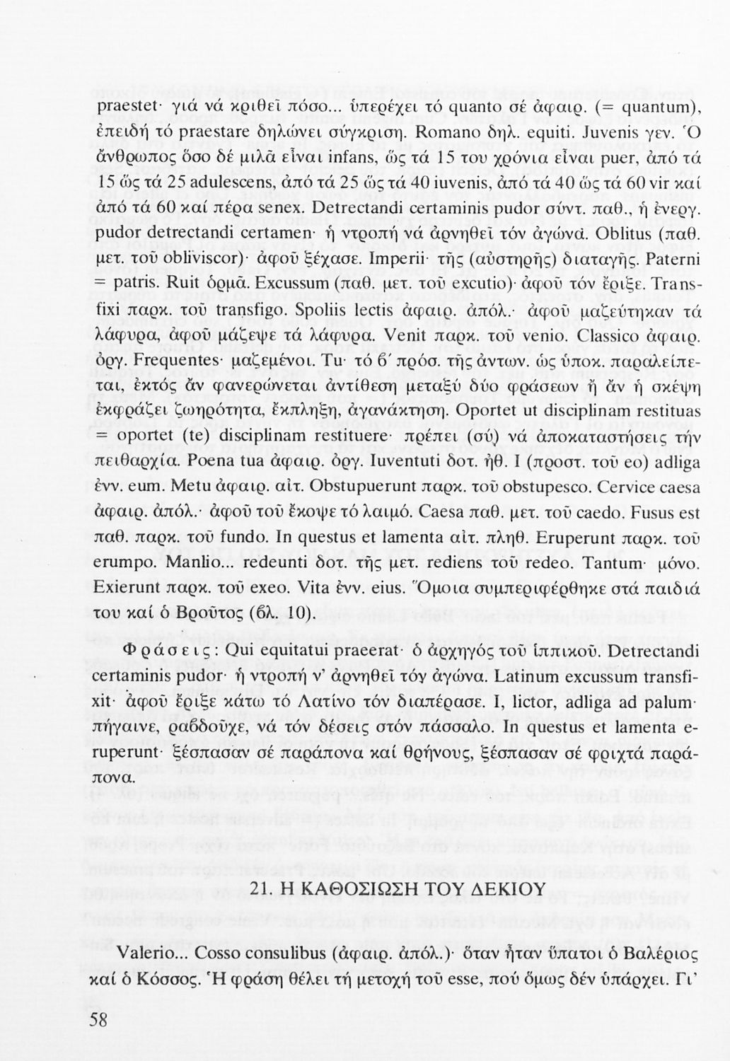 Αναγνωστικό Λατινικών για τη Γ΄ Γυμνασίου που περιέχει 54 κείμενα/περικοπές στα λατινικά, ερμηνευτικά υπομνήματα, λεξιλόγιο και κατάλογο με τα συντακτικά φαινόμενα (αφαιρετική, προθέσεις, σύνδεσμοι) που ...