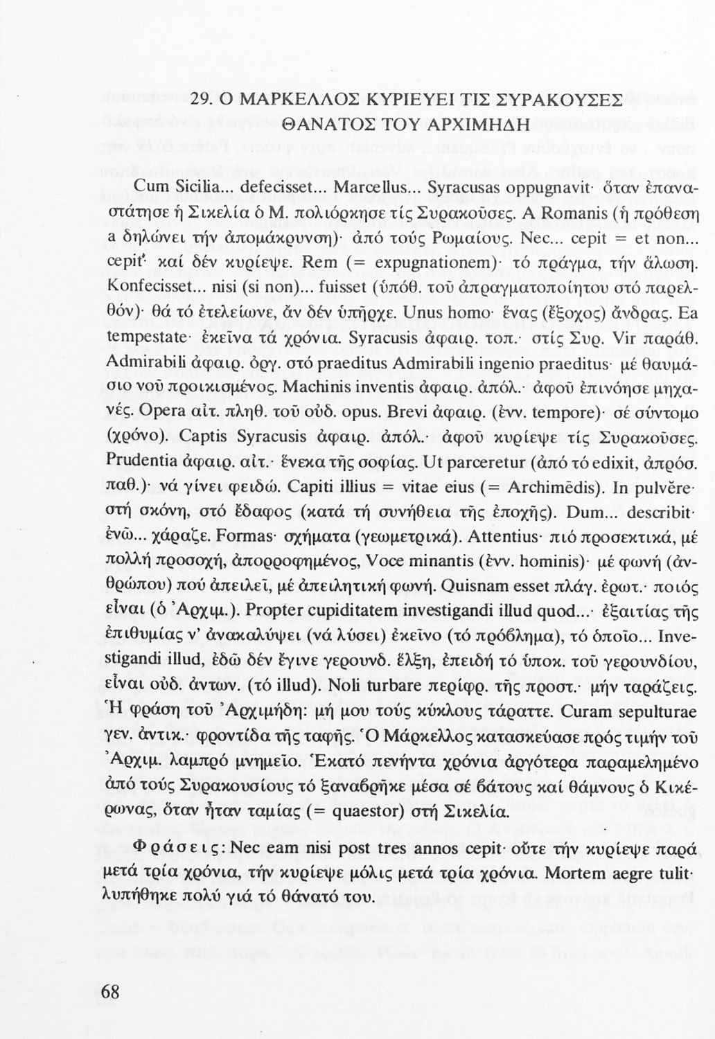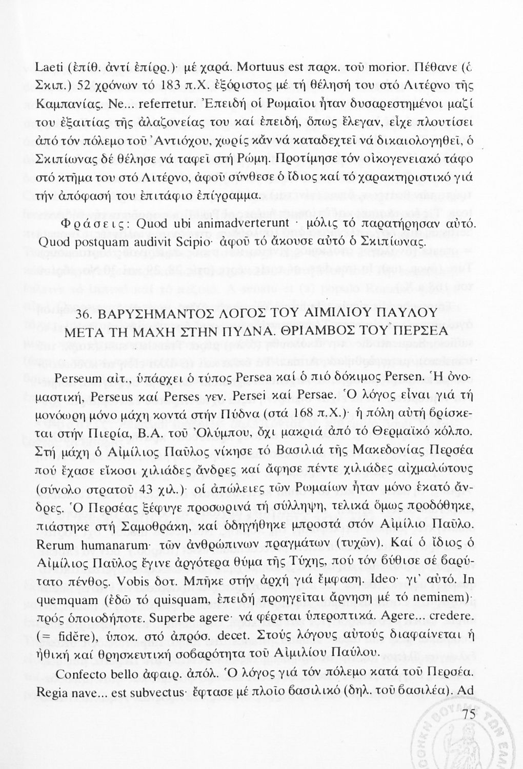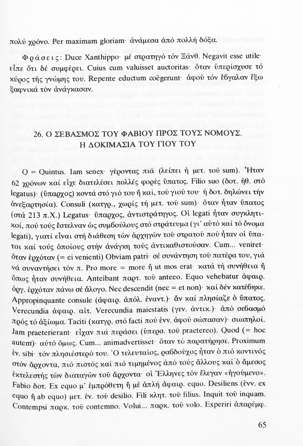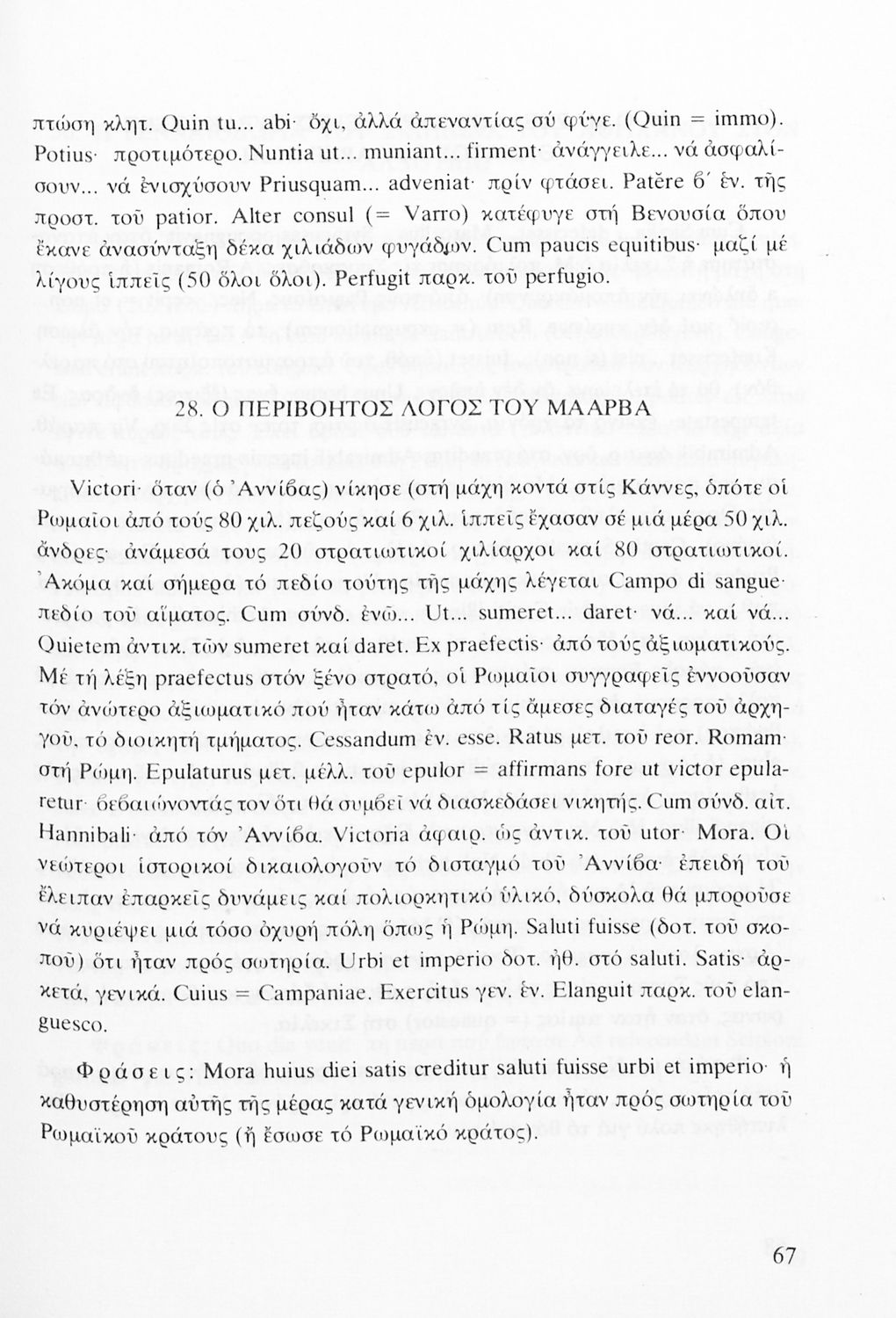 Αναγνωστικό Λατινικών για τη Γ΄ Γυμνασίου που περιέχει 54 κείμενα/περικοπές στα λατινικά, ερμηνευτικά υπομνήματα, λεξιλόγιο και κατάλογο με τα συντακτικά φαινόμενα (αφαιρετική, προθέσεις, σύνδεσμοι) που ...