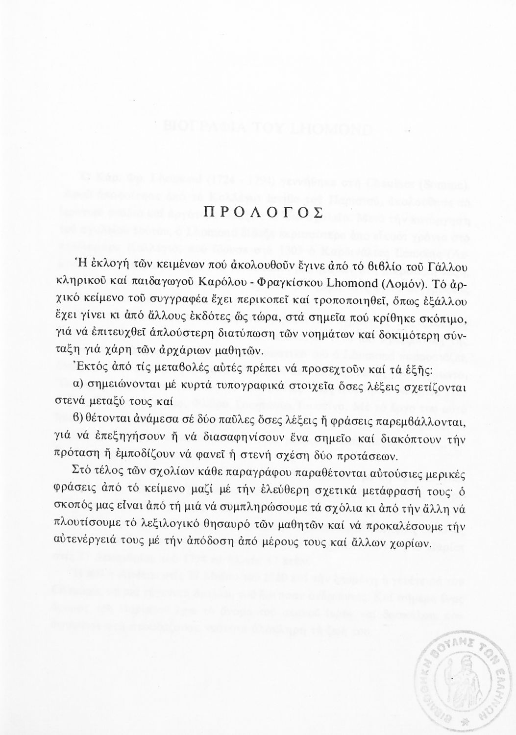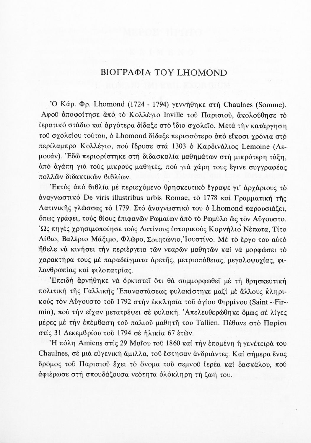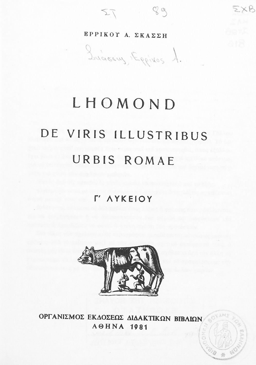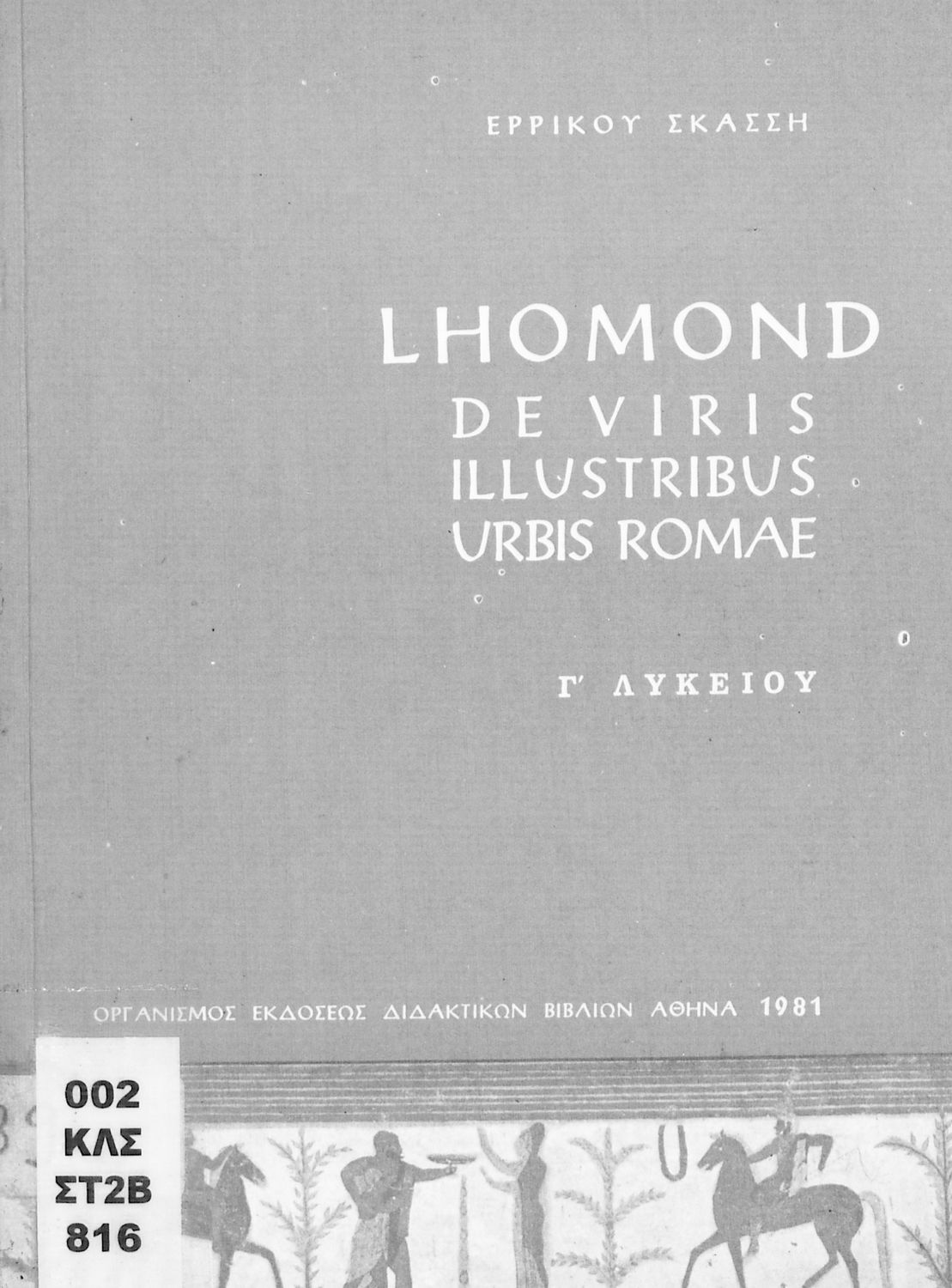 Σχολικό εγχειρίδιο Λατινικών Γ' Λυκείου που περιέχει το έργο του Lhomond De Viris Illustribus Urbis Romae και ερμηνευτικές και γλωσσικές σημειώσεις.