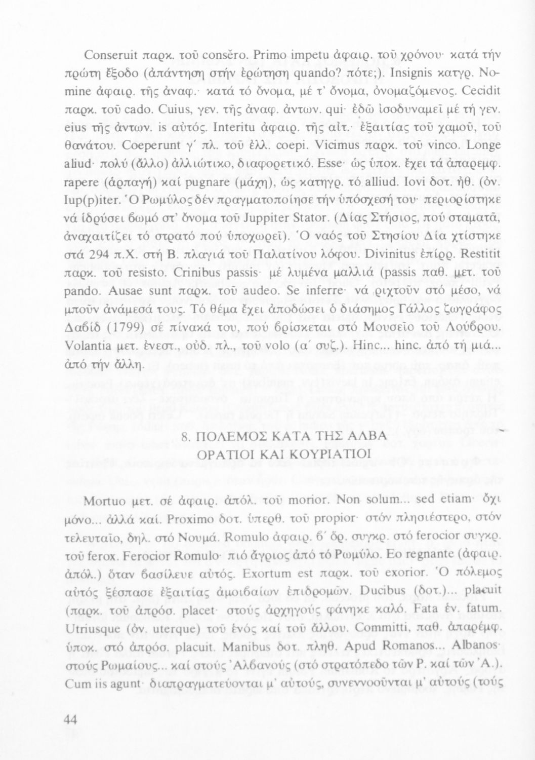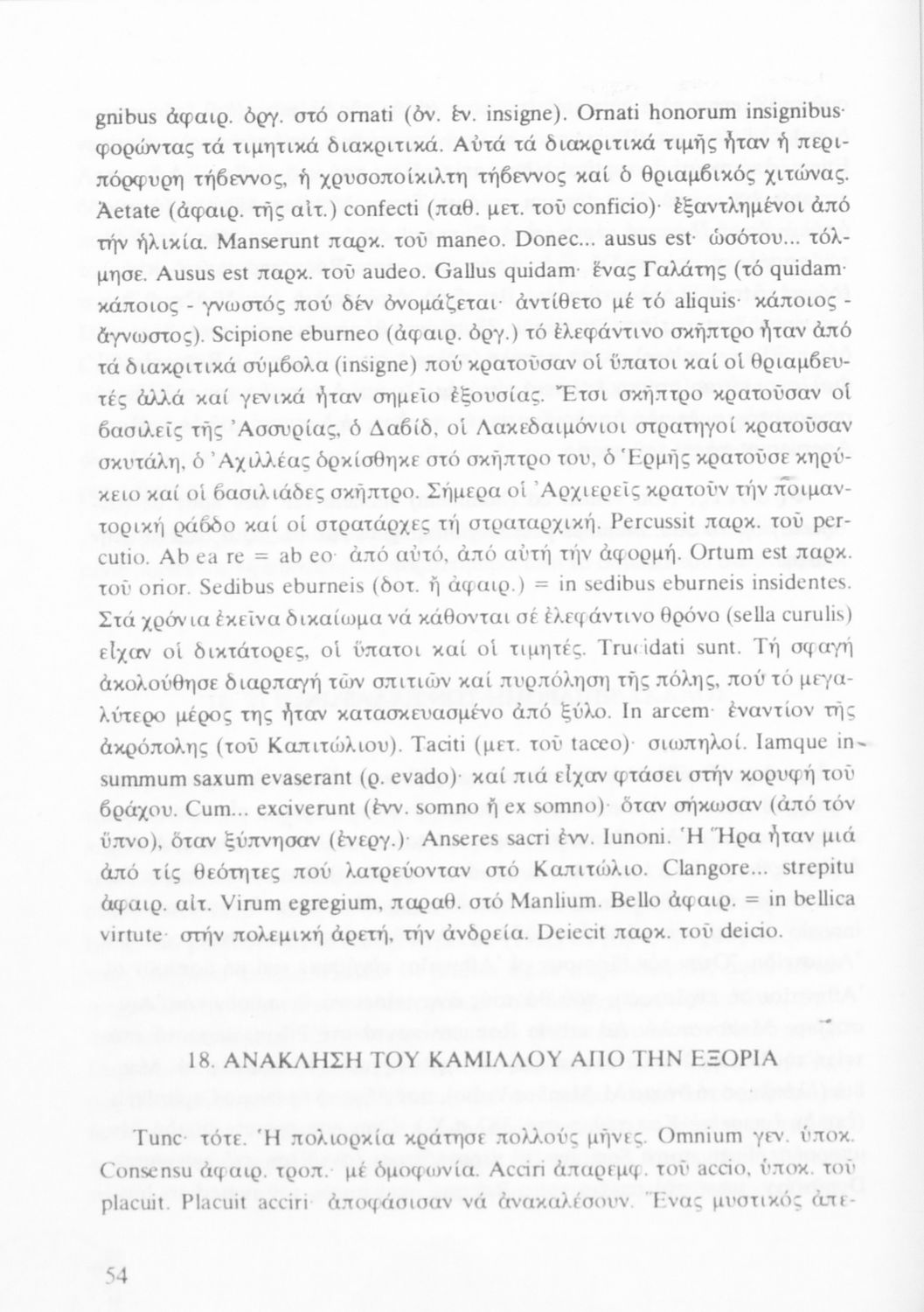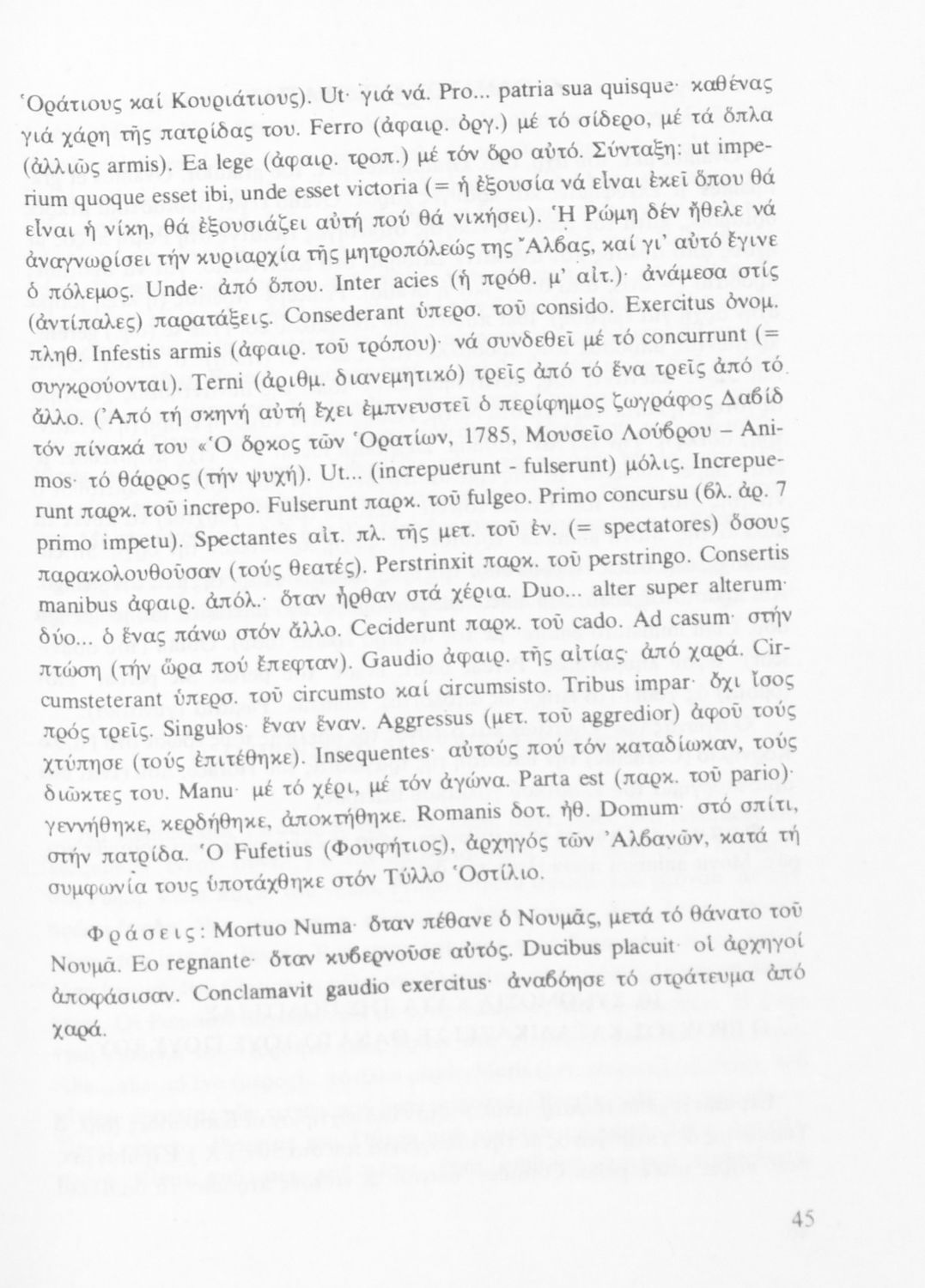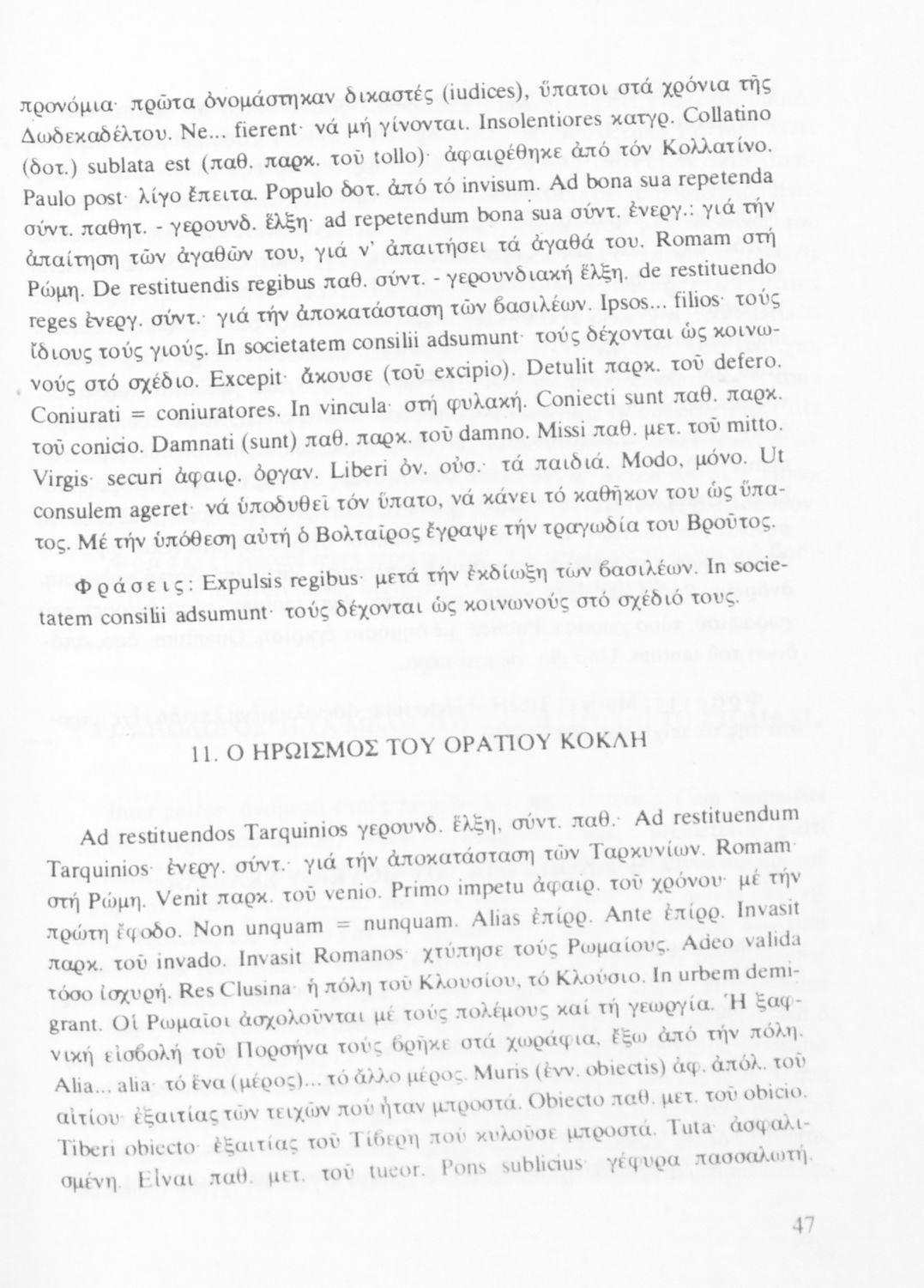 Αναγνωστικό Λατινικών για τη Γ΄ Γυμνασίου που περιέχει 54 κείμενα/περικοπές στα λατινικά, ερμηνευτικά υπομνήματα, λεξιλόγιο και κατάλογο με τα συντακτικά φαινόμενα (αφαιρετική, προθέσεις, σύνδεσμοι) που ...
