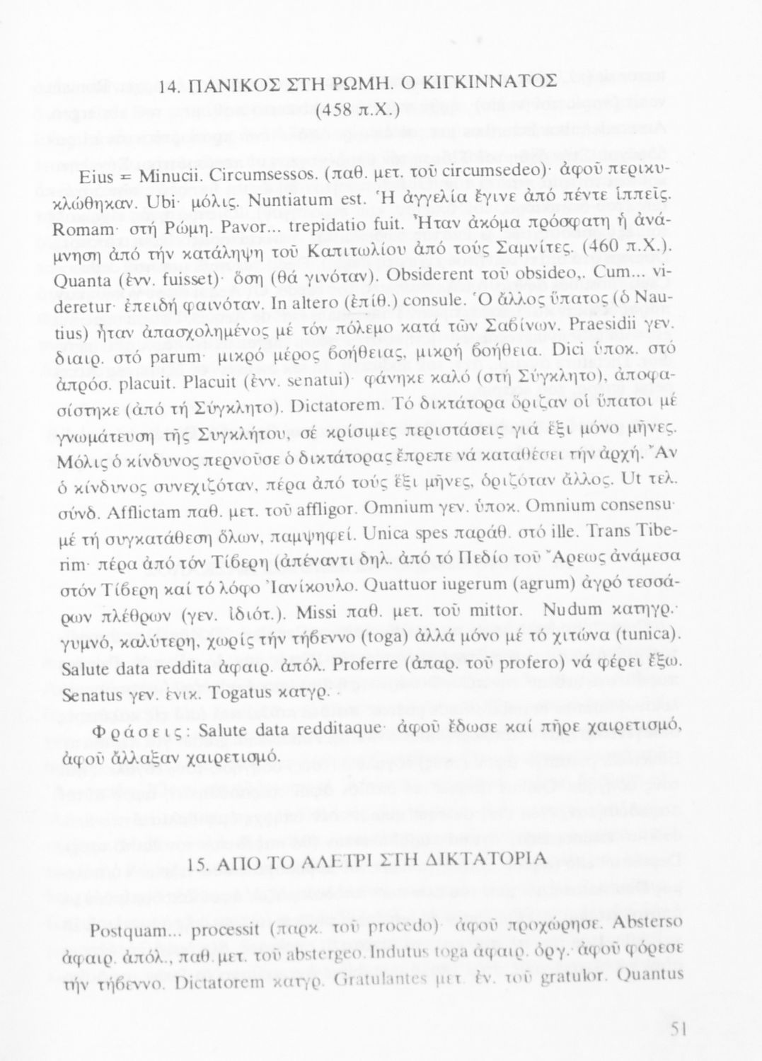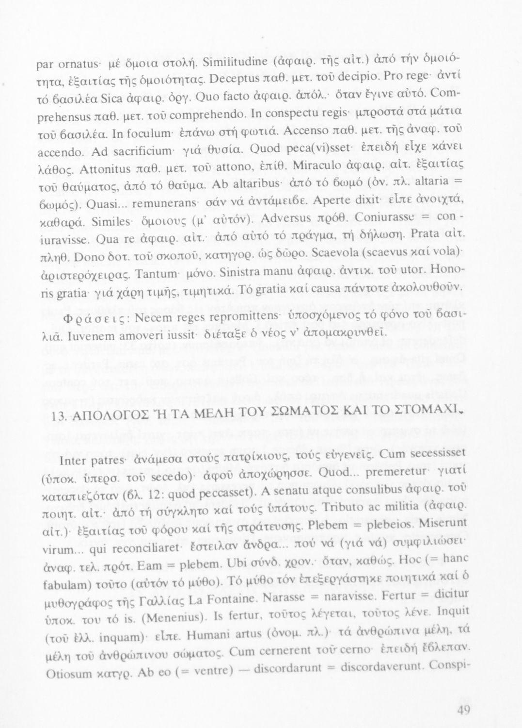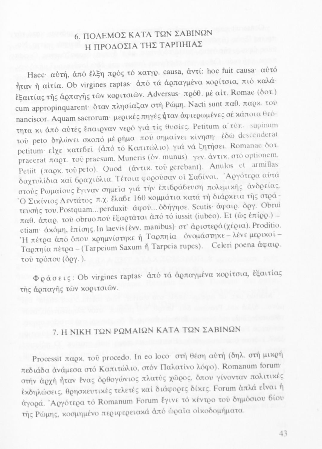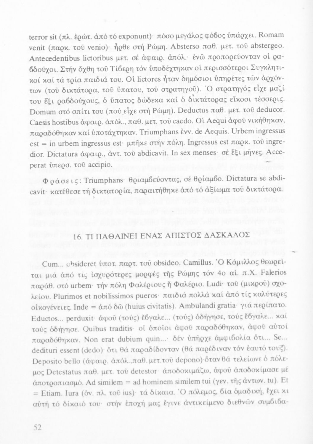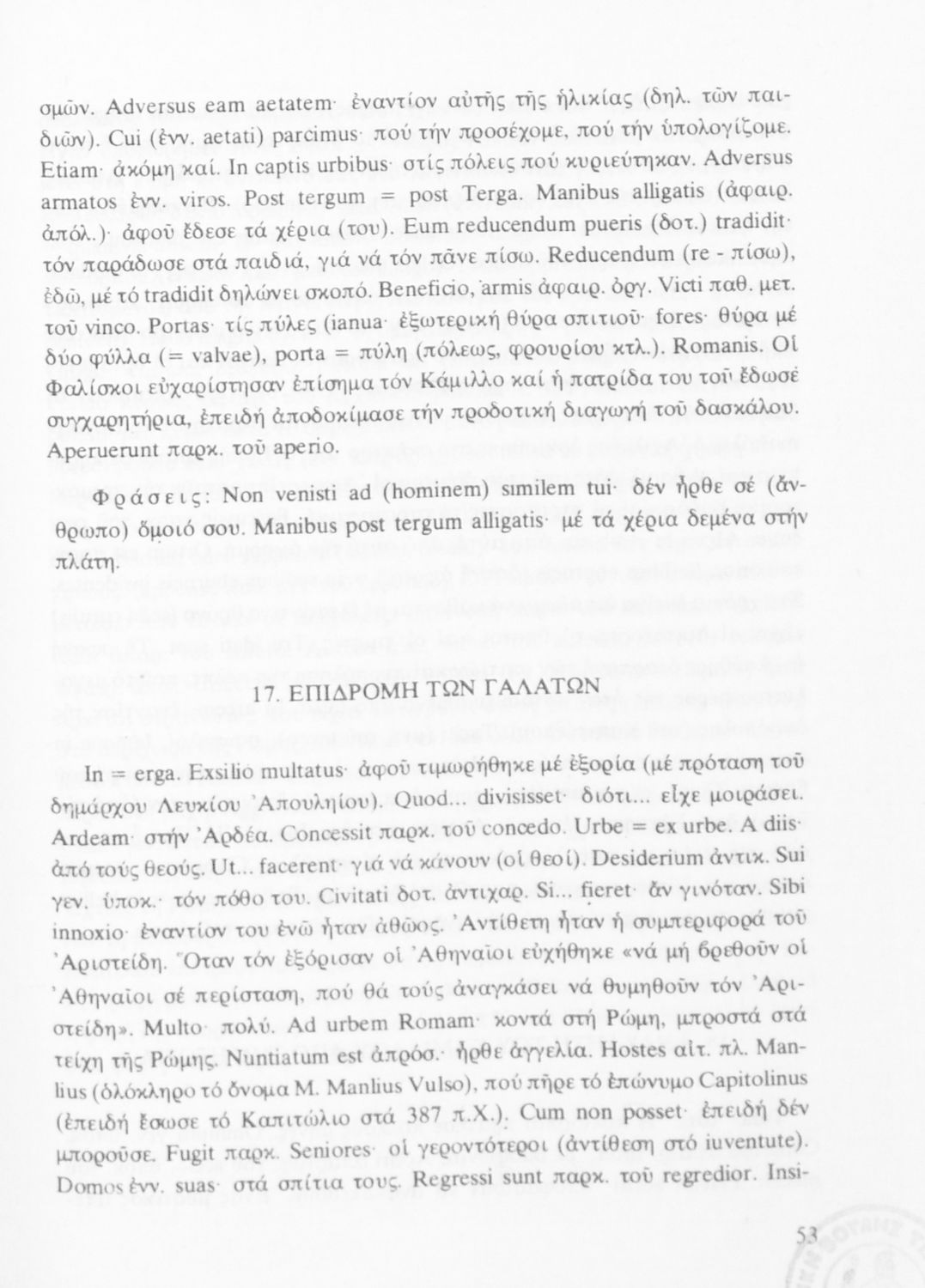 Αναγνωστικό Λατινικών για τη Γ΄ Γυμνασίου που περιέχει 54 κείμενα/περικοπές στα λατινικά, ερμηνευτικά υπομνήματα, λεξιλόγιο και κατάλογο με τα συντακτικά φαινόμενα (αφαιρετική, προθέσεις, σύνδεσμοι) που ...