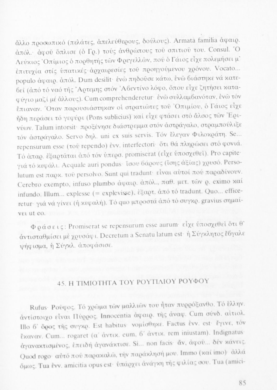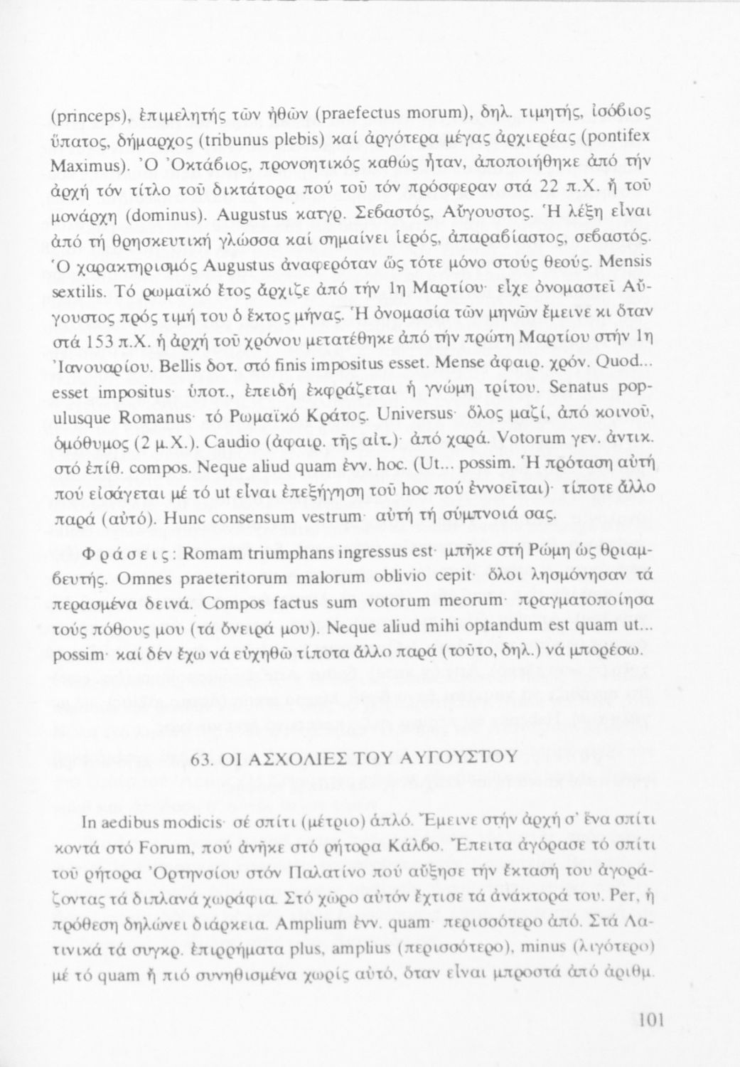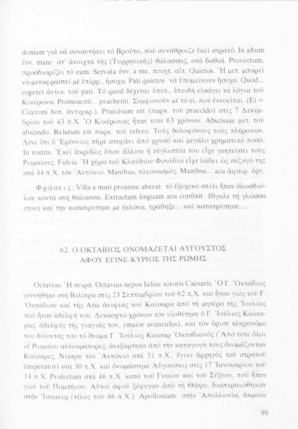 Αναγνωστικό Λατινικών για τη Γ΄ Γυμνασίου που περιέχει 54 κείμενα/περικοπές στα λατινικά, ερμηνευτικά υπομνήματα, λεξιλόγιο και κατάλογο με τα συντακτικά φαινόμενα (αφαιρετική, προθέσεις, σύνδεσμοι) που ...