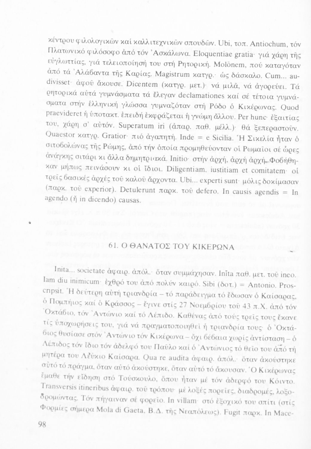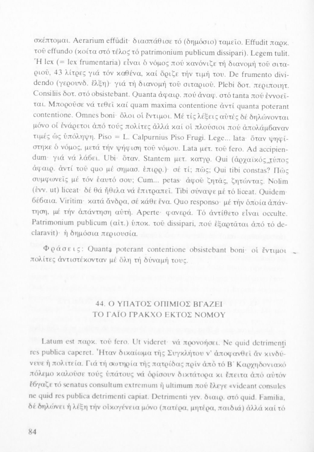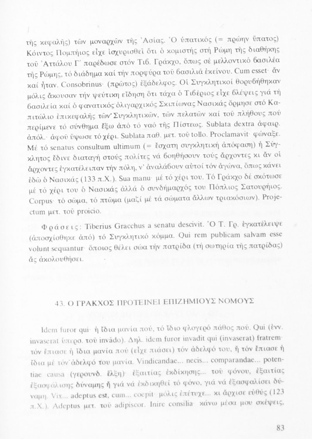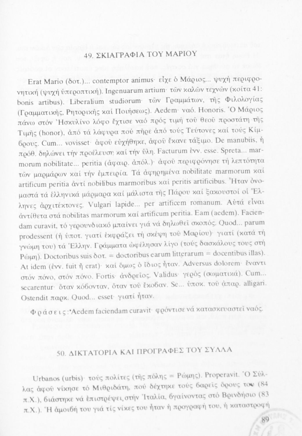 Αναγνωστικό Λατινικών για τη Γ΄ Γυμνασίου που περιέχει 54 κείμενα/περικοπές στα λατινικά, ερμηνευτικά υπομνήματα, λεξιλόγιο και κατάλογο με τα συντακτικά φαινόμενα (αφαιρετική, προθέσεις, σύνδεσμοι) που ...