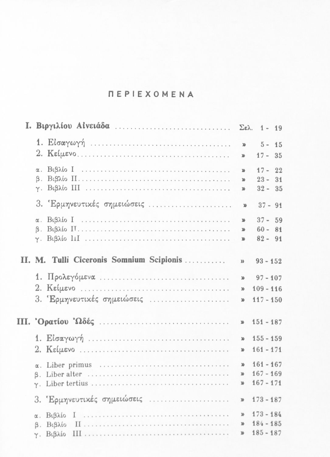 Συγγραφέας: Πόπλιος Βιργίλιος Μάρων (P. Vergilius Maro), Μάρκος Τύλλιος Κικέρωνας (Marcus Tullius Ciceco), Κουίντος Οράτιος Φλάκκος (Q. Horati Flacci), Φωκίωνας Β. Βουσβούνης, Ερρίκος Σκάσσης, Ζαφείριος Ν. Φραγκίσκος (εισαγωγή/σχόλια)