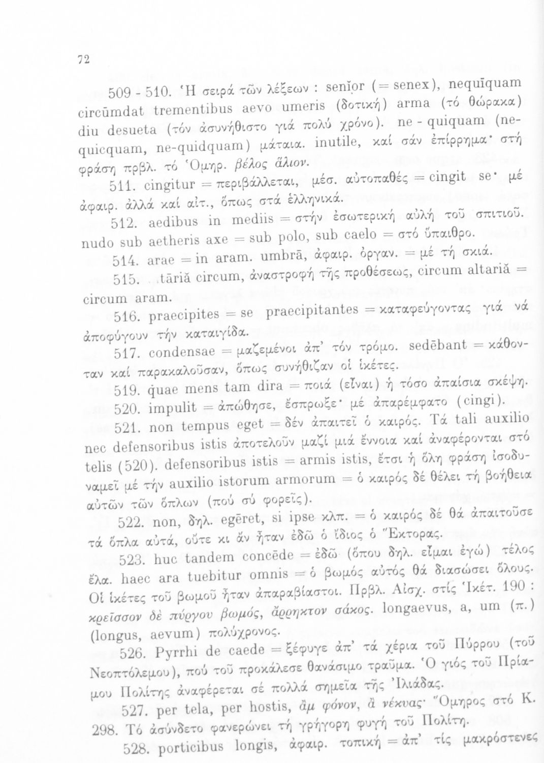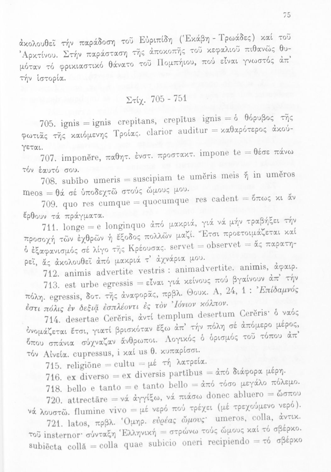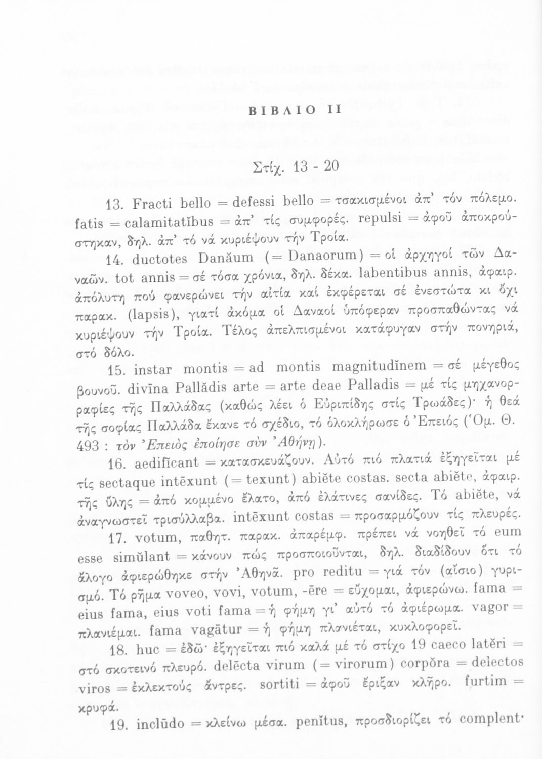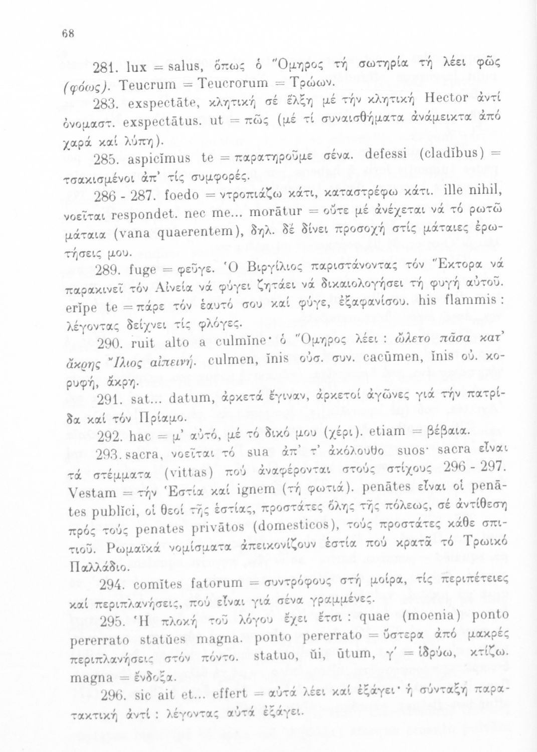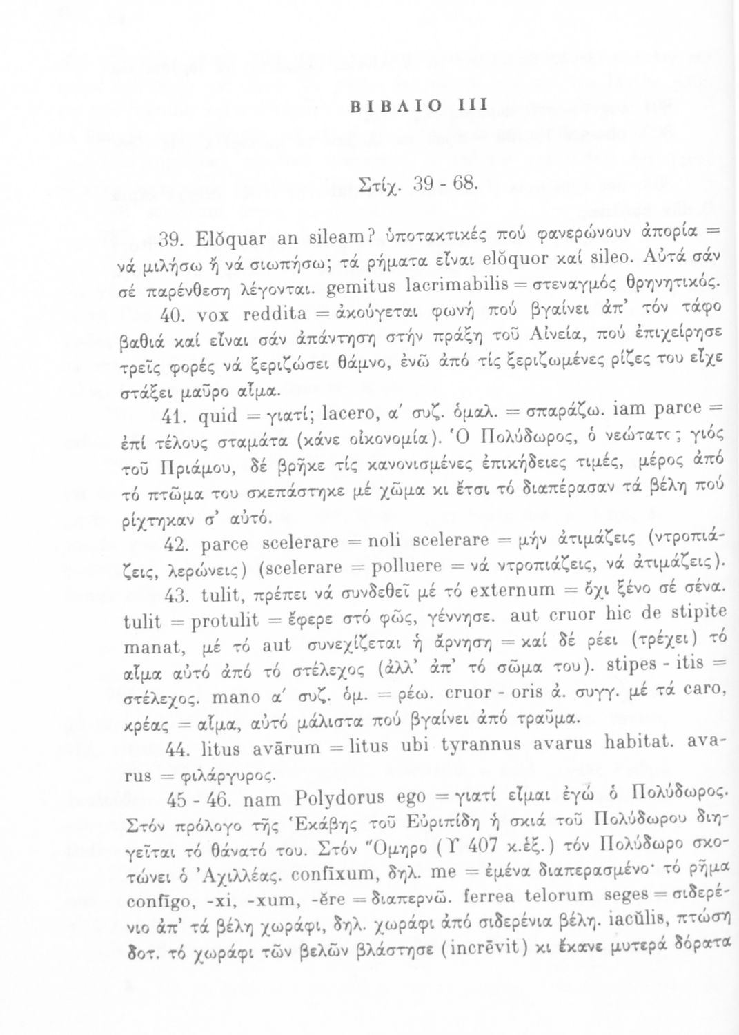 Σχολικό εγχειρίδιο Λατινικών Γ΄ Λυκείου που περιέχει αποσπάσματα από την Αινειάδα του Βιργίλιου, τον Ενύπνιο Σκιπίωνα του Κικέρωνα και τις Ωδές του Οράτιου, βιογραφικά σημειώματα των συγγραφέων, εισαγωγικά σχόλια, και ερμηνευτικές παρατηρήσεις.