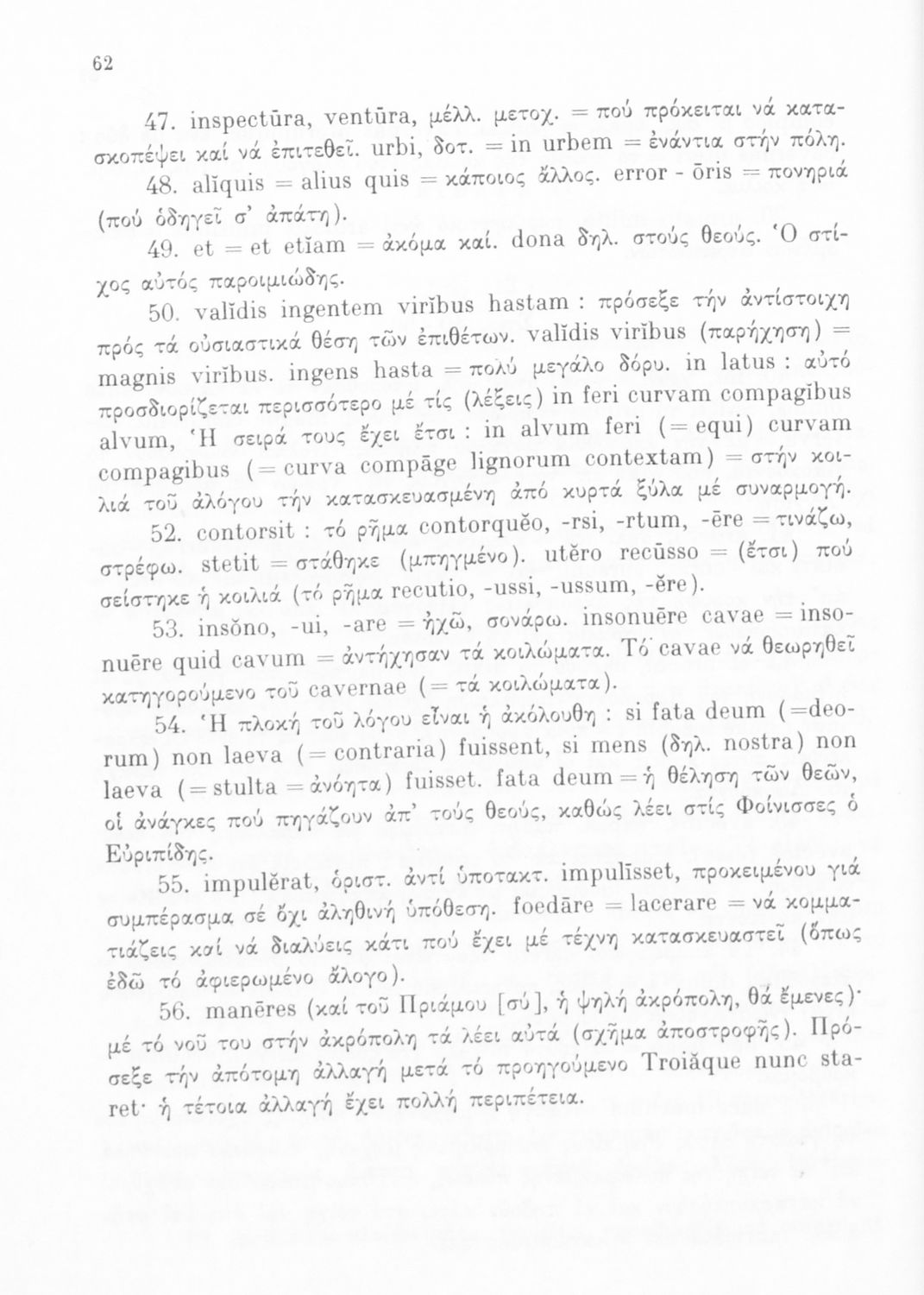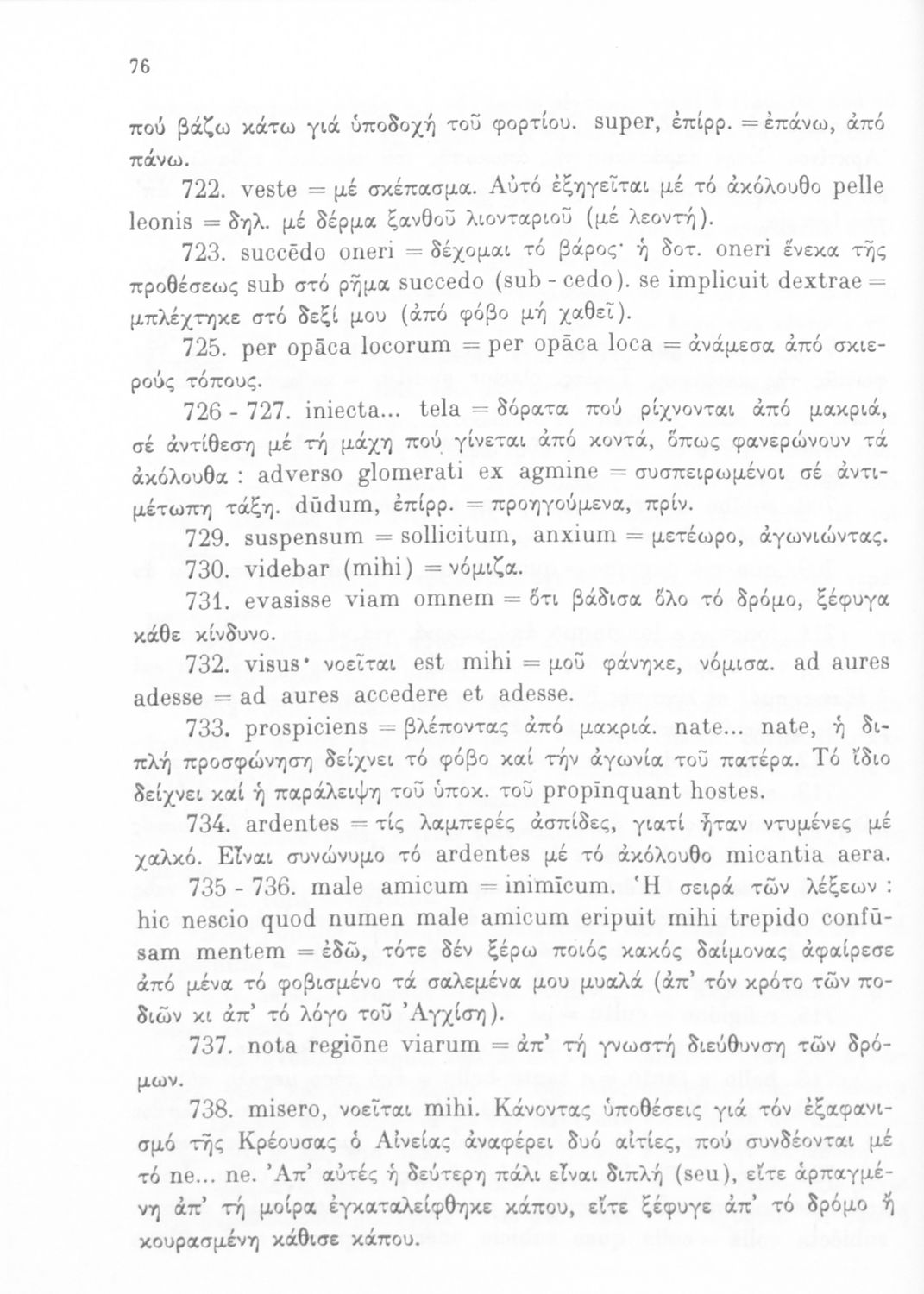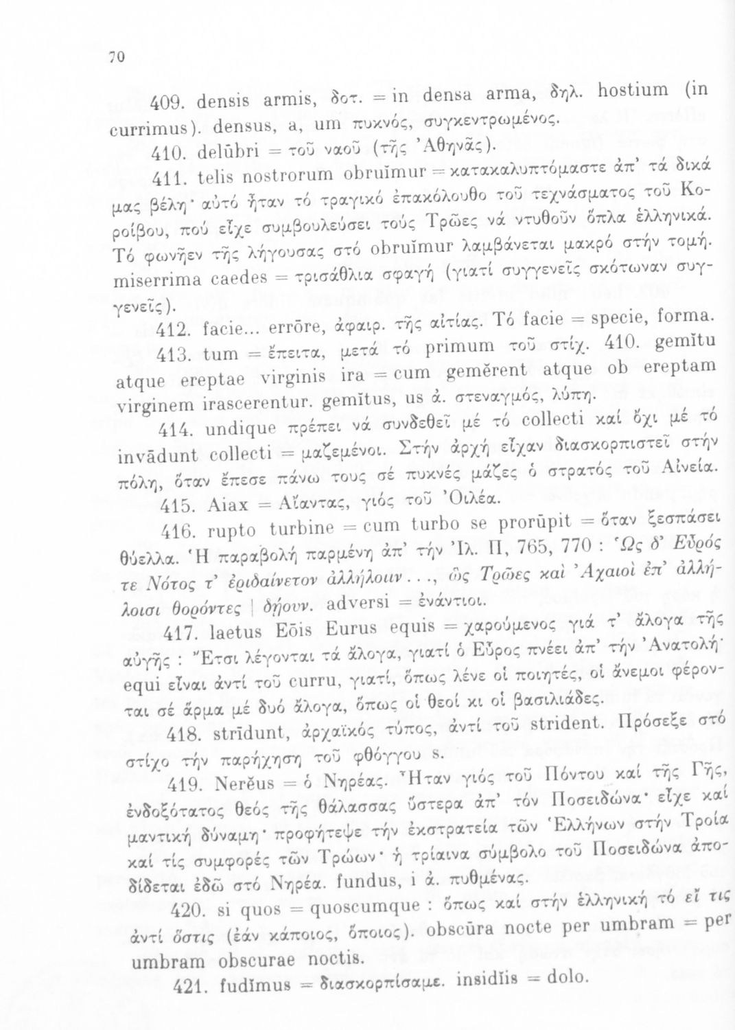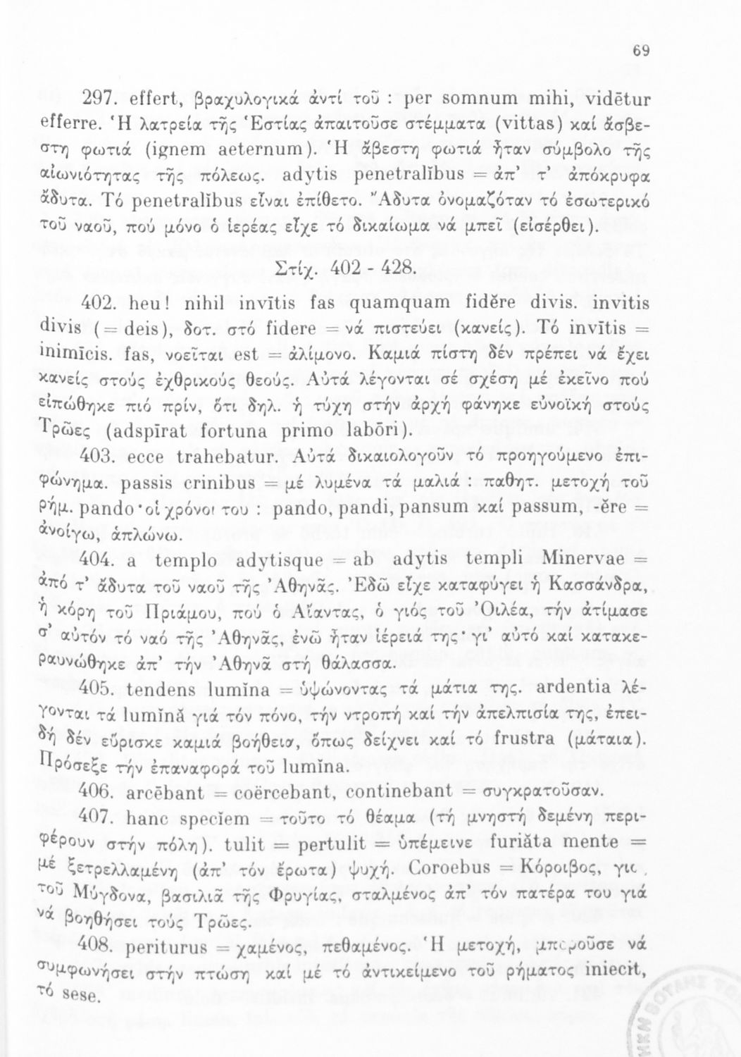 Σχολικό εγχειρίδιο Λατινικών Γ΄ Λυκείου που περιέχει αποσπάσματα από την Αινειάδα του Βιργίλιου, τον Ενύπνιο Σκιπίωνα του Κικέρωνα και τις Ωδές του Οράτιου, βιογραφικά σημειώματα των συγγραφέων, εισαγωγικά σχόλια, και ερμηνευτικές παρατηρήσεις.